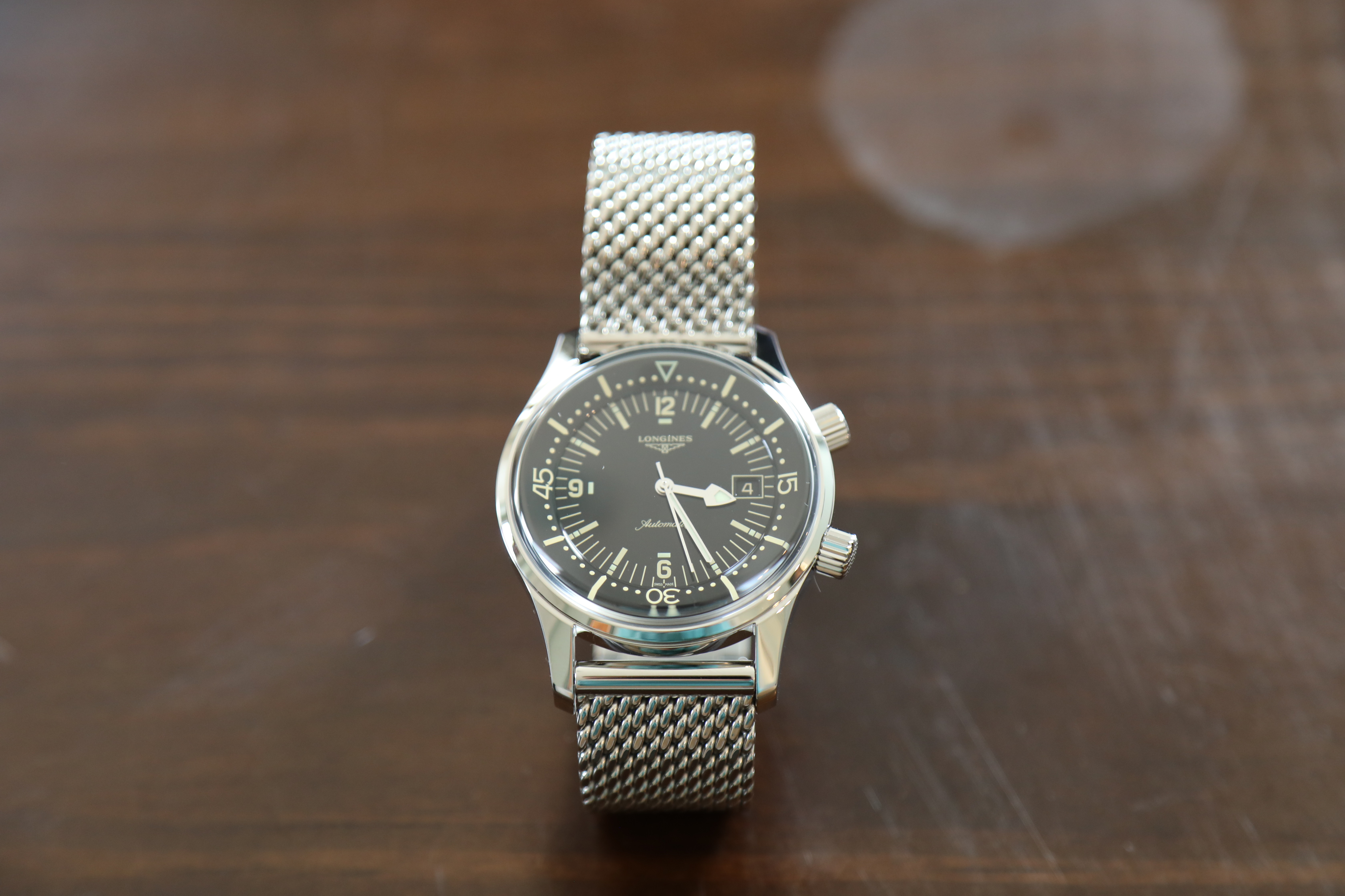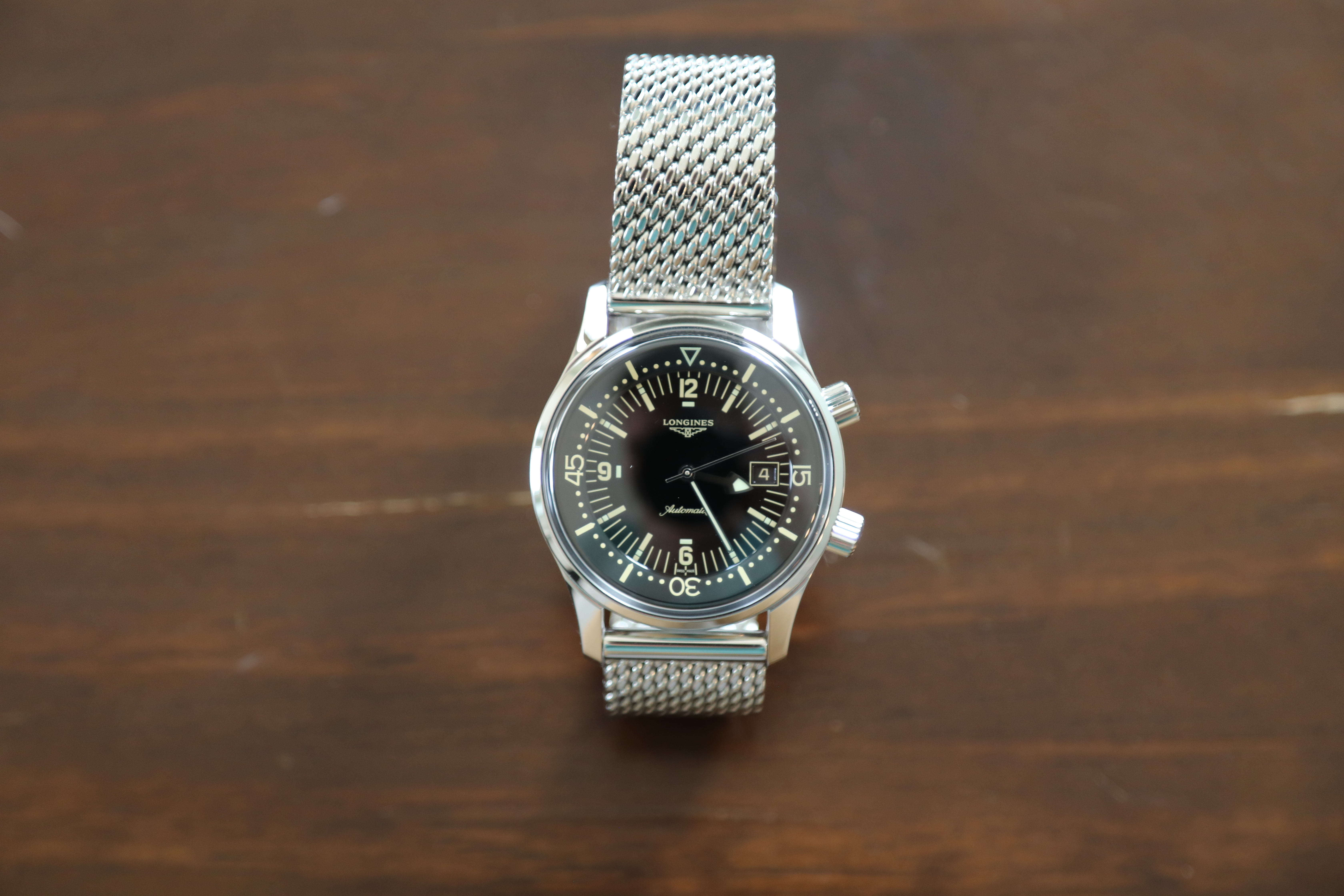 ·For sale is a mint-condition (borderline LNIB) Longines Legend Diver paired with an awesome Longines-branded mesh bracelet. It was purchased new from an AD on 8/29/2020. The inner and outer boxes are included, along with the stamped Longines AD card with the date of purchase and model number. This watch is under manufacturer warranty until 8/29/2022.