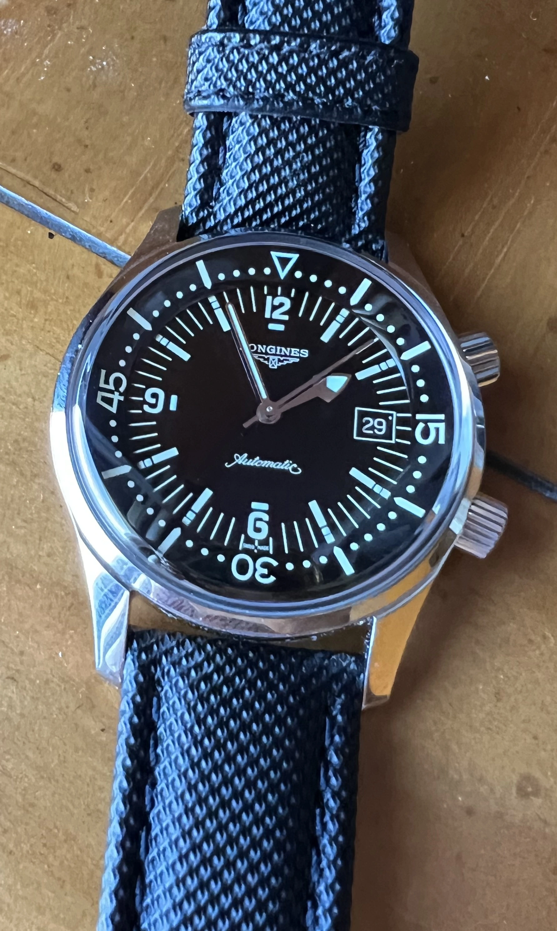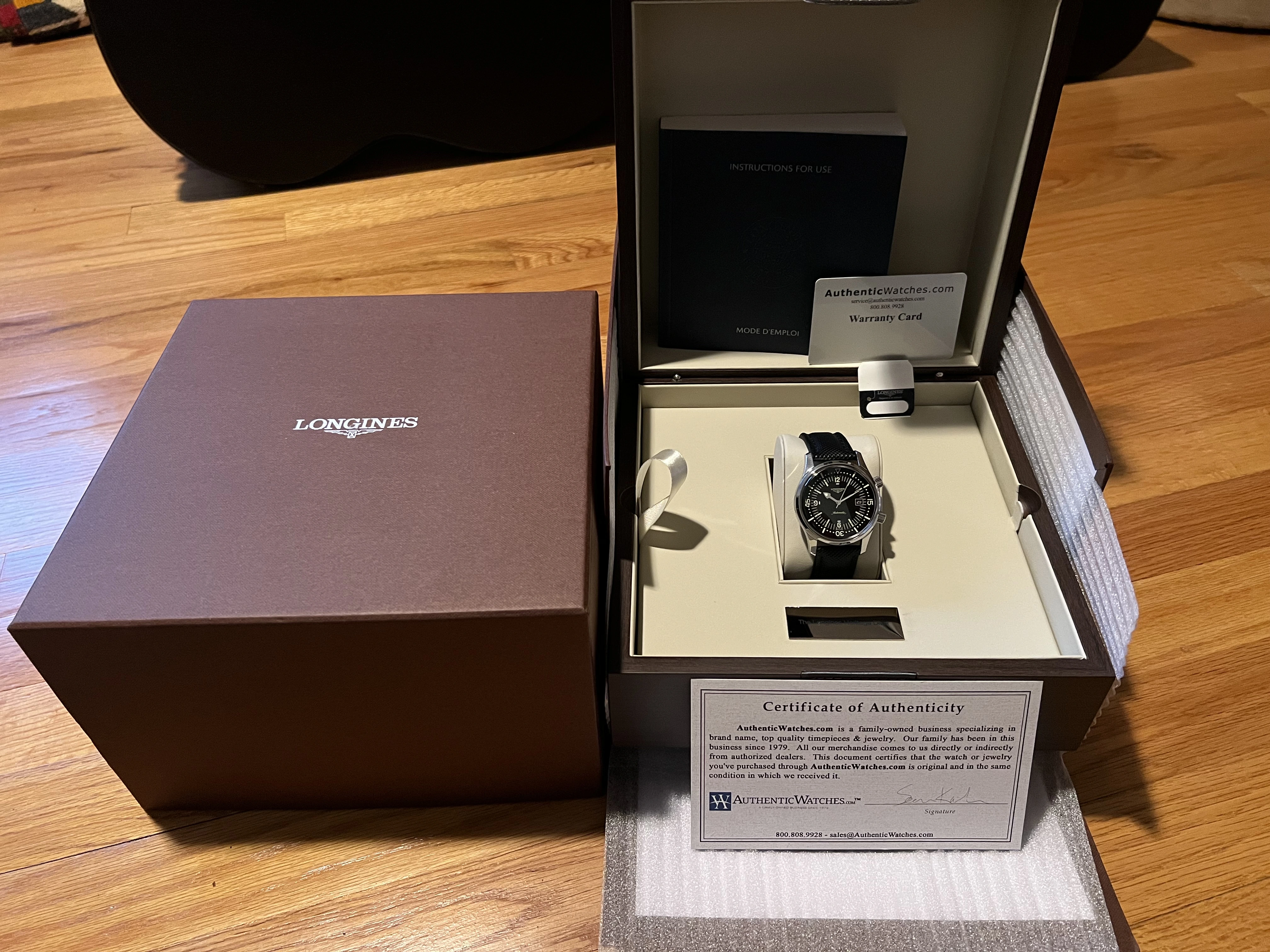 ·Up for sale is this modern classic. This reference L3.674.4 features a 42mm stainless steel case with very minimal wear, screw down crown, and internal rotating bezel adjusted by the 2 o’clock crown. Water resistance is 300m. The automatic ETA based L633 movement is running flawlessly. The OEM sail cloth strap has plenty of life left. Comes with outer/inner boxes, manual, hang tag, Certificate of Authenticity and Warranty Card from authenticwatches.com- all in excellent shape. I’m happy to provide more photos if needed. Offered at $1200 with free shipping in CONUS. International buyers to discuss shipping.