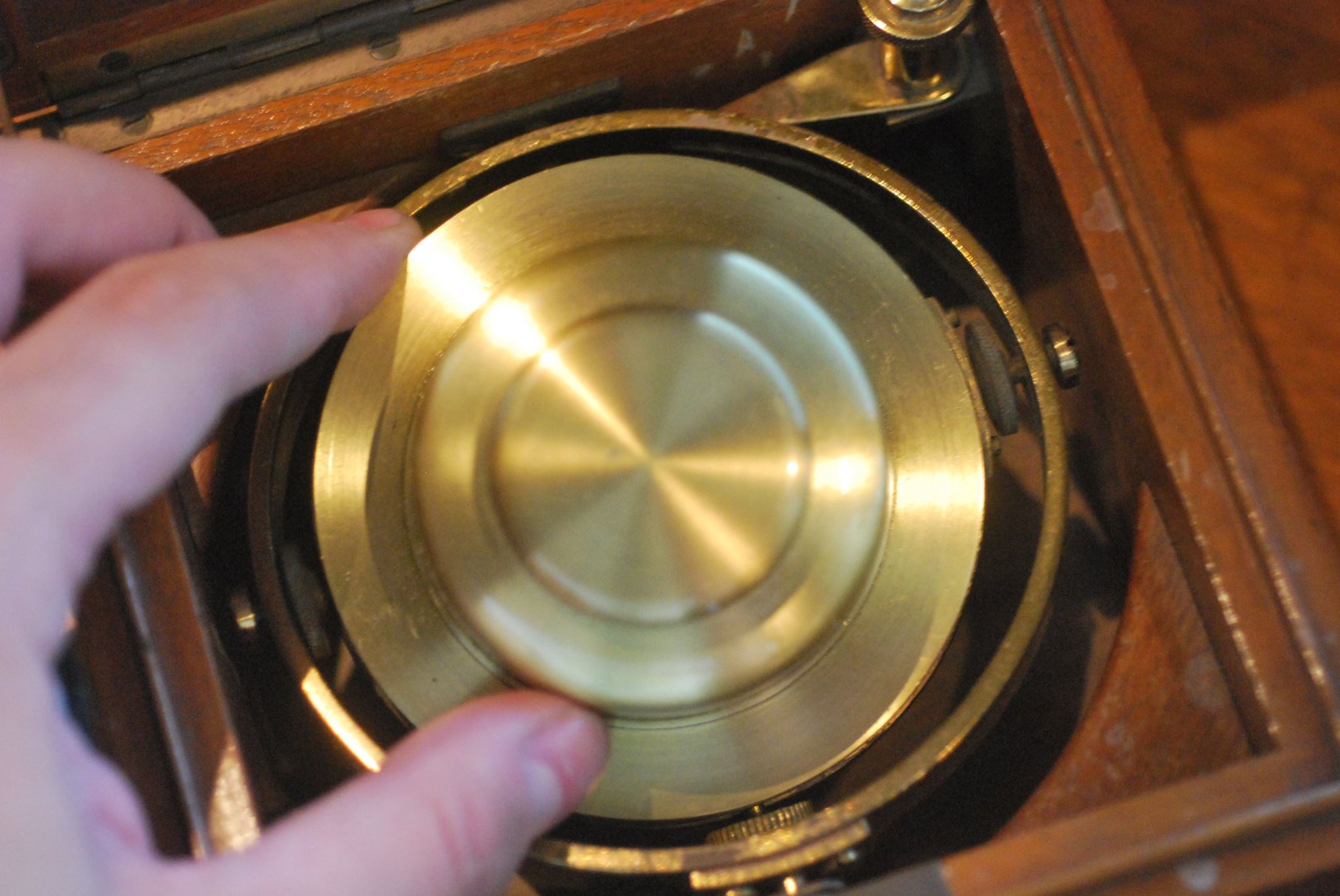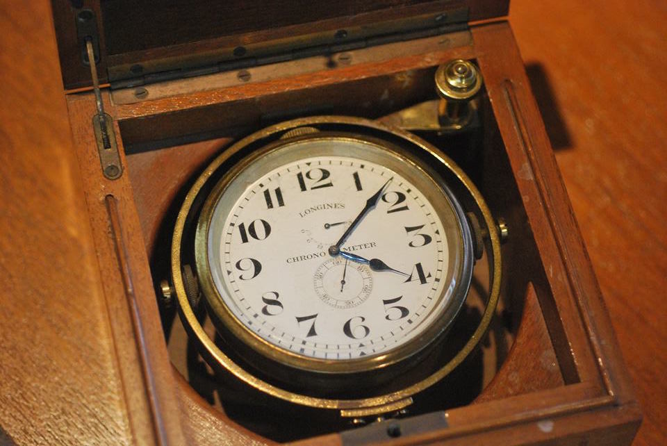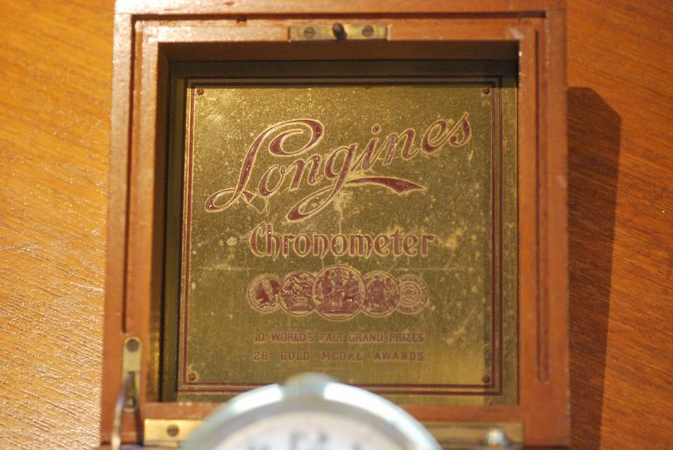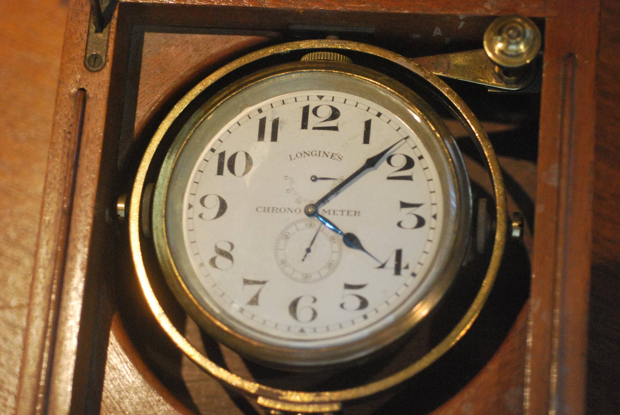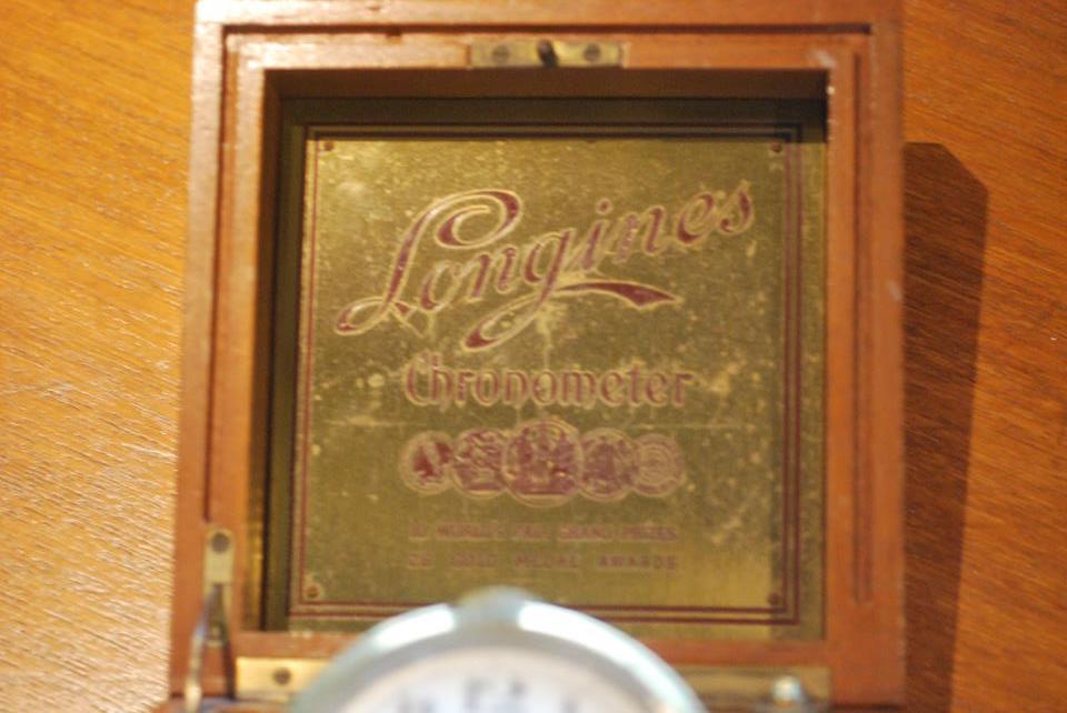 Longines marine chronometer with cardanic suspension. It shows some wear on the case and the longines plate, but it s working perfectly well. Beautiful marine chrono by Longines