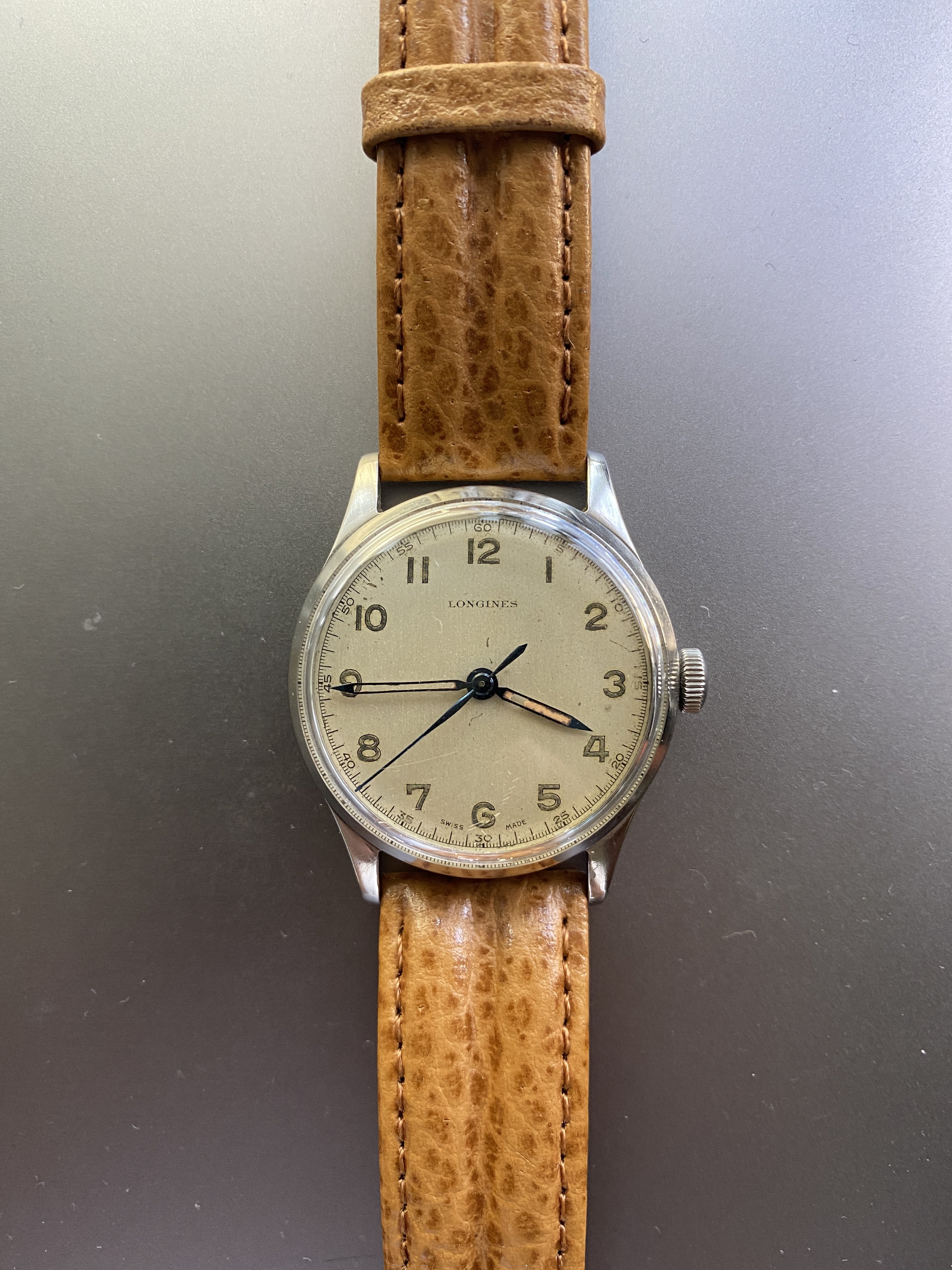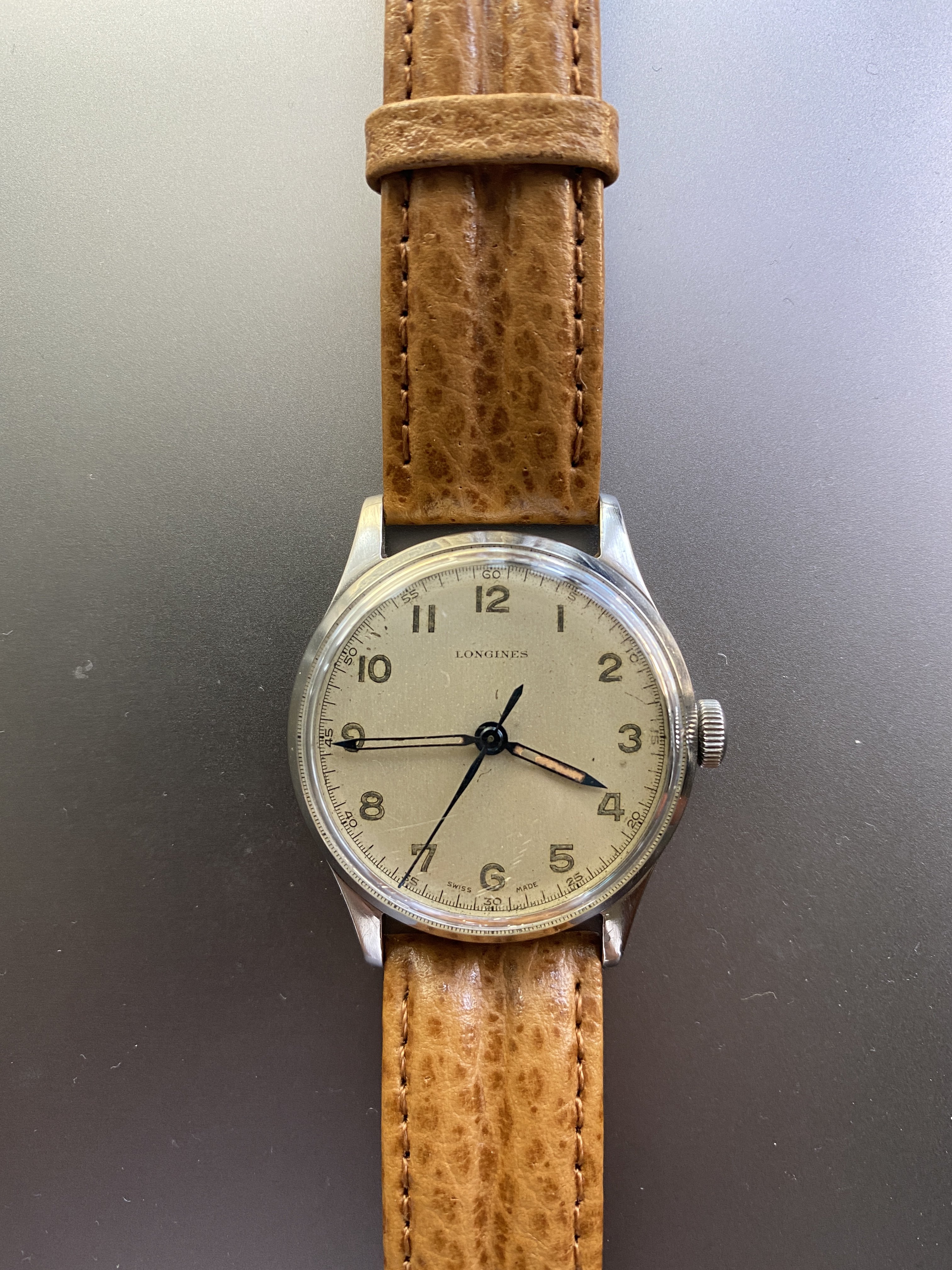 ·This is a Longines military style watch. As far as I recall, I have had this for around 20 years. I believe the previous owner had it serviced.