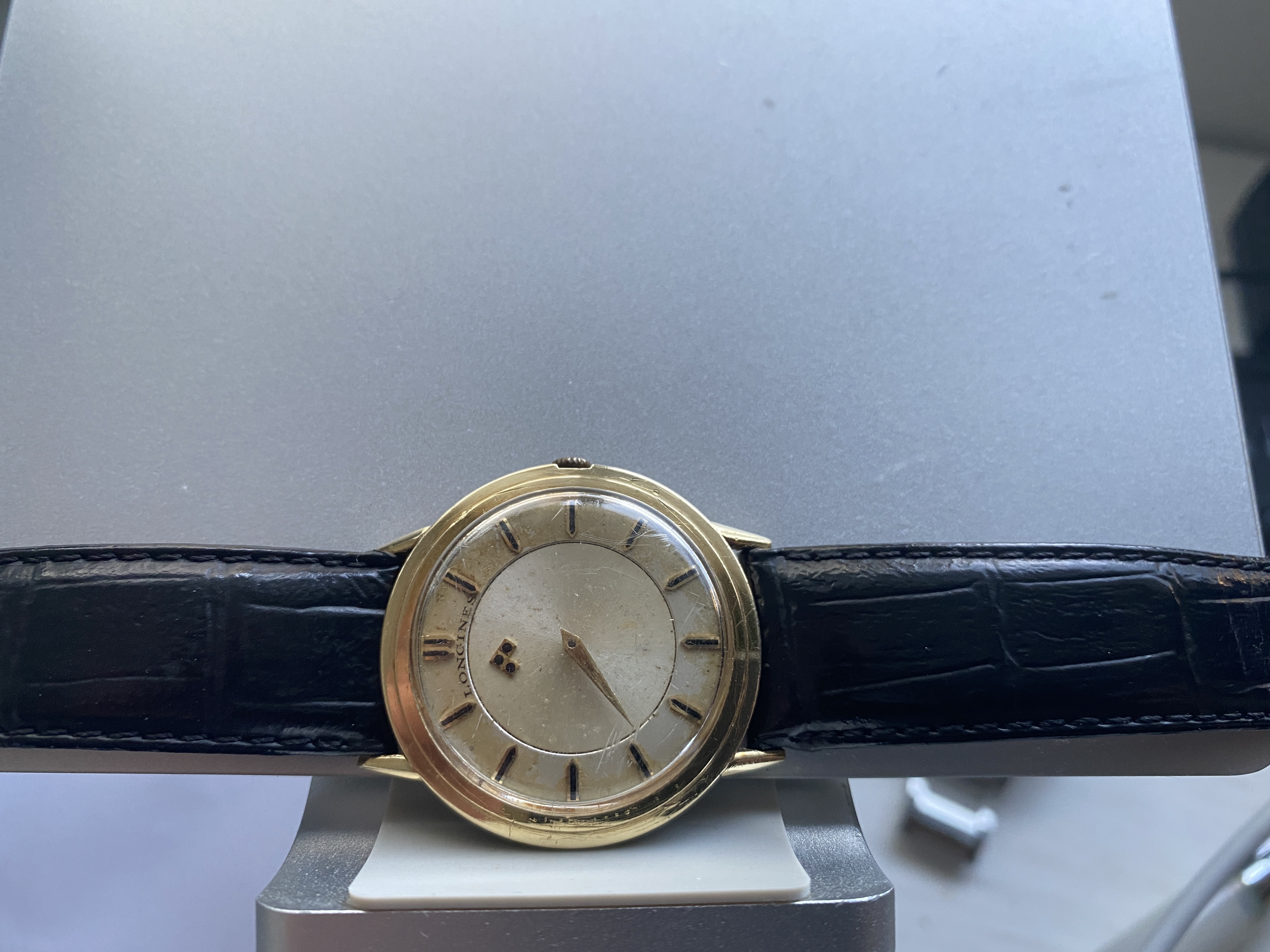 ·I have for sale a manual wind Longines in a 14kt yellow gold case with a mystery dial.