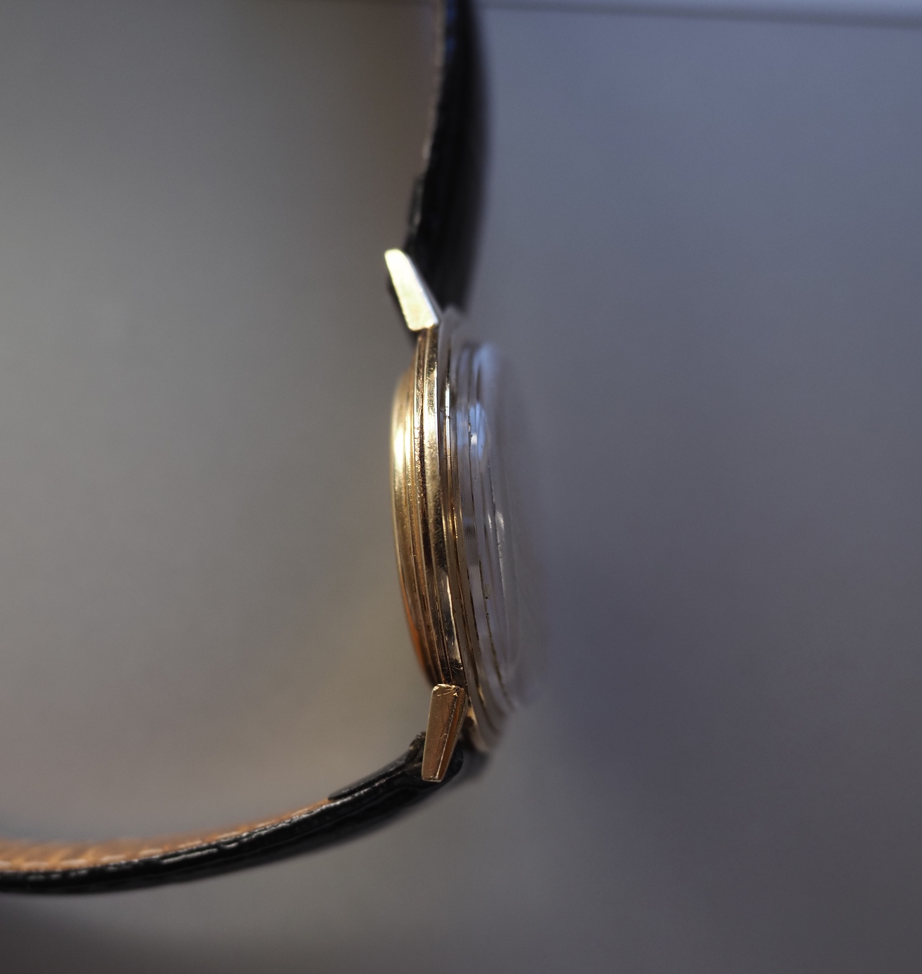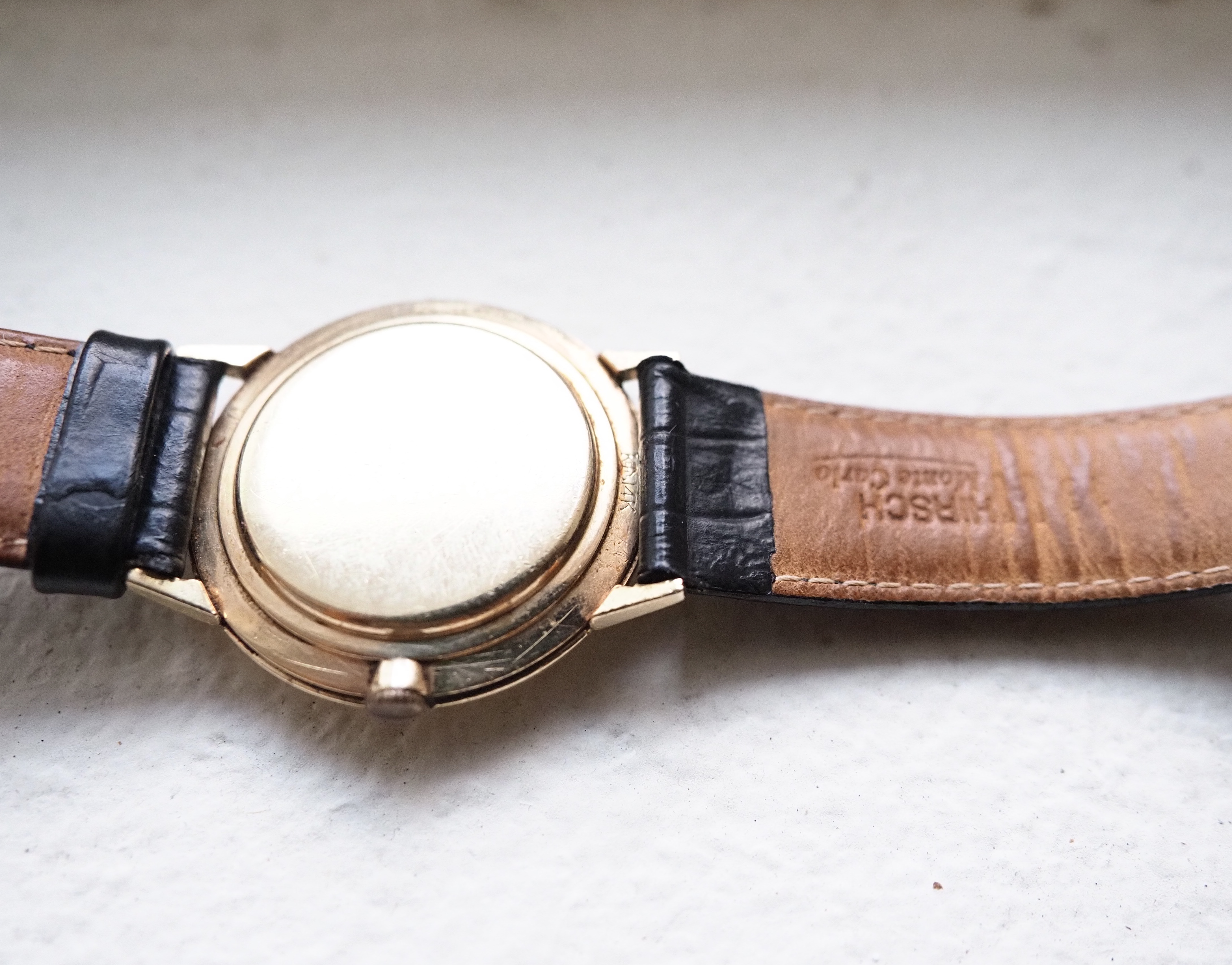 Case: The 34 mm case is 14kt yellow gold. The hallmark says K+H I think. I believe that it was cased in the United States. There wear consistent with age.