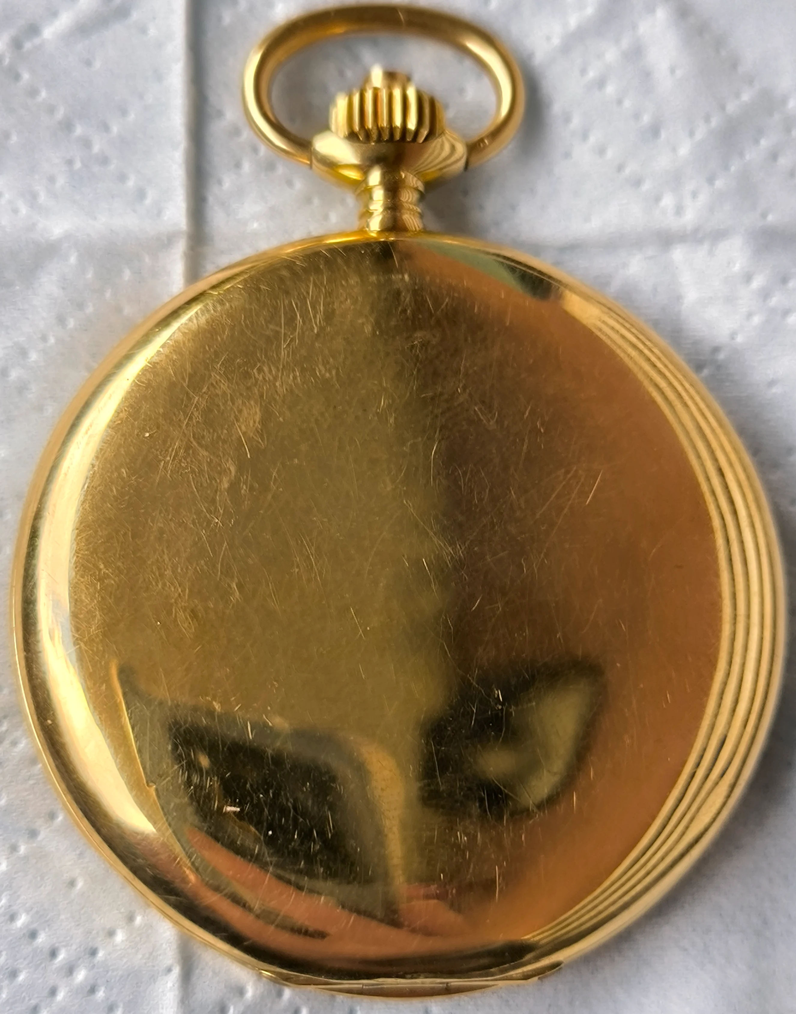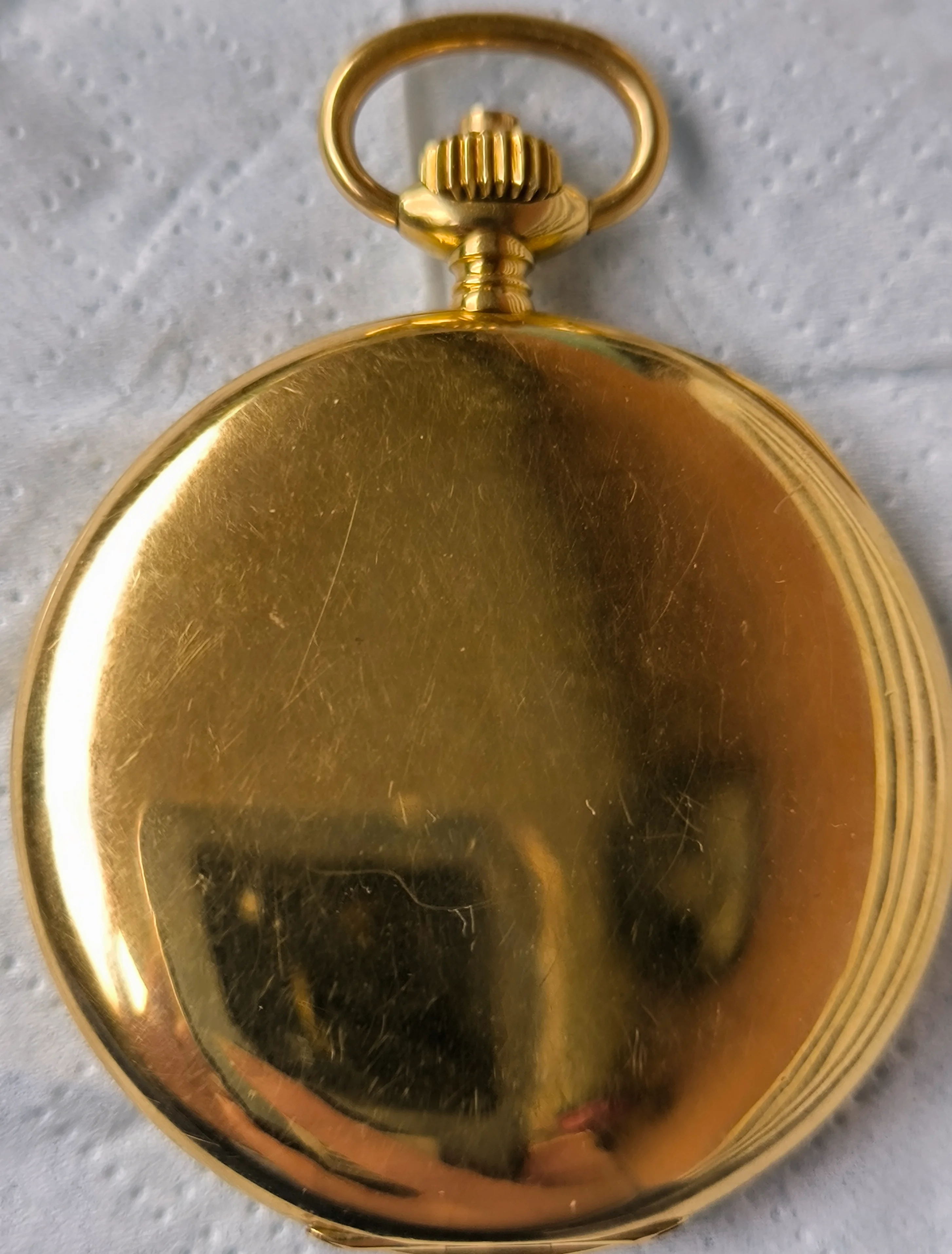 A 15-jewel pocket watch built in the first quarter of the 20th century, with a solid 18K gold case and in excellent precision working condition. The watch case is in good condition with no noticeable dings or scratches. The watch case closes perfectly; the front cover spring is in good condition and opens the cover quickly to its correct position.