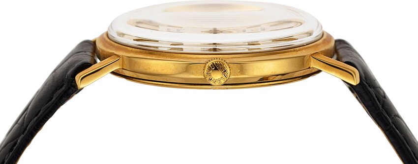 Material: 18k, strong hallmarks visible at the back of the lugs