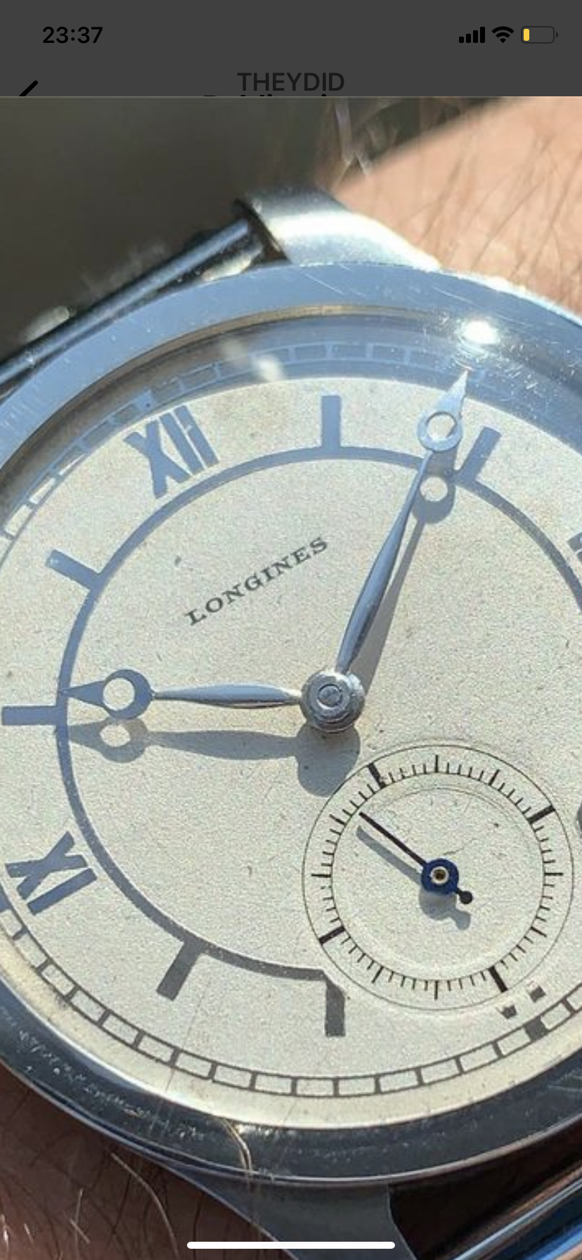 To linger on the topic of sub-dial edge sharpness and originality, I think we both agree that original dials usually have sharp sub-dial edges. I think we also agree that the dial in question has pretty sharp edges. Following from that, one question that arises is, are there redials with sharp edges? I think that the answer is yes. Below is an example of a disclosed redial found here: https://www.lorologiese.com/en/home...4-sector-dial-1951-steel-watch-cal-1268z.html