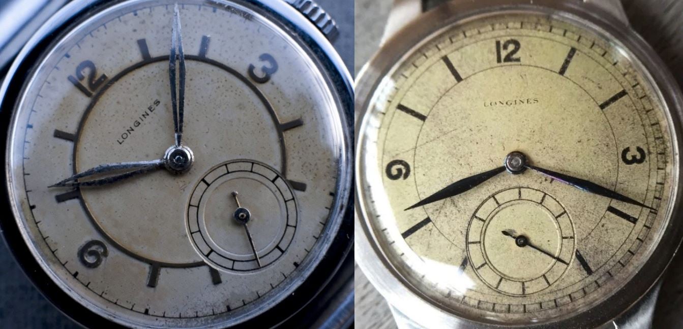 Back to the design of the sub-dial, below is a comparison with a watch that I posted in 2017 here: https://omegaforums.net/threads/another-balaclava-1930s-longines.54610/ At the time, I questioned the sub-dial design. Now, I think that the dial is probably original. It is interesting to note that the gap, which @Modest_Proposal highlighted on the left dial, is quite a bit smaller on the right dial. Also, the twelve lines of the sub-dial look to be of the same thickness.