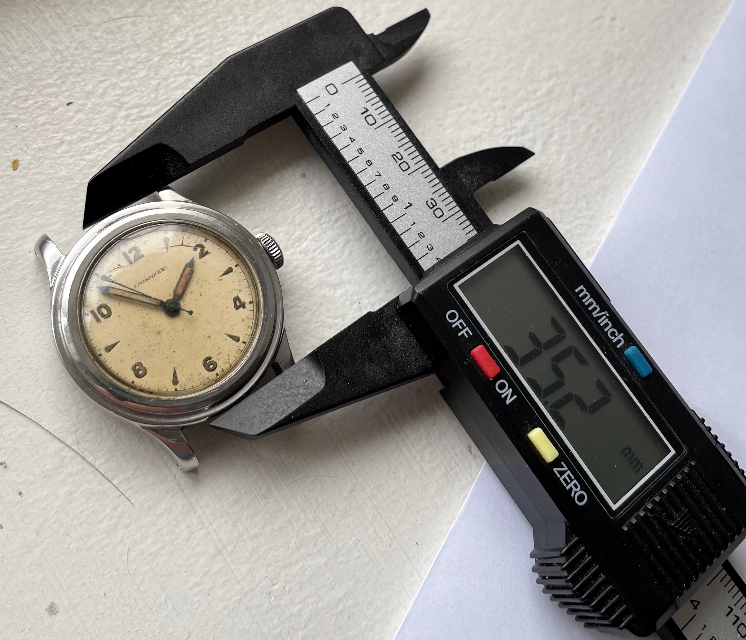 Watch turned up (after sent with regular postal service with stamps only even though we agreed to insured and trackable shipping) and actually was bigger than 31mm and even bigger than the messured 33mm, its 35mm+ and you all know what those extra few millimeters does to a tre tacche Longines.