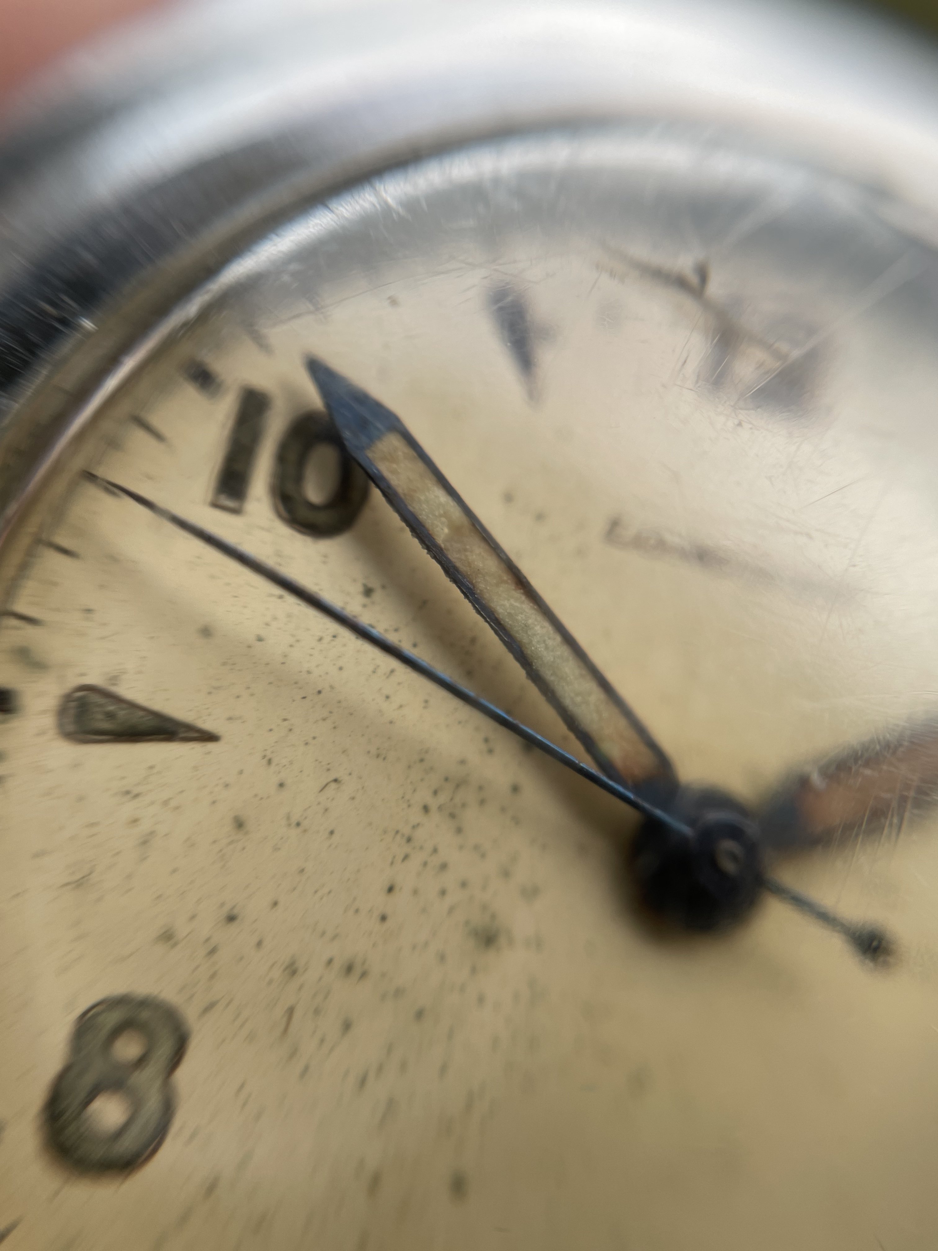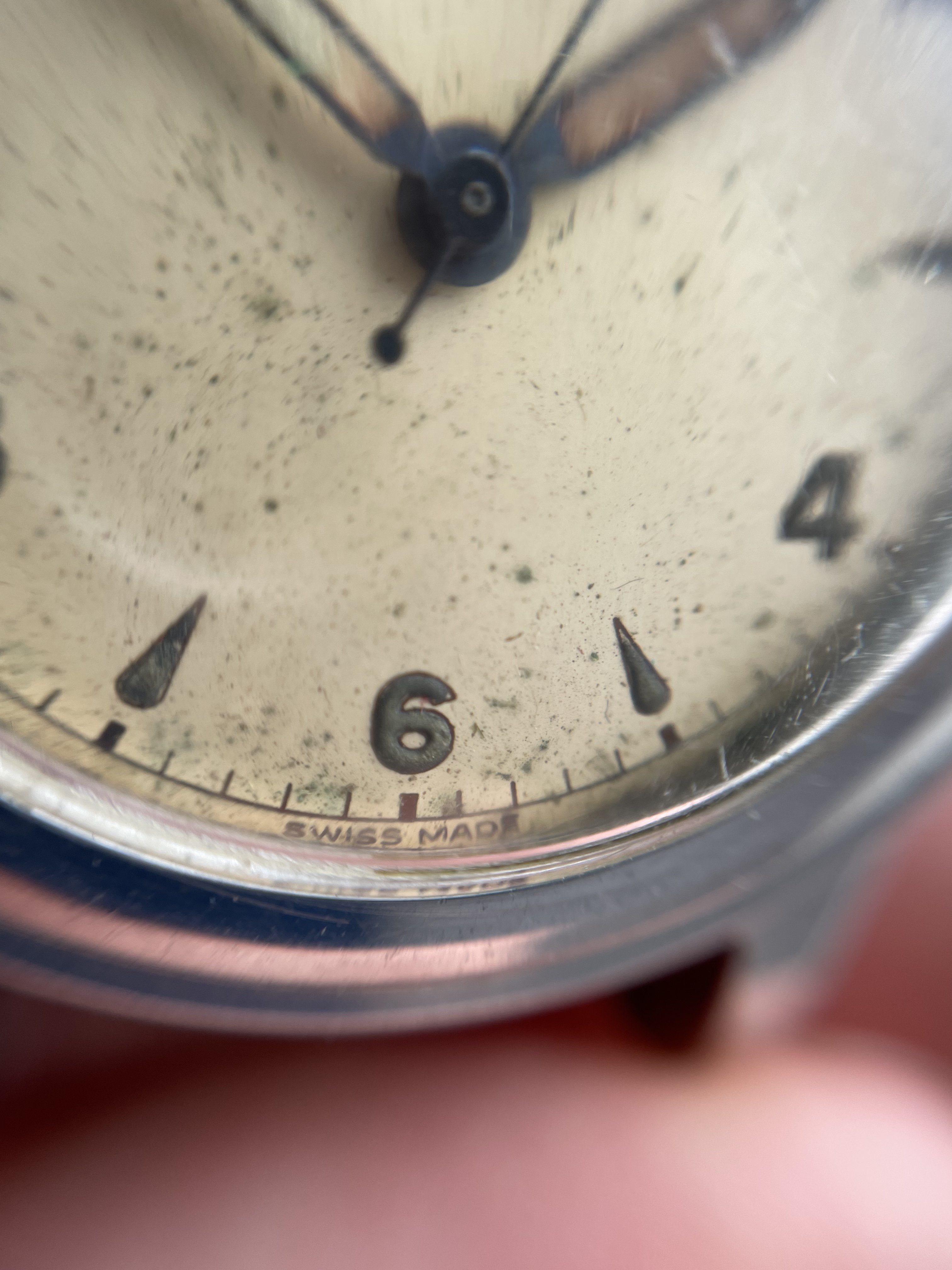Along with the some dirt and patina the dial looks okey to me, what about the hands?
