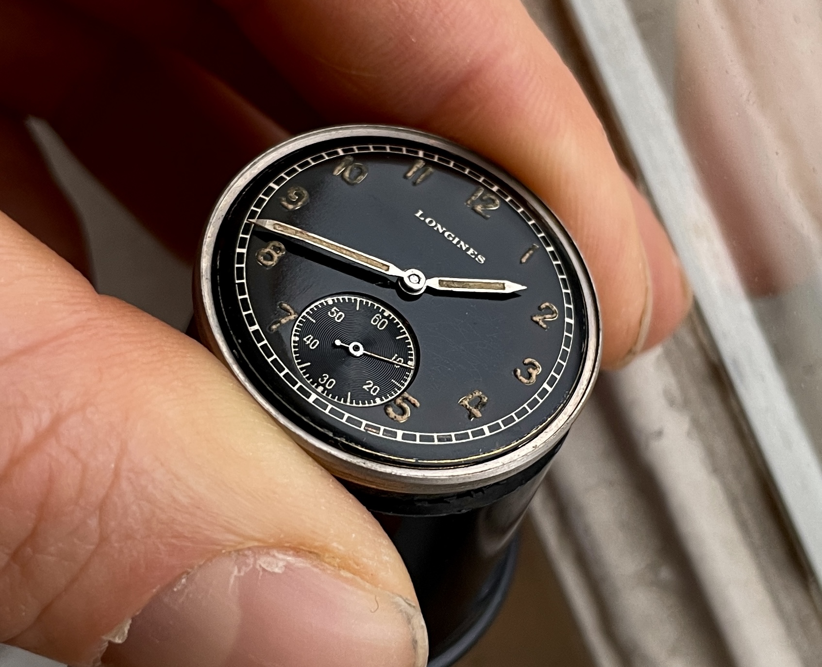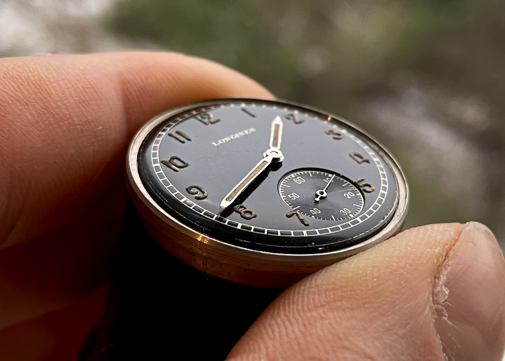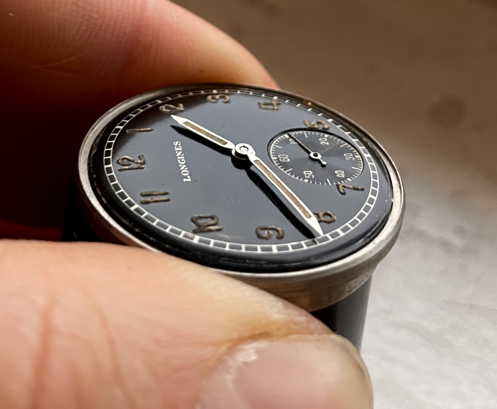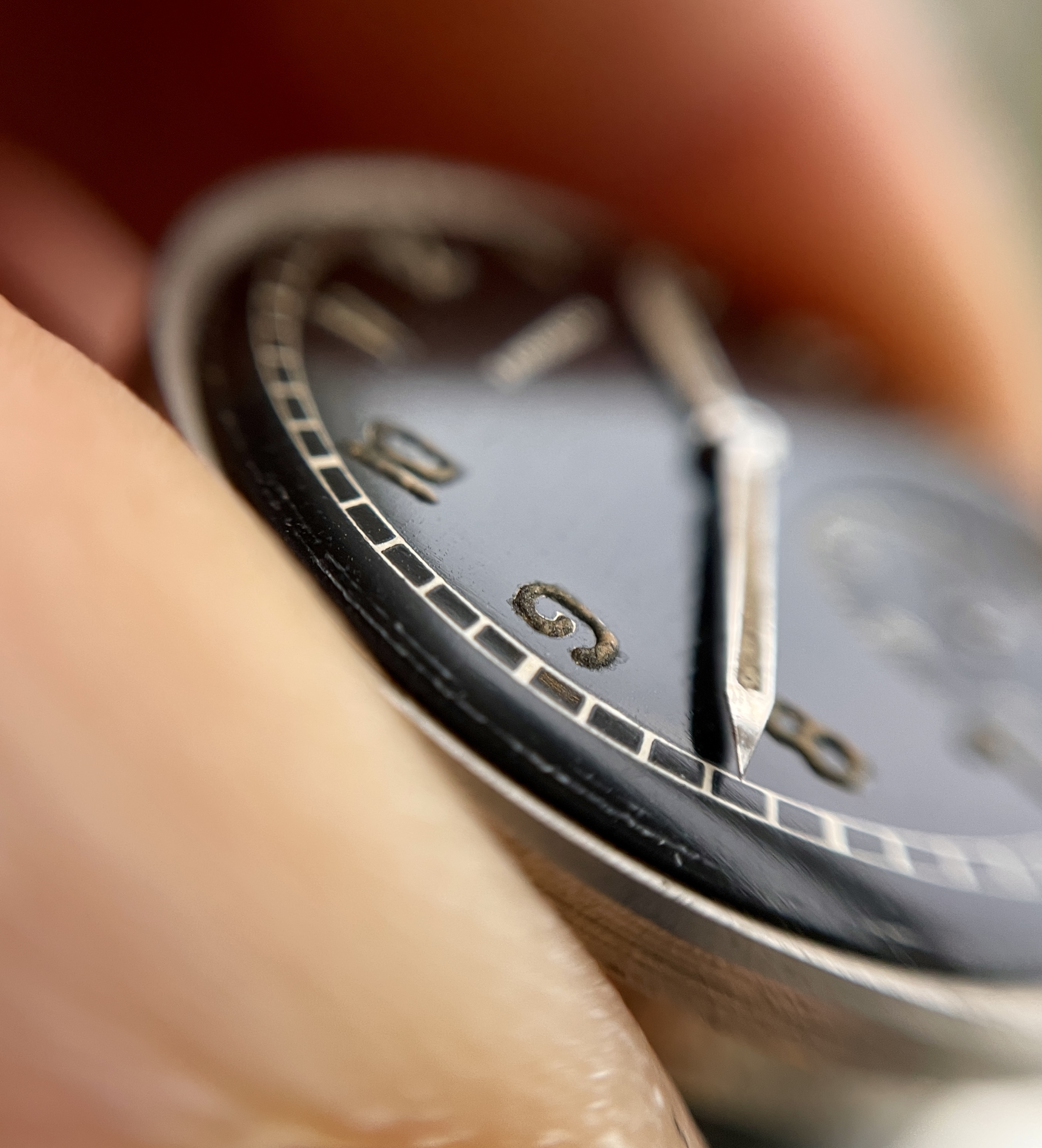 ·Distortion caused by crystals makes assessing dial curvature difficult. Additionally, my presumption that the majority of tre tacches have flat dials makes me biased towards seeing flatness. However, looking at these dials, only the black one stands out as potentially curved, to me.
