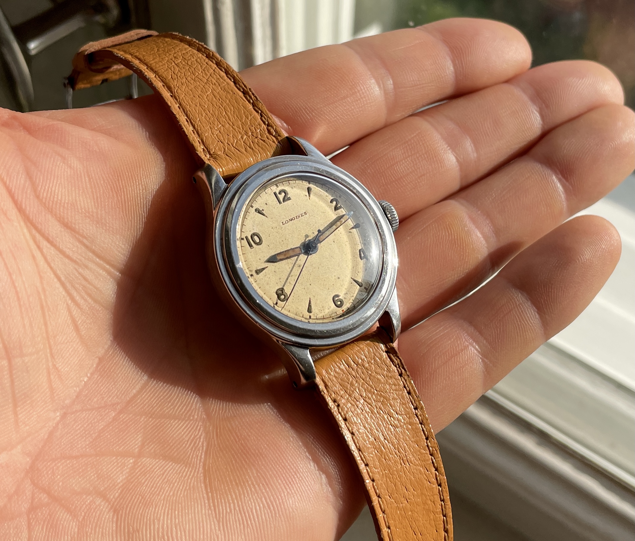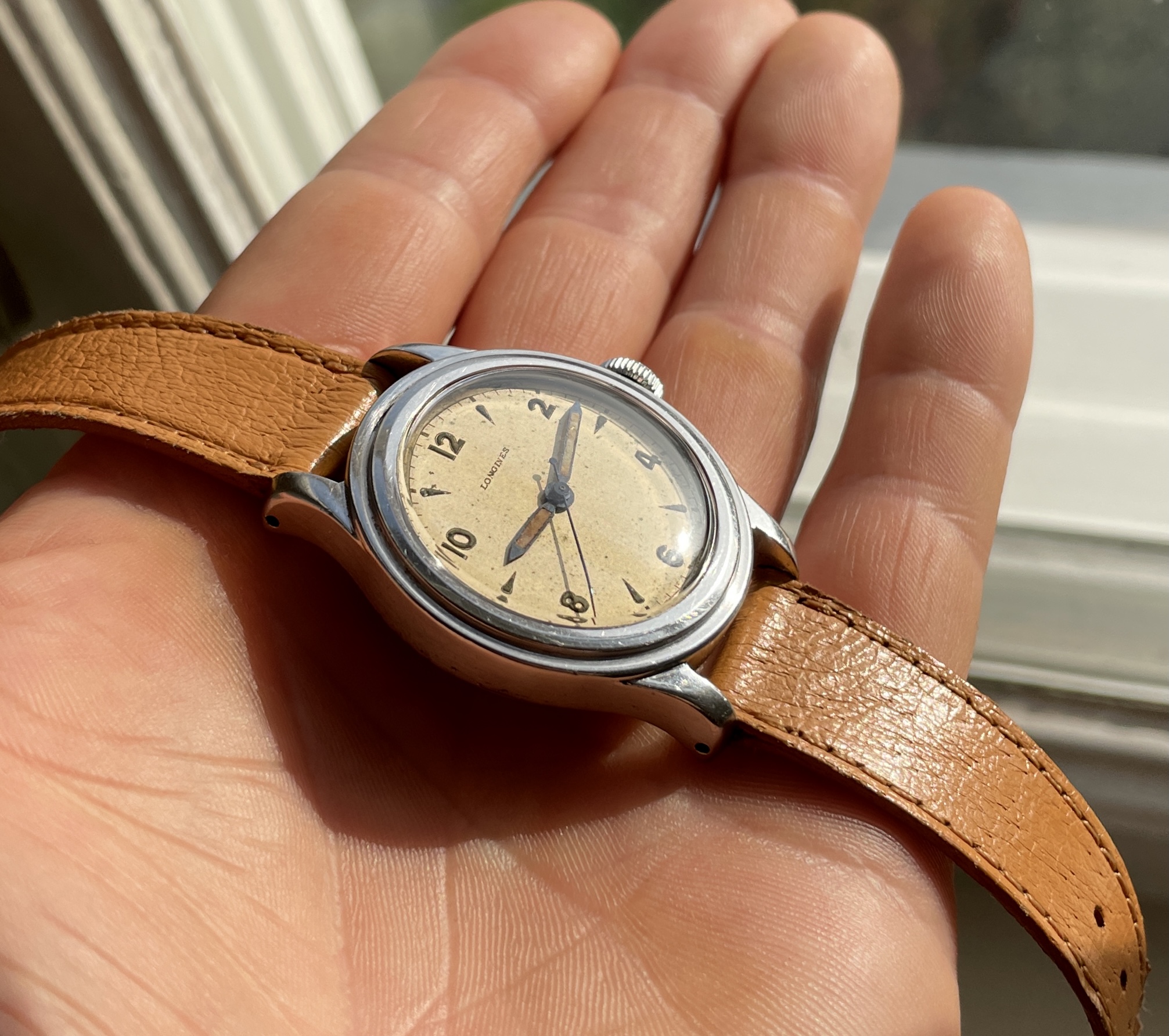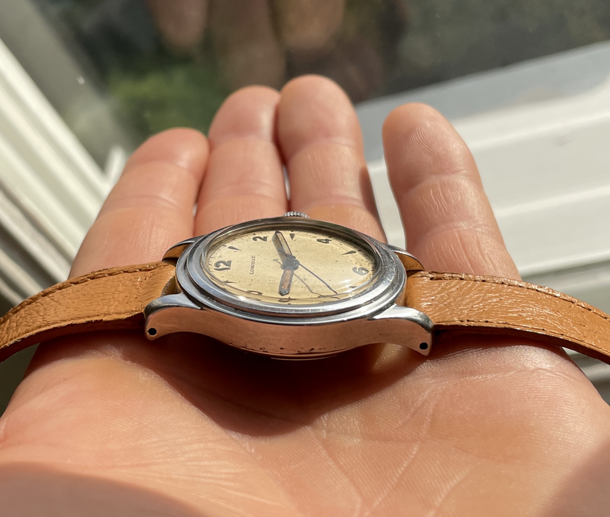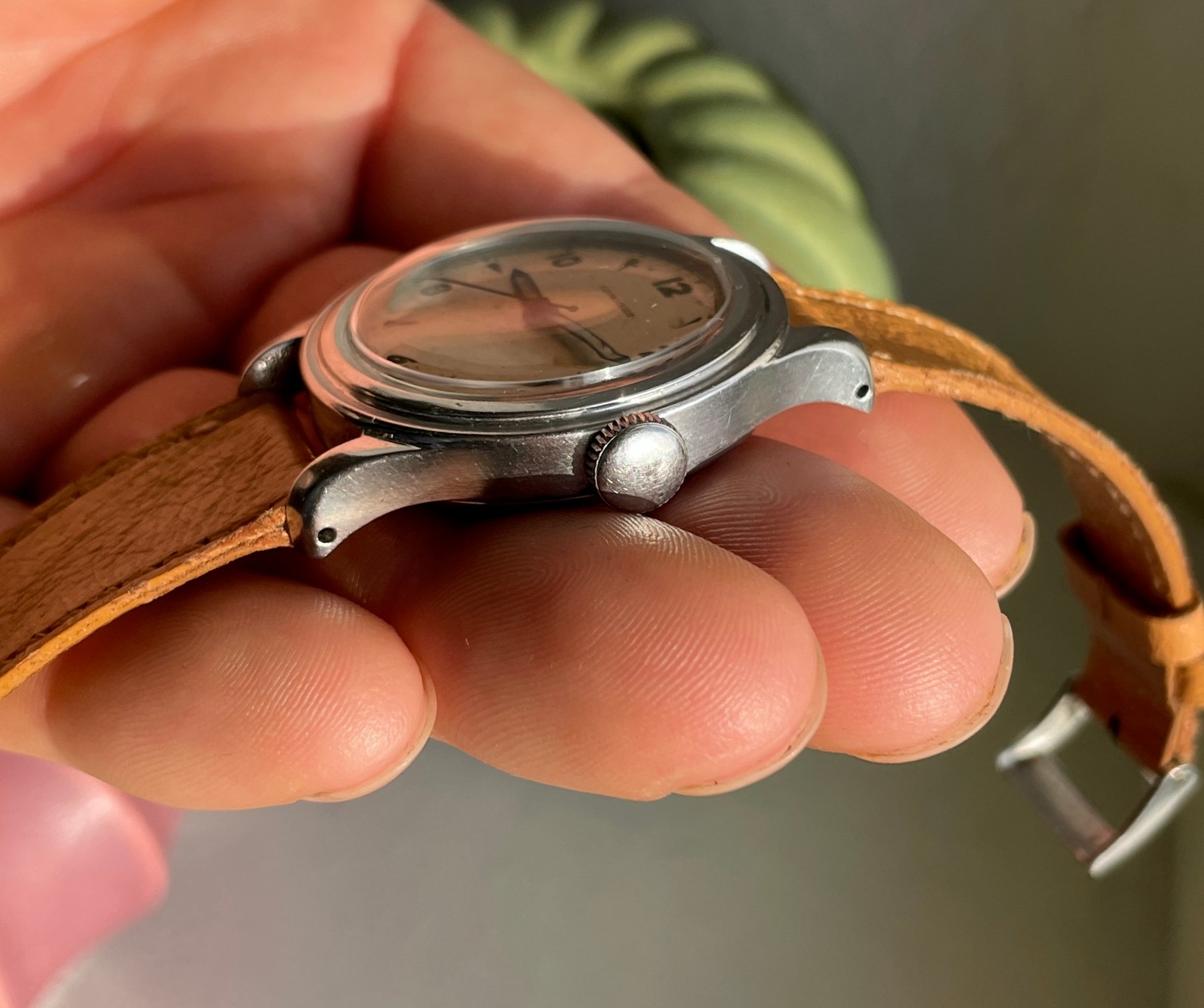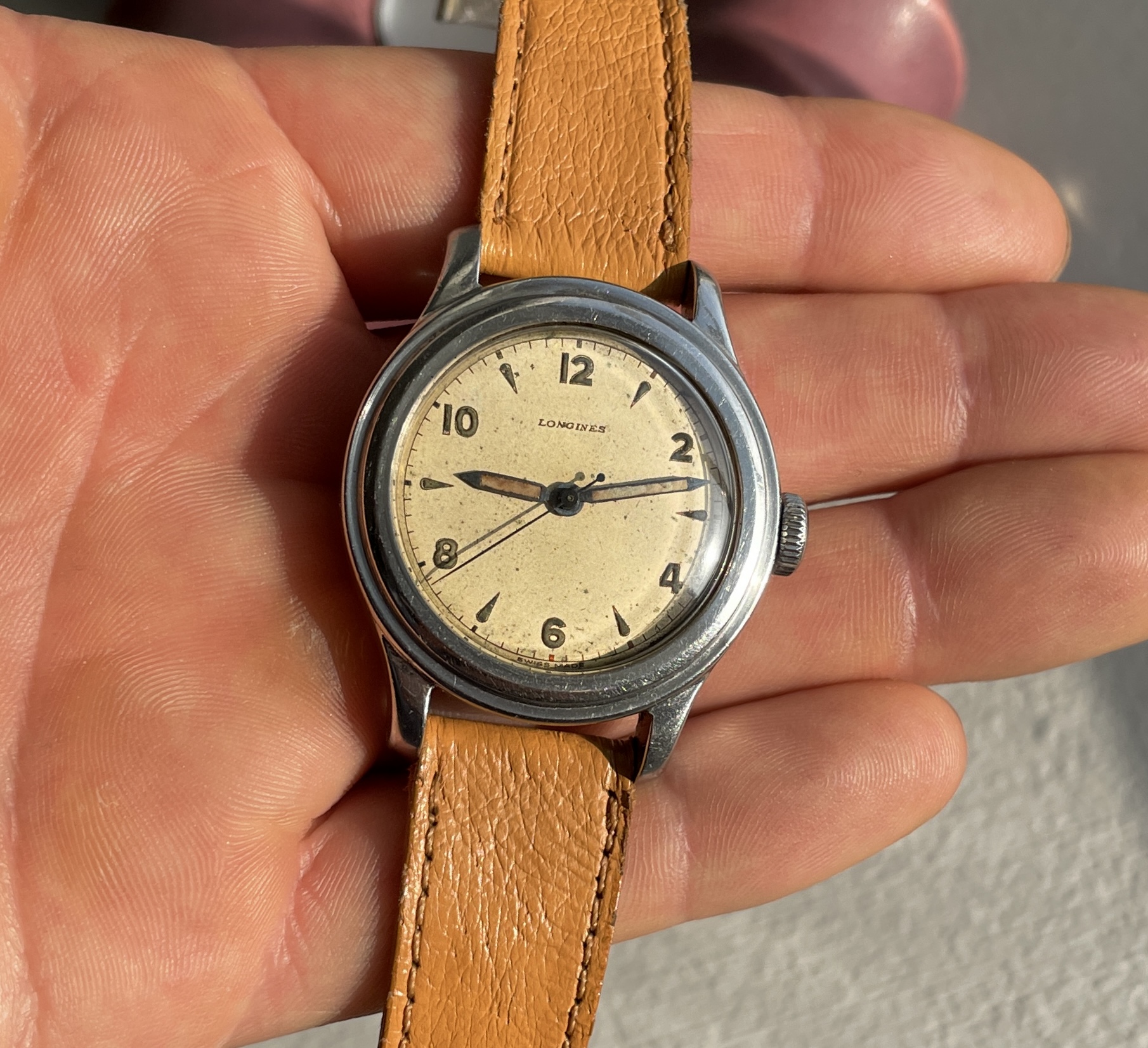 ·Distortion caused by crystals makes assessing dial curvature difficult. Additionally, my presumption that the majority of tre tacches have flat dials makes me biased towards seeing flatness. However, looking at these dials, only the black one stands out as potentially curved, to me.