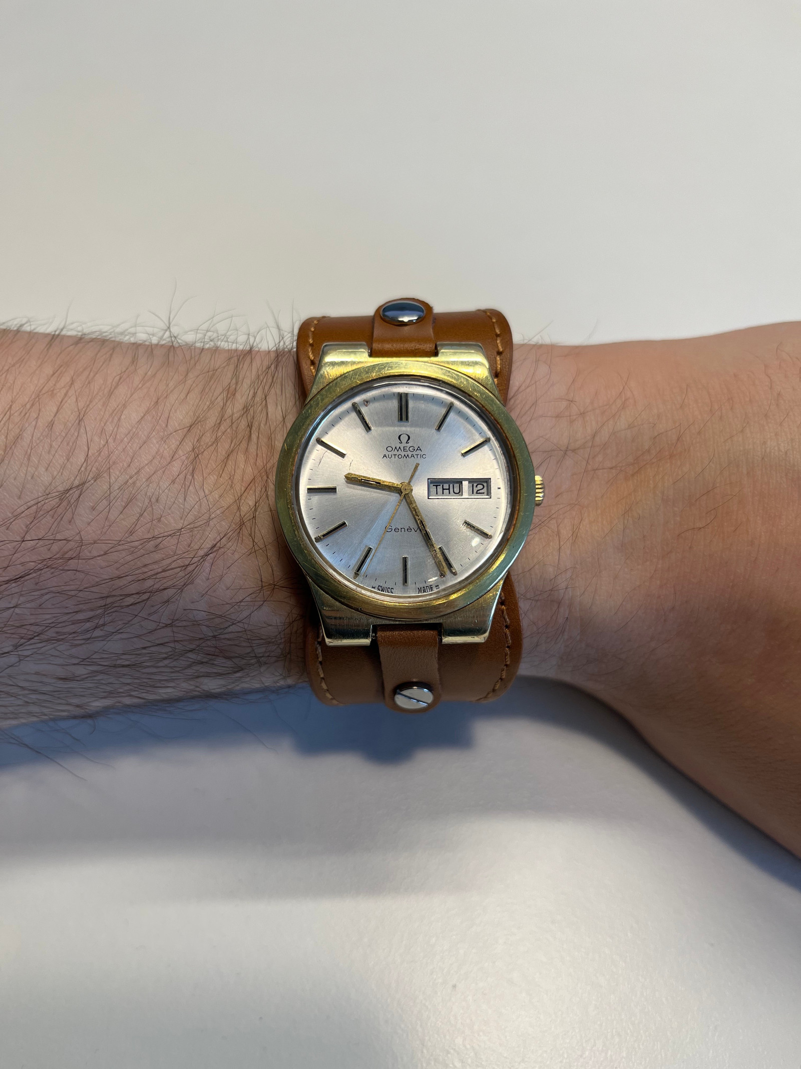 Posts 21 Likes 17 Geonor ·May 13, 2022 Came across this 70s Geneve for 250 bucks. Any obvious flaws besides the awkward lugs and signs of use I should be aware? Newly serviced and comes with both straps. Looks like a fun little beater for what seems to me like a good price.