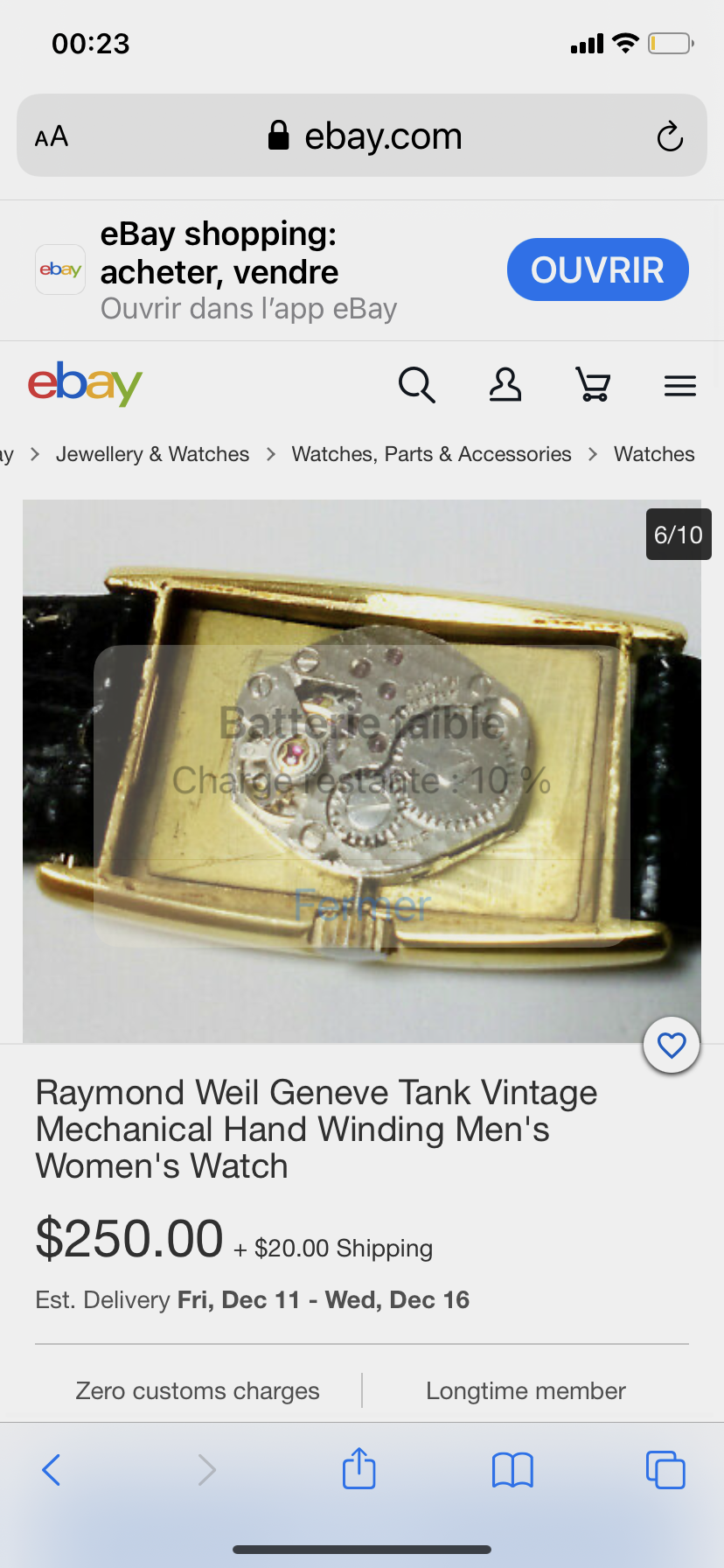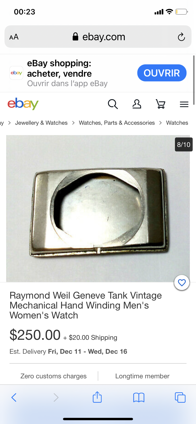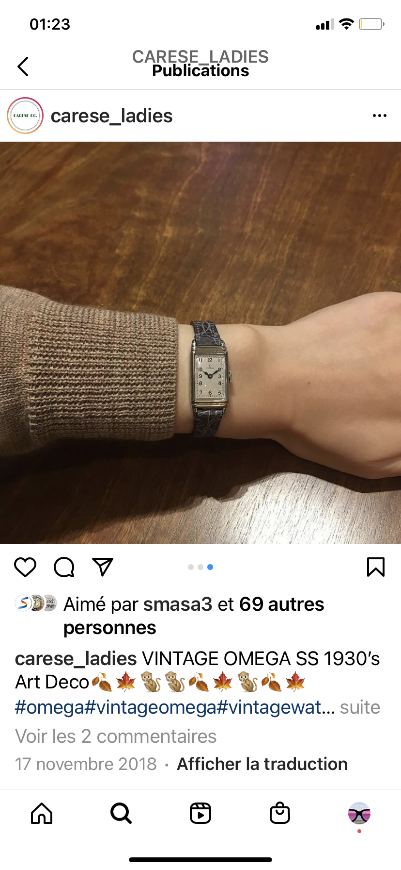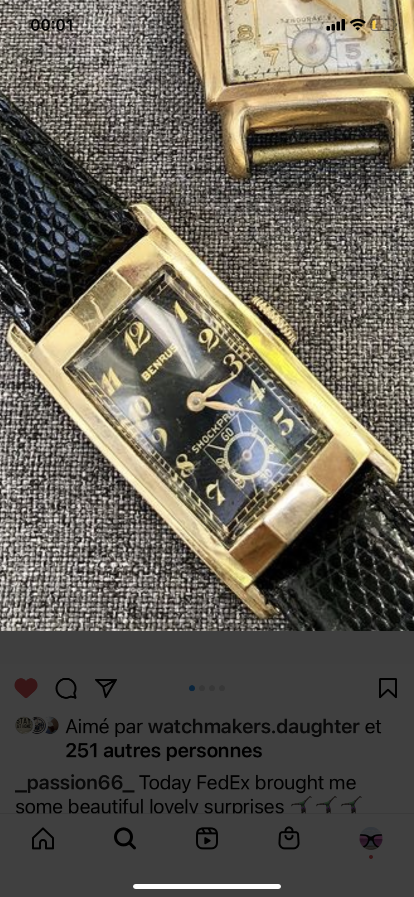 TLDR: I'm looking for pre-WWII women's golden (or gold-plated) watch, that is rectangular (not square) and has a black dial with golden hands.