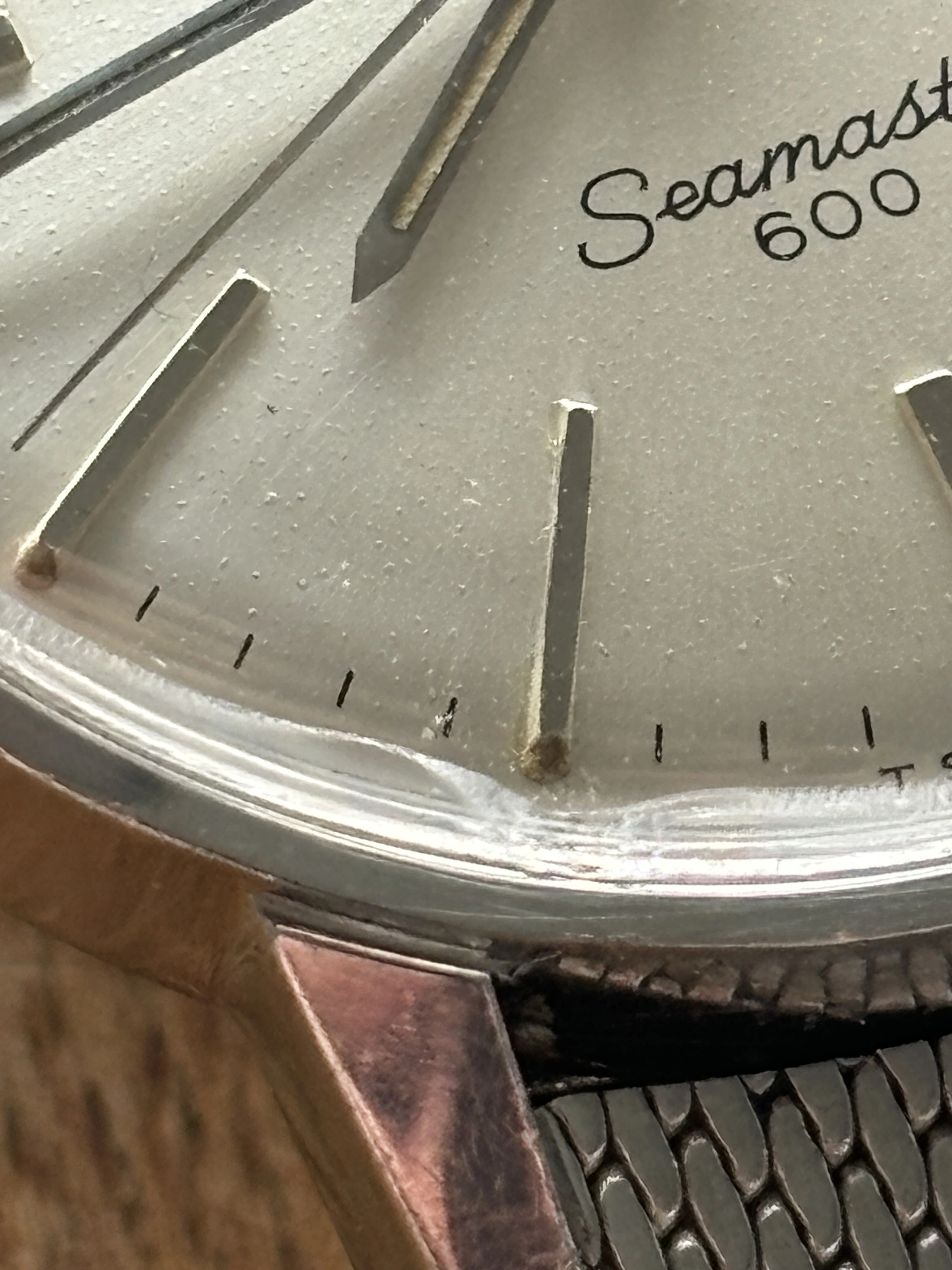 Upon opening the package, I noticed a small crack in the crystal of the Seamaster 600, which is peculiar considering the watch was well-packaged, and the delivery box showed no damage. Additionally, the Constellation was changing date at 2:30 am, which is annoying but manageable. However, the cracked crystal is a more significant issue which needed addressing.