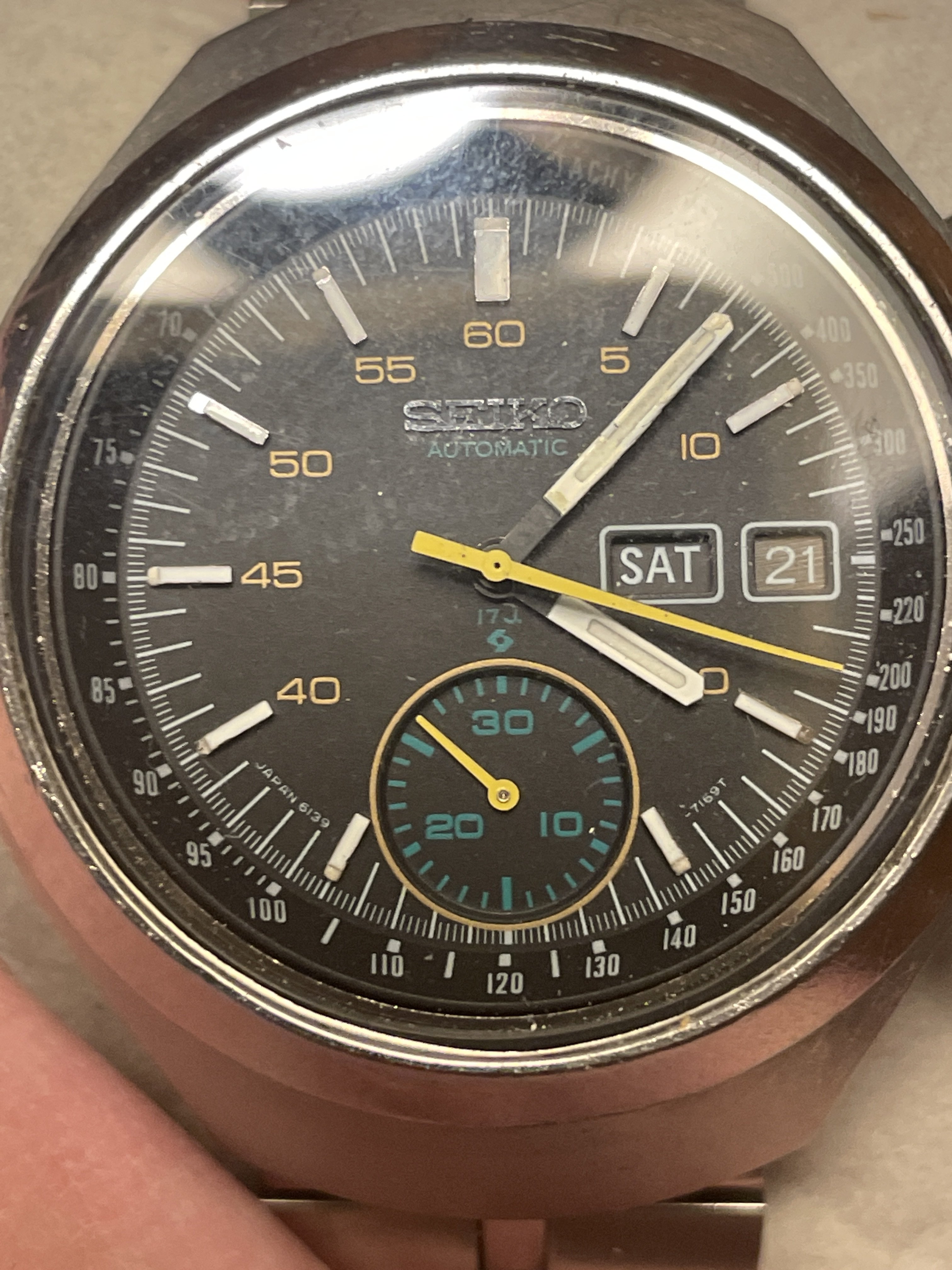 ·I picked up a couple vaders as I just like the look. One has a great dial but the case took some knocks. The other both the case and dial looked pristine. My watchmaker was in Switzerland doing a training or certification so I used someone else. Nice guy and the watch runs fine but I’m noticing the loom plots are slowly darkening.
