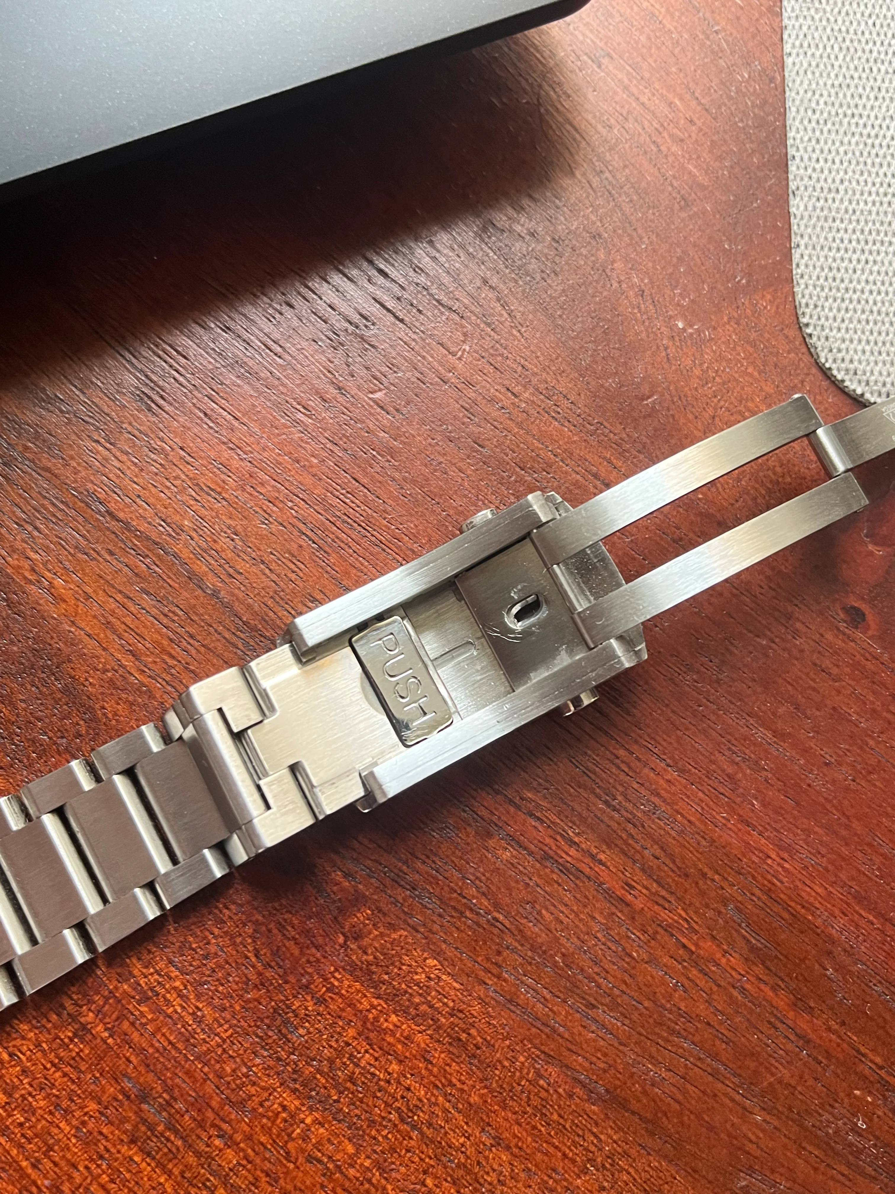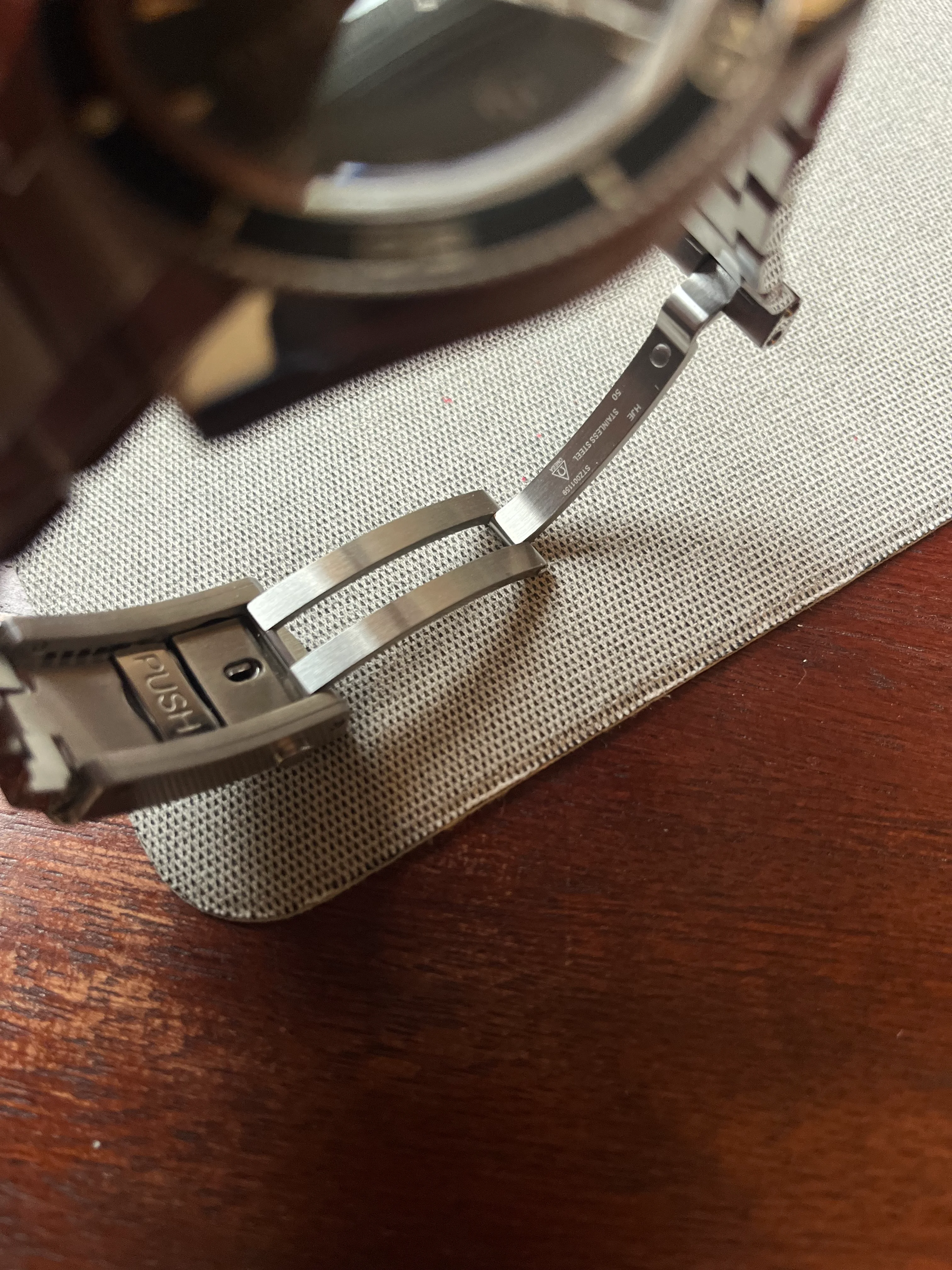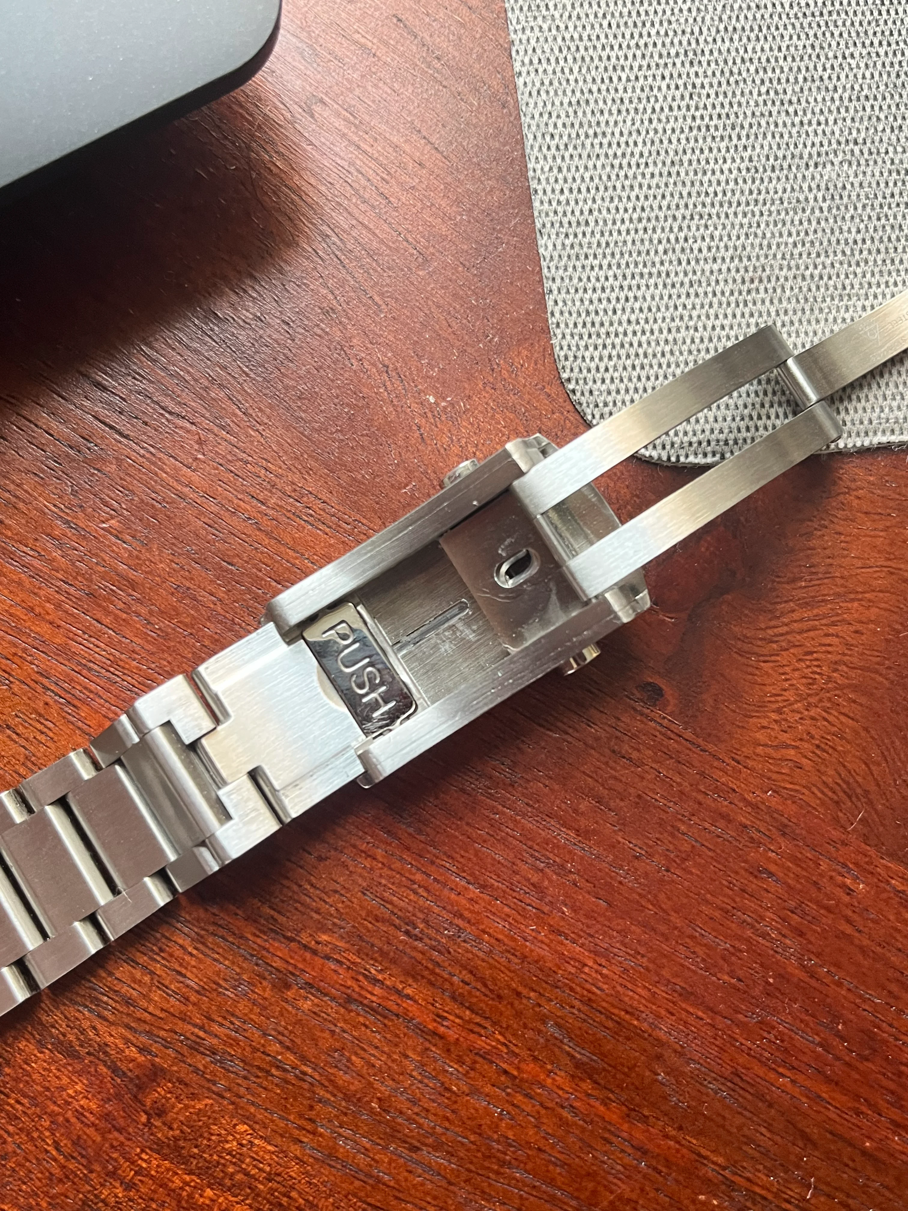 the most commonly faked parts. I have no idea if that clasp is genuine, but I also cannot, for the life of me, understand why someone would "replace" the current clasp with a bigger one, which makes me a bit suspicious.