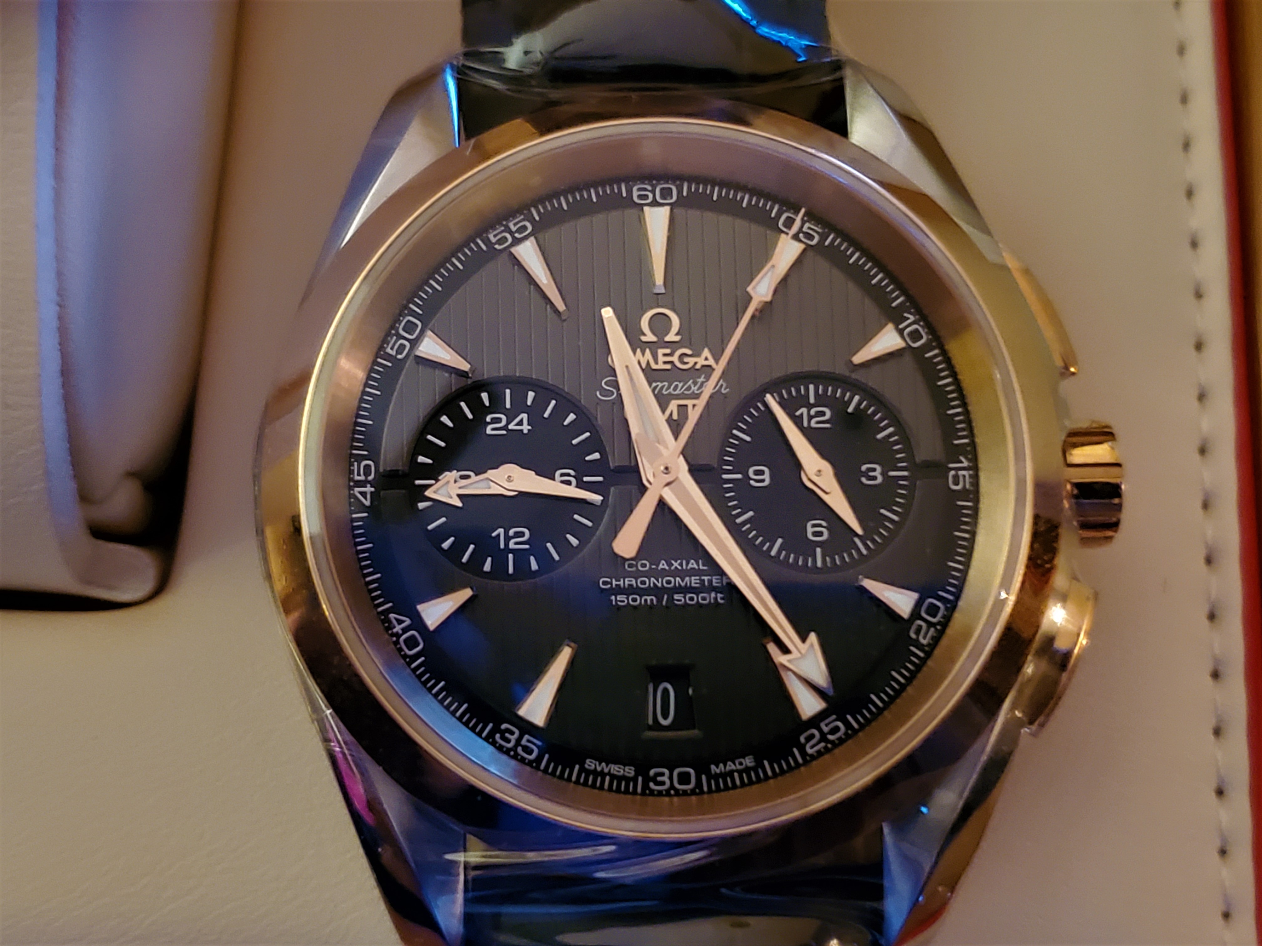 - but I am mostly wearing it on tailor made crocodile strap: