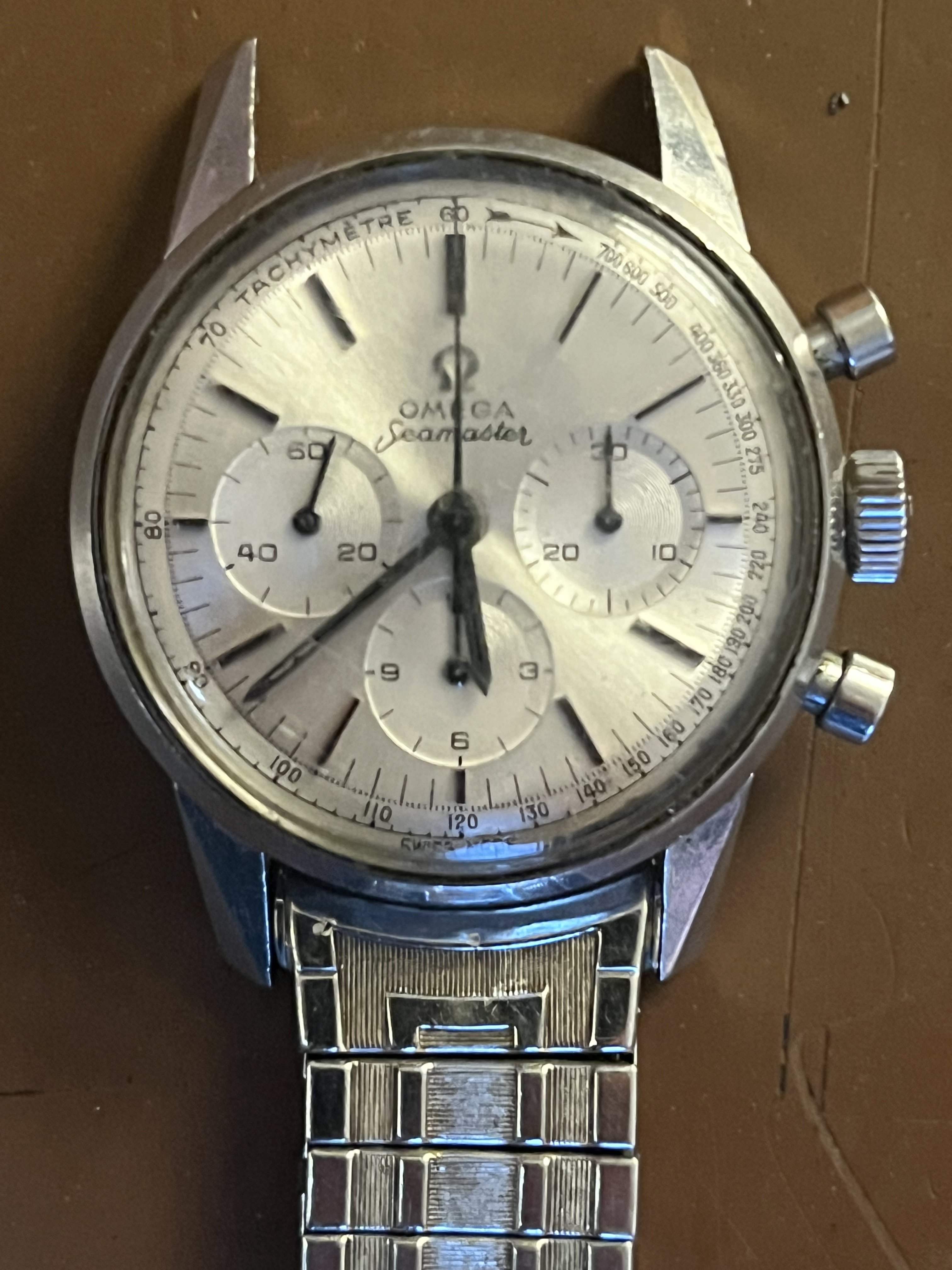 ·I posted about this watch before. It was given to me by my wife's grand parents. It was a nonworking Omega Seamaster cal 321 CK2947 315.164. I immediately took this watch to a reputable watchmaker. No polish, except on the crystal. He has done a full service on the watch and ultrasonically cleaned everything. He is telling me that he is having problems with two parts that control the minute counter subdial. He stated that the parts are worn and need to be replaced to get this function working correctly. I realize that these parts are hard to come by. He is giving me two options. 1) To wear and enjoy the watch as is with the minute counter not functioning or 2) He has contacts all over the world and can attempt to source these original parts and replace them so that the watch works 100%.