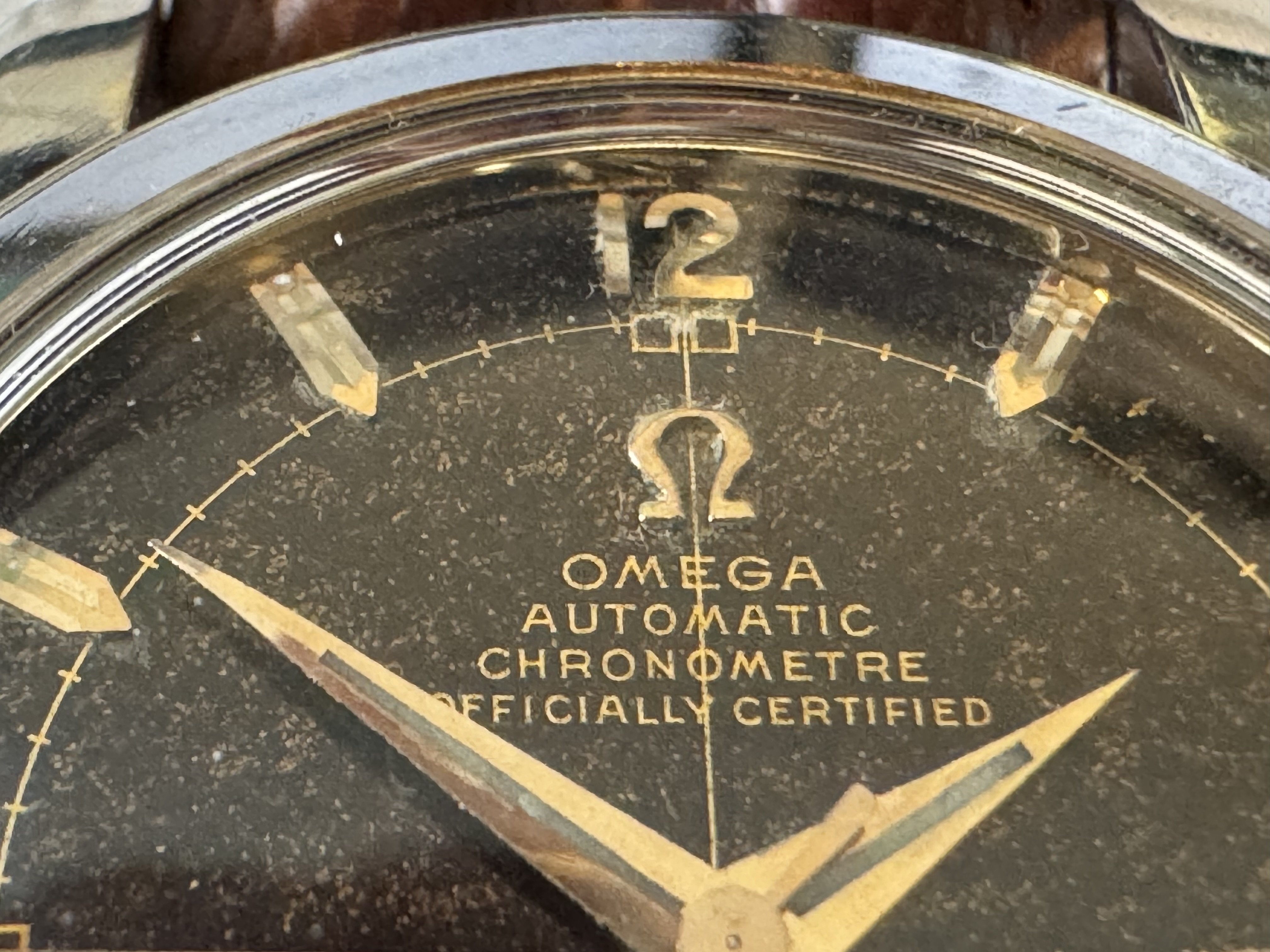 Background: I bought this watch in 2016 not running from a guy liquidating an estate in New Jersey, and with no band. I paid $200 for it and spent another $200 getting it serviced and running. Added a generic brown strap to go with it so I could wear it.