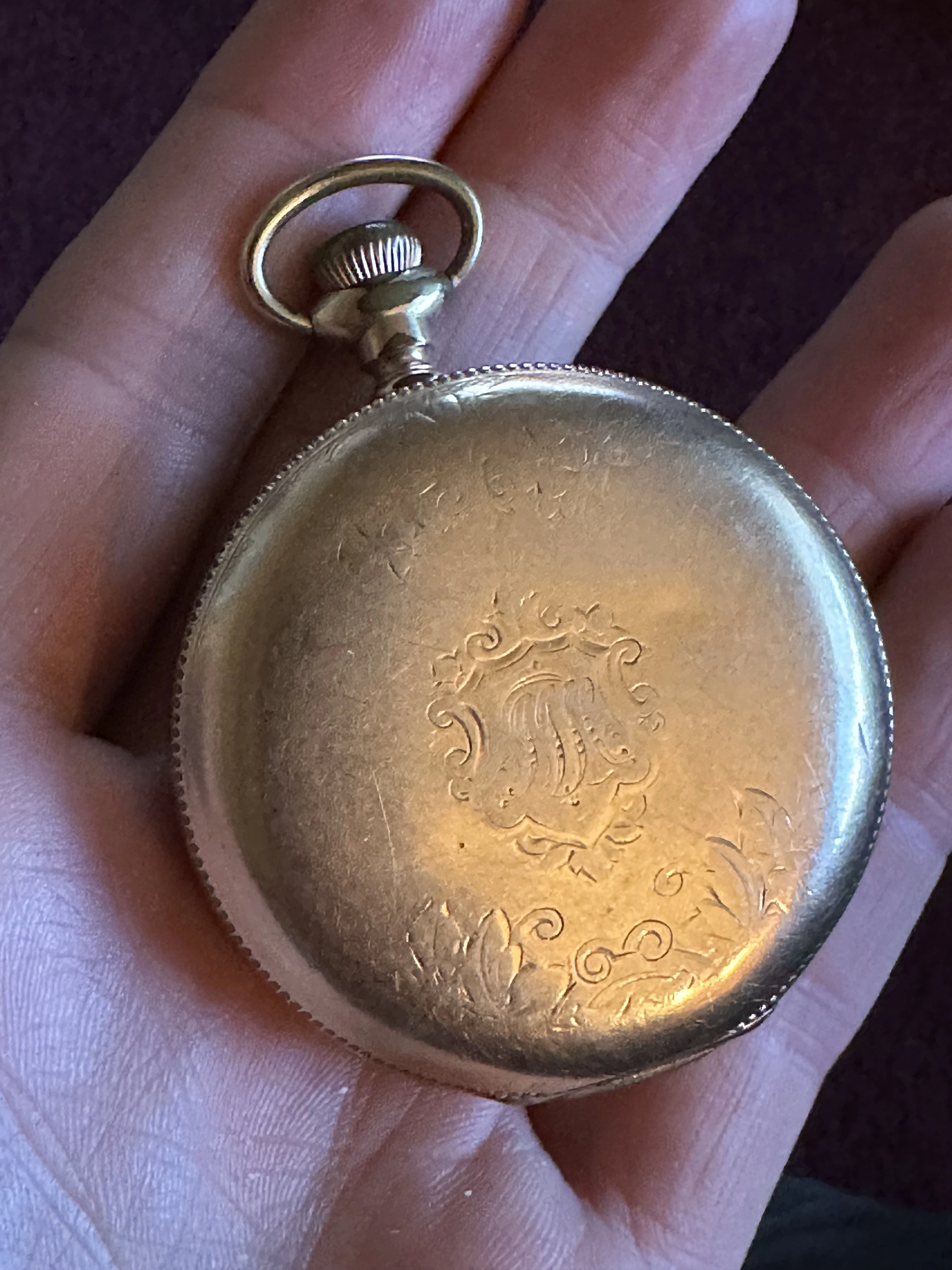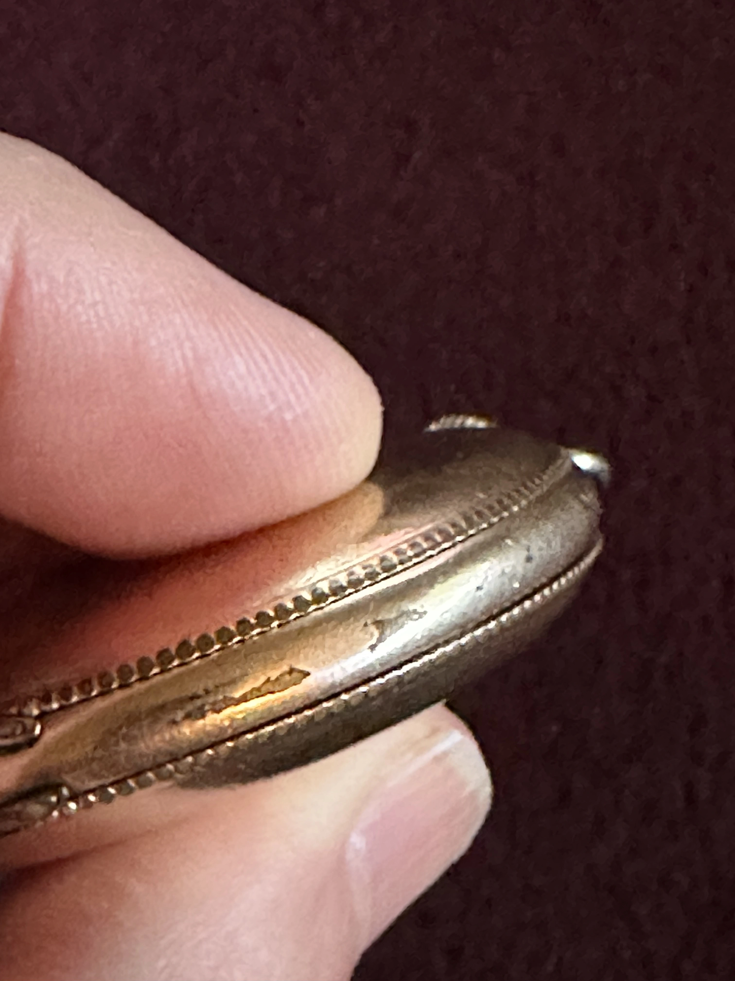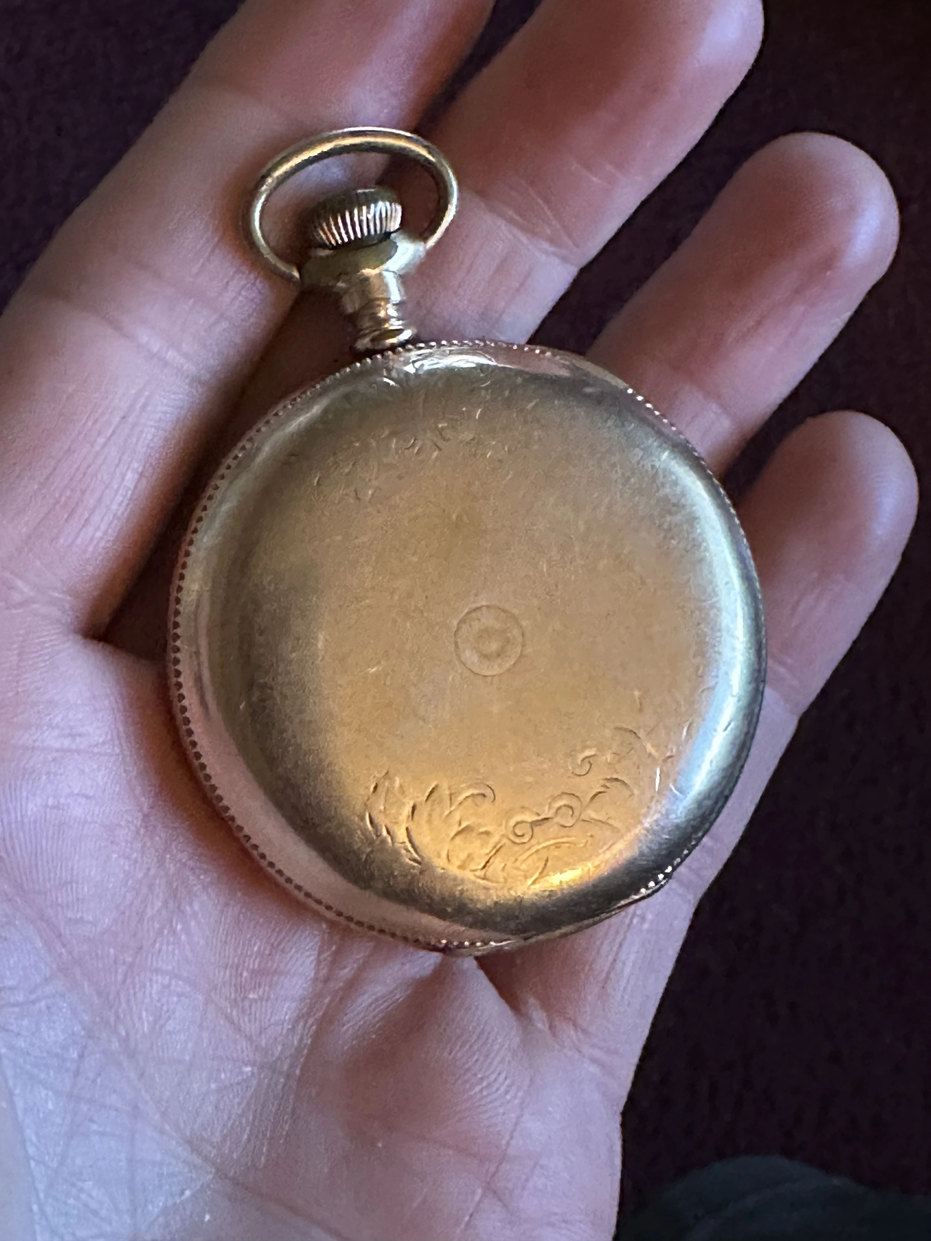 My dad’s friend was asking me if I could help him with info on this PW, but I don’t really know anything about pocket watches. I told him the big question in terms of value is if it’s solid gold or not, which I can’t tell. I’m not seeing obvious hallmarks. One of the shots of the edge show possible wear suggesting maybe it’s plated? Also side shot shows possible hallmarks that have worn down? Or are those just dents?