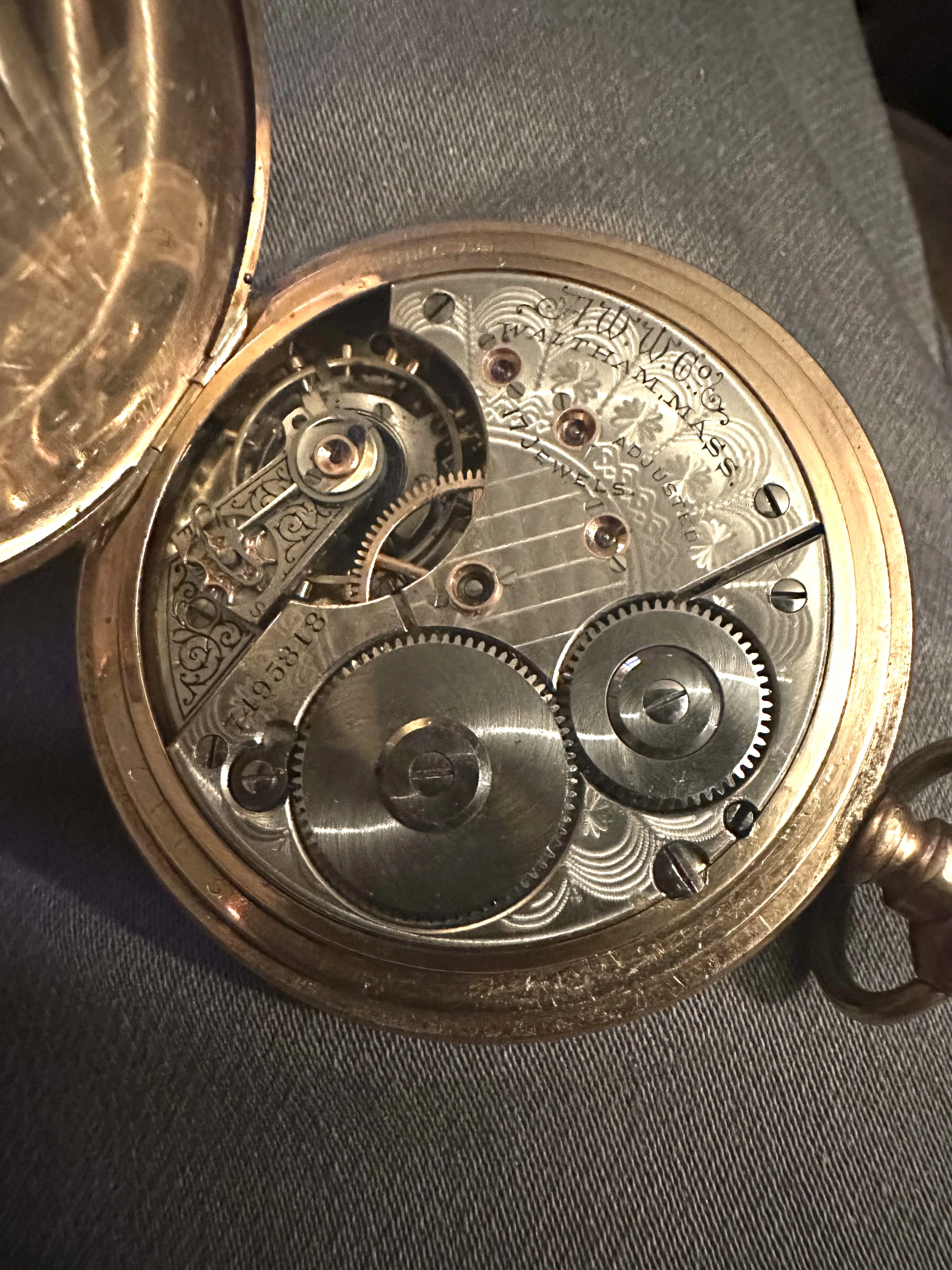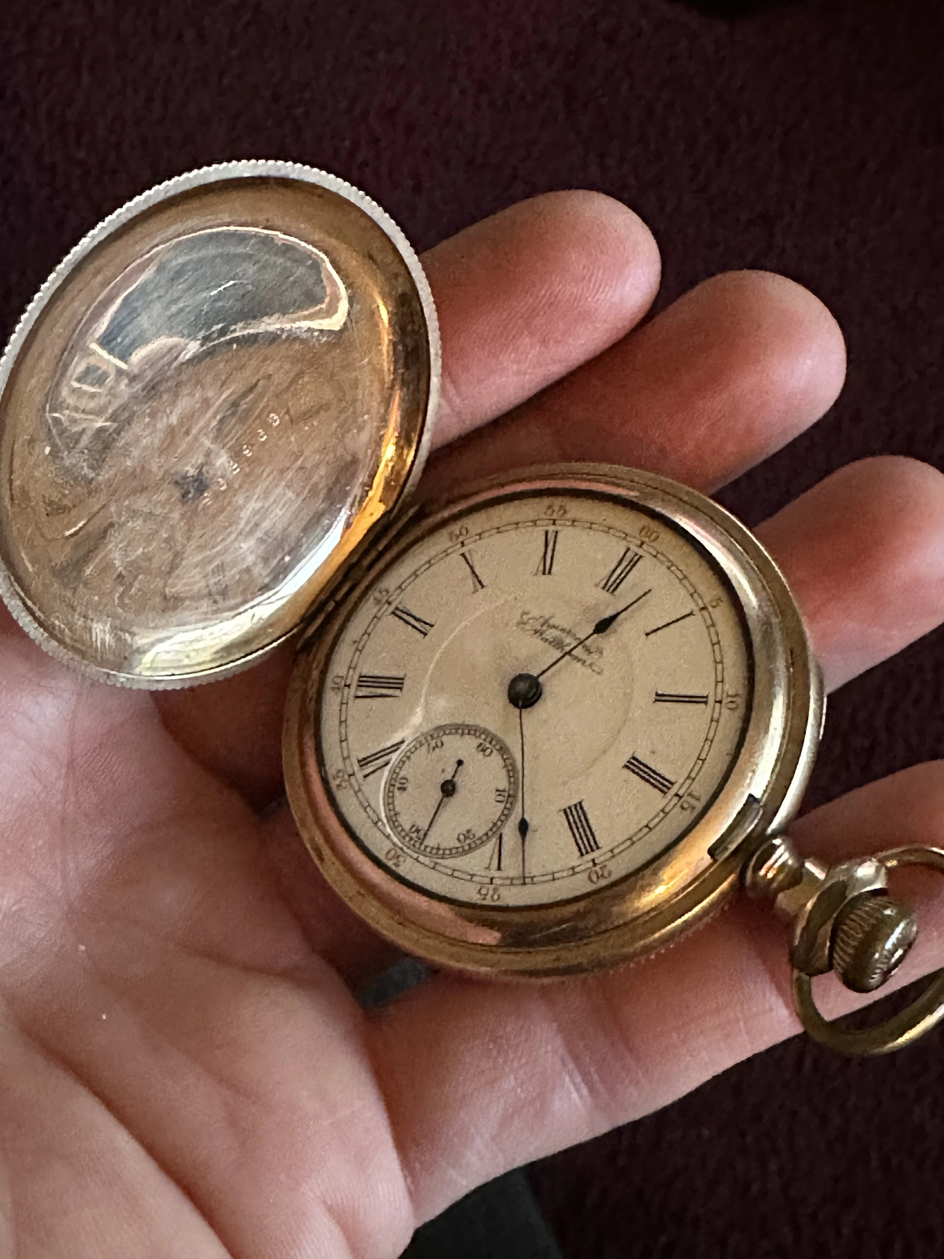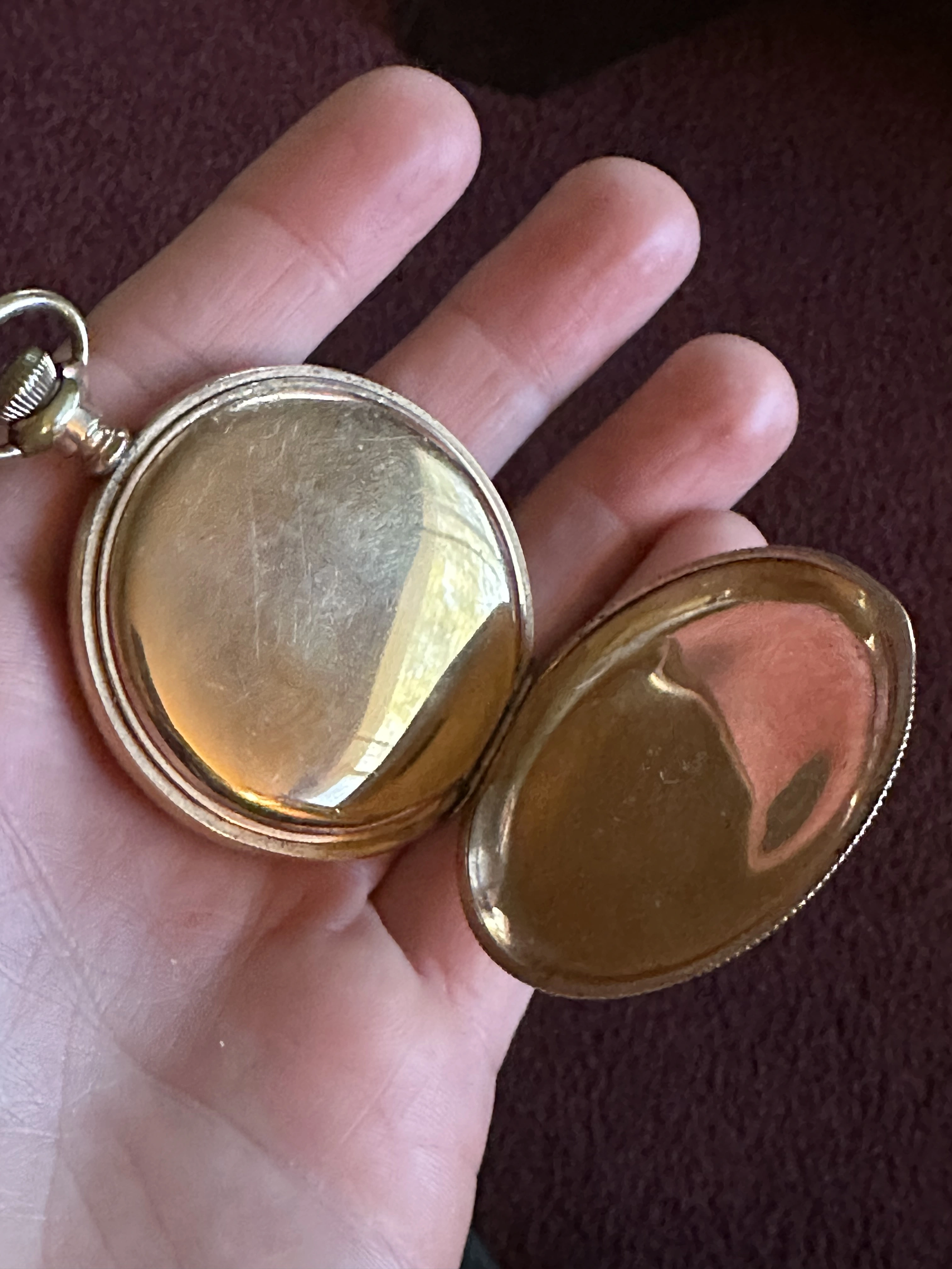 My dad’s friend was asking me if I could help him with info on this PW, but I don’t really know anything about pocket watches. I told him the big question in terms of value is if it’s solid gold or not, which I can’t tell. I’m not seeing obvious hallmarks. One of the shots of the edge show possible wear suggesting maybe it’s plated? Also side shot shows possible hallmarks that have worn down? Or are those just dents?