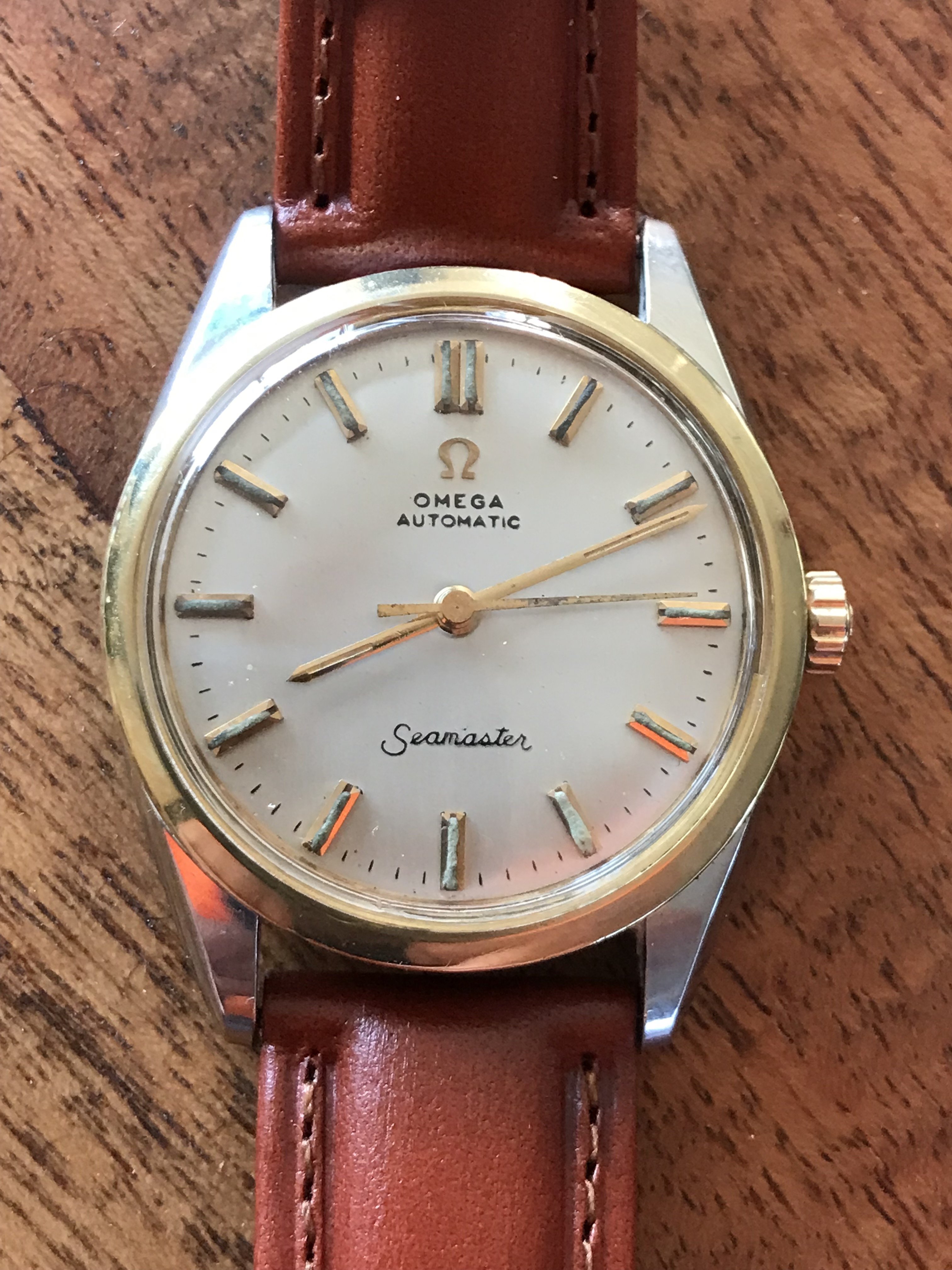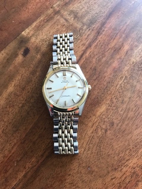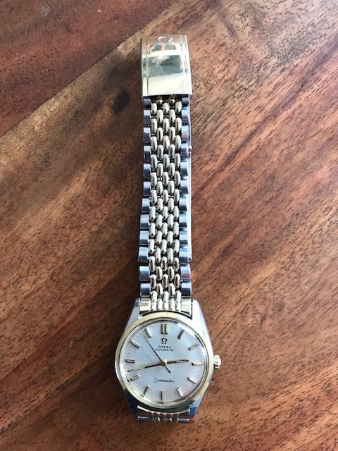 路I've had this Seamster Automatic for a number of years now and thought it was time to find out more about it. From what I can tell from my research it's a 1962 model, cal 550. It was purchased new in Washington DC. I've had it checked out by a certified Omega repair guy who said it appeared to be in good working order. I have ordered a new second sweep hand for it and remounted the original bracelet.