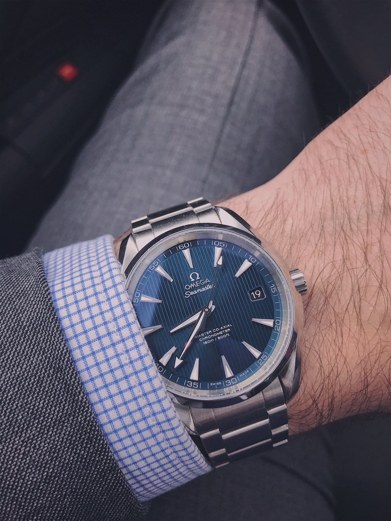Edit: I actually love the hands on the Aqua Terra. I find them amazingly easy to read, more than almost any other watch but my PO (my PO is also 45.5mm, so...) and I prefer having no date window as it makes the date easier to read.