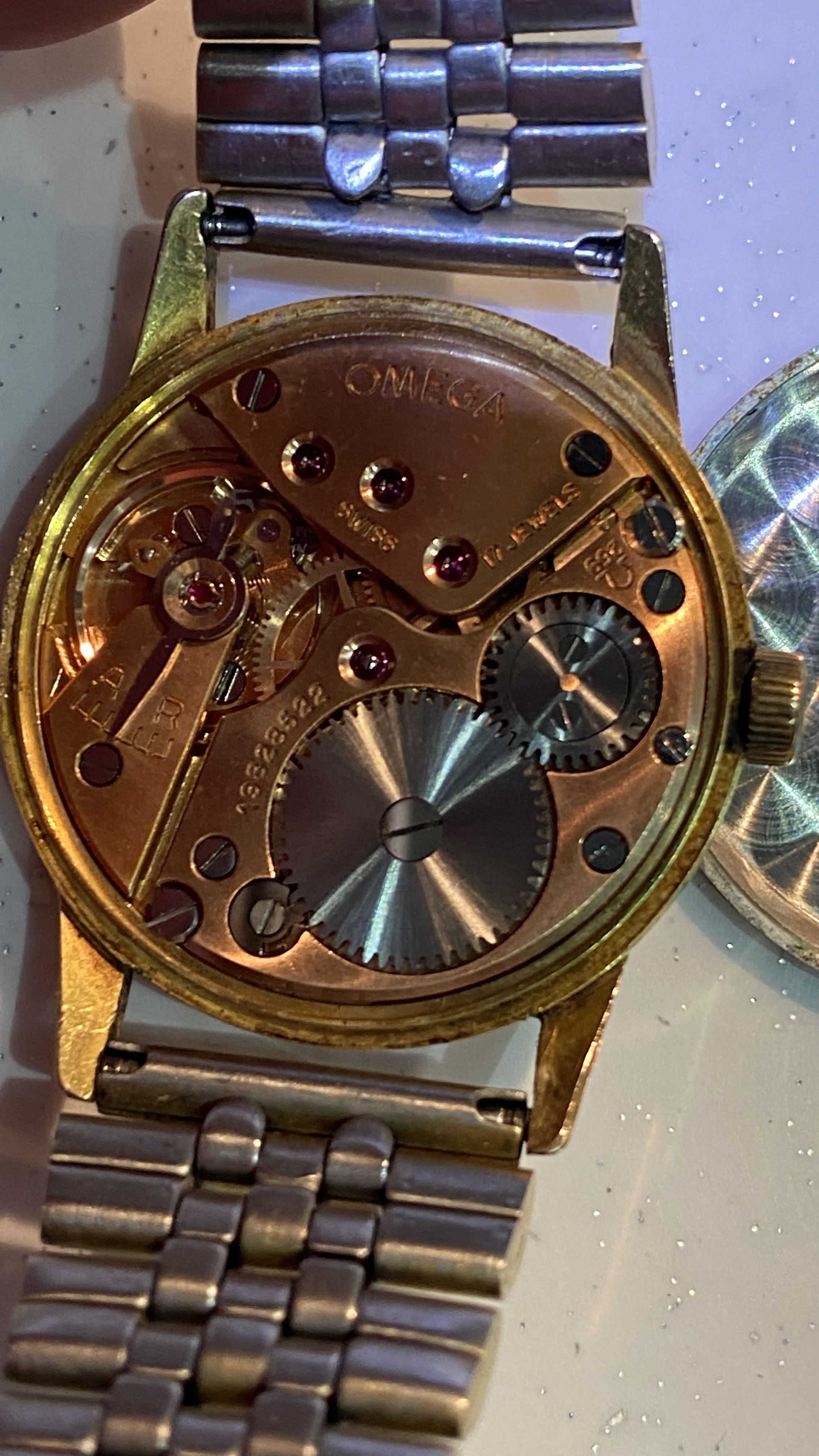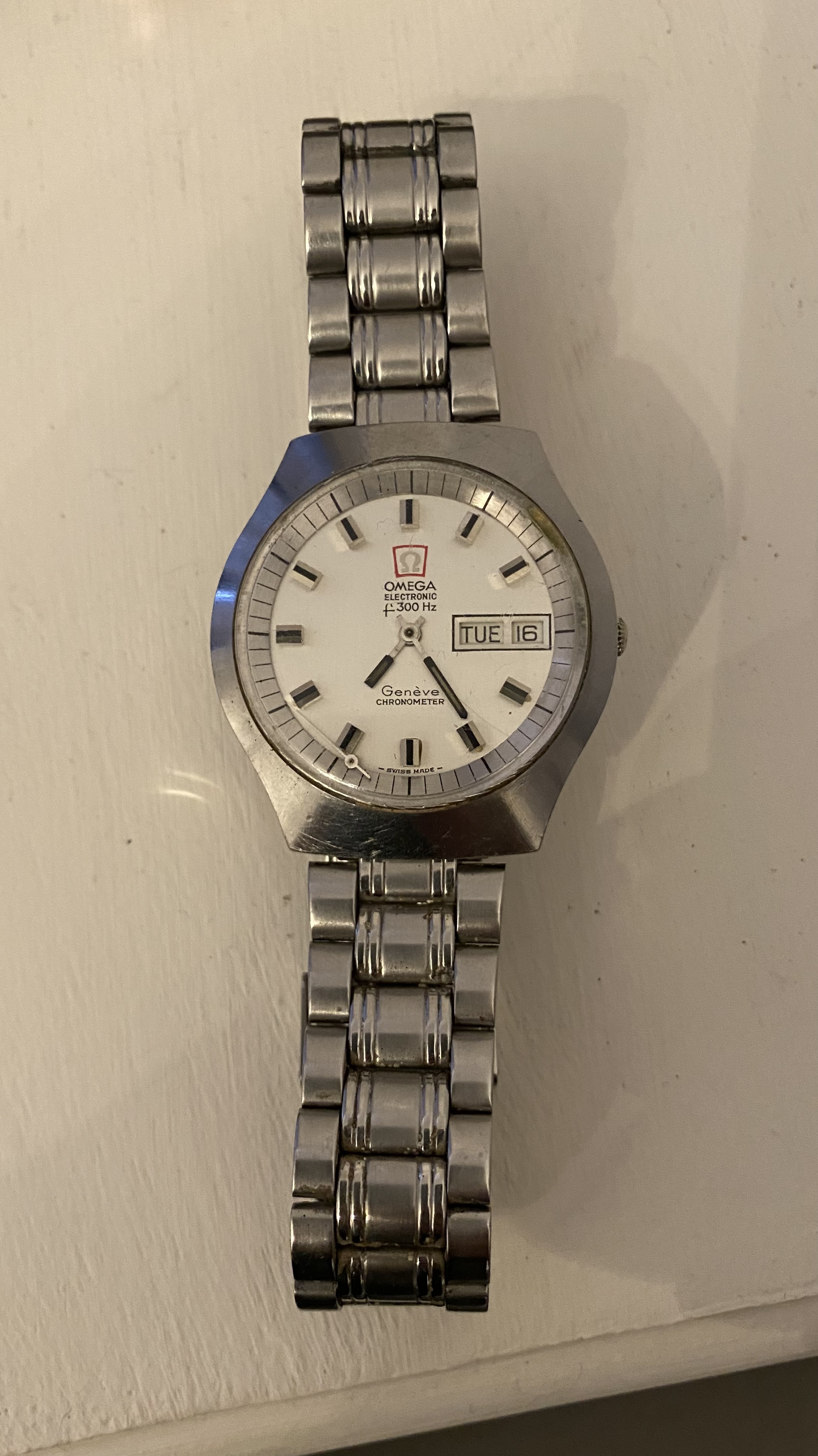 ·So I’ve recently inherited some old Omega watches that I’d like info on, i will attach a few pictures, I have tested them all for the last 2 months been switching wearing them. The pan dial one is perfectly running and on a 24 hour timer it ran approx 2 mins fast, the old looking gold/plate? watch was the same in fact I think it didn’t even loose a second when comparing to my digital timer ! The electric f300 hz was not alive until I realised it was battery operated lol, and now is my daily wear as I think it’s a lovely retro looking watch but it’s second hand has popped off, I will probably send it to a guy I found for a service anyways!