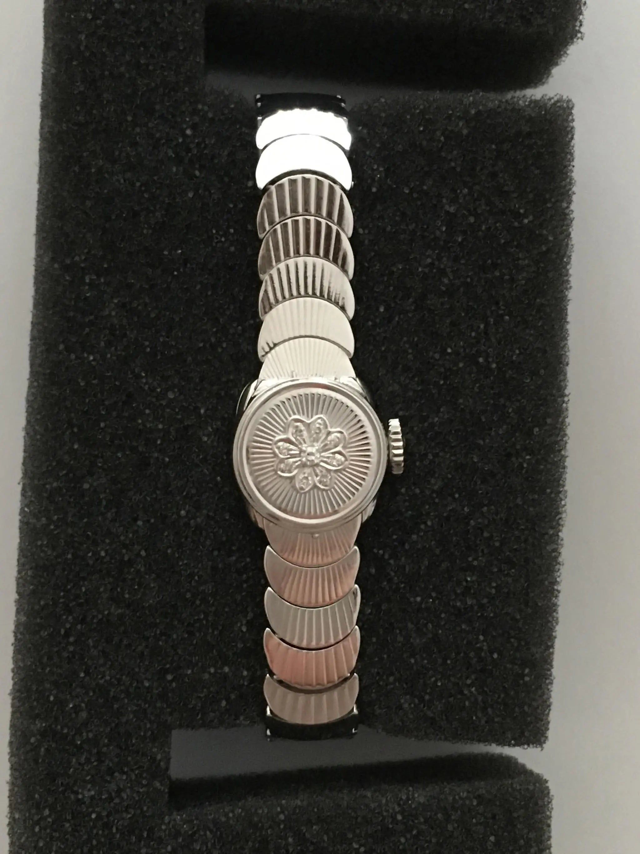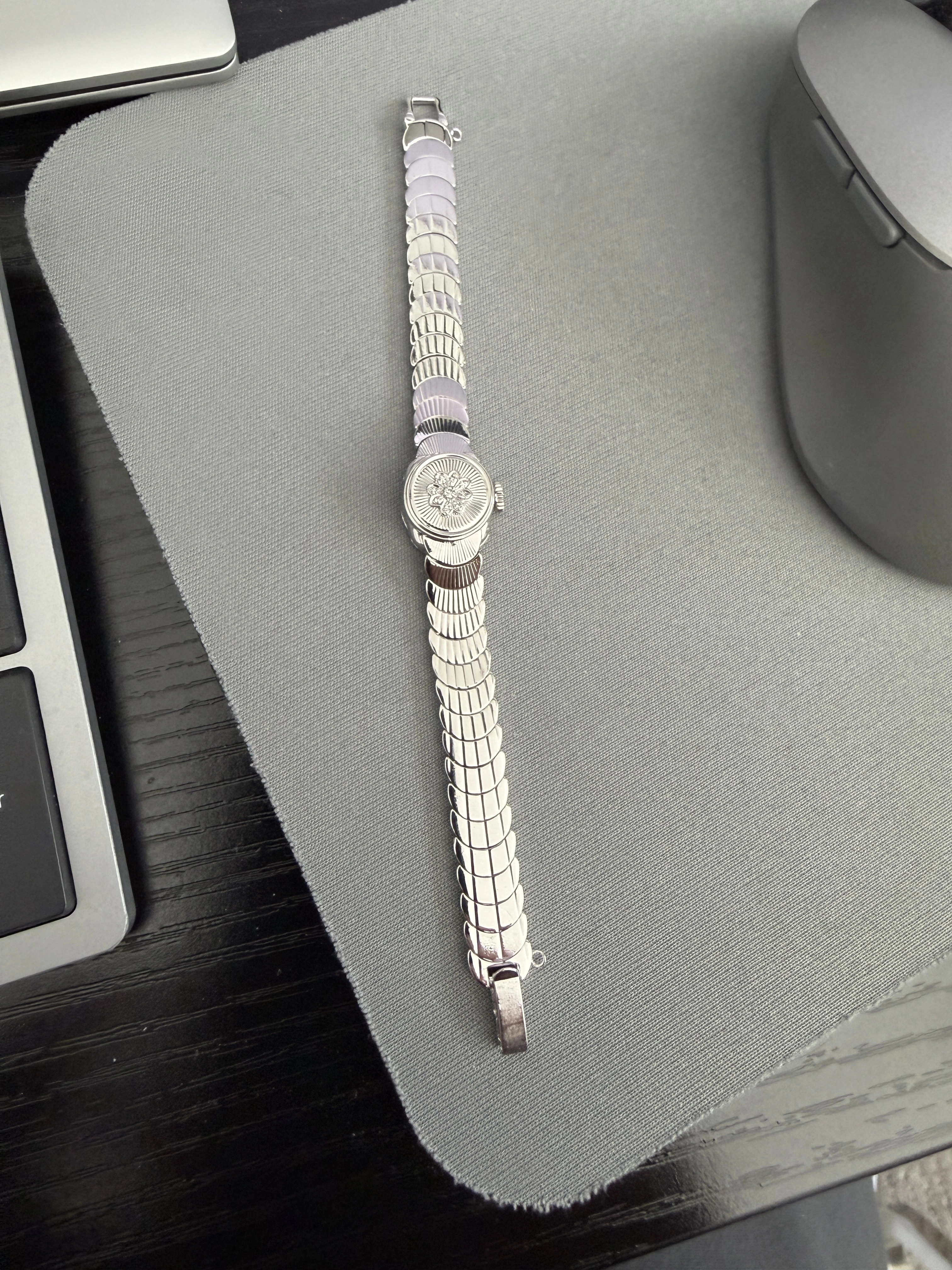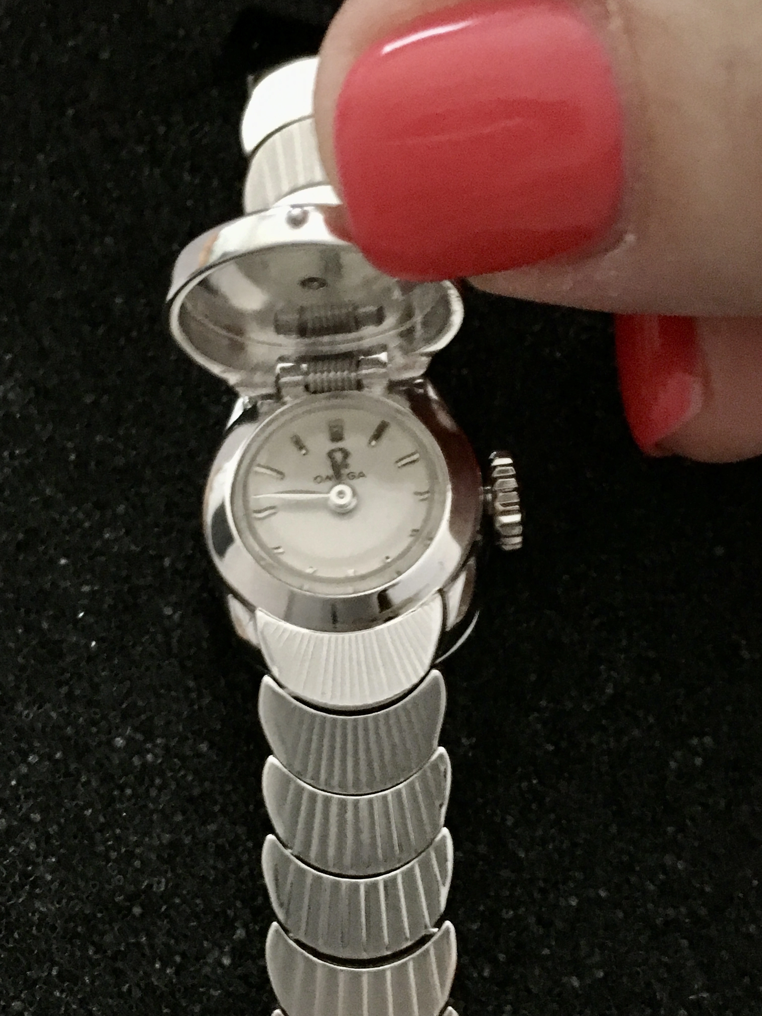 Omega and gold. 40% - 50% over scrap gold value. Scalloped bracelet, hidden dial. Nice jewellery piece