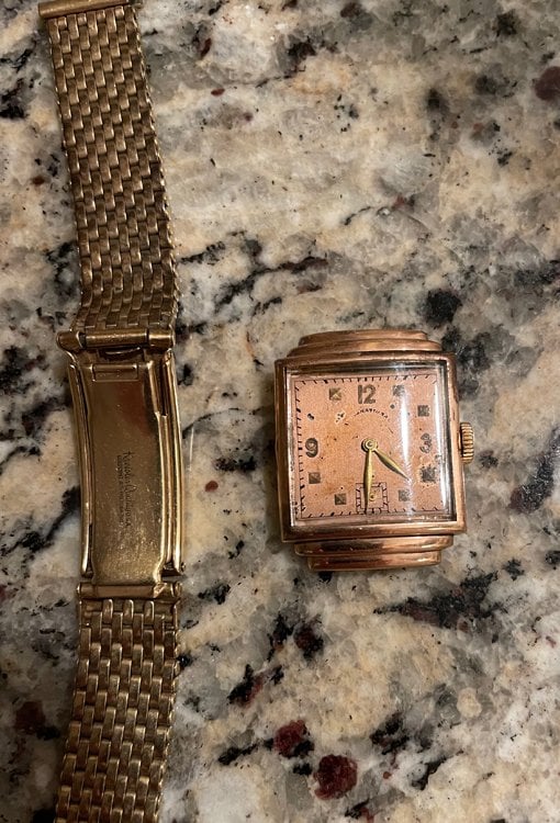 ·This old watch has deep sentimental value as it belonged to my Grandfather. This watch was worn through most of his adult life, and as you can see it shows. I am planning on getting it serviced this year and want to get a new watch band (thinking leather) for it as the Kreisler band he had it on wont even get past my hand. It has an old International Watch movement, but cased in the US. Its obviously had some work done, as the 4 o'clock marker is not original. Wish I could find a matching maker for the 10 o'clock position, but I know its unlikely. It has a small lug to lug (16mm I believe) and I would like to find something that does not make the watch look too much like a ladies model (no offense meant to the ladies).