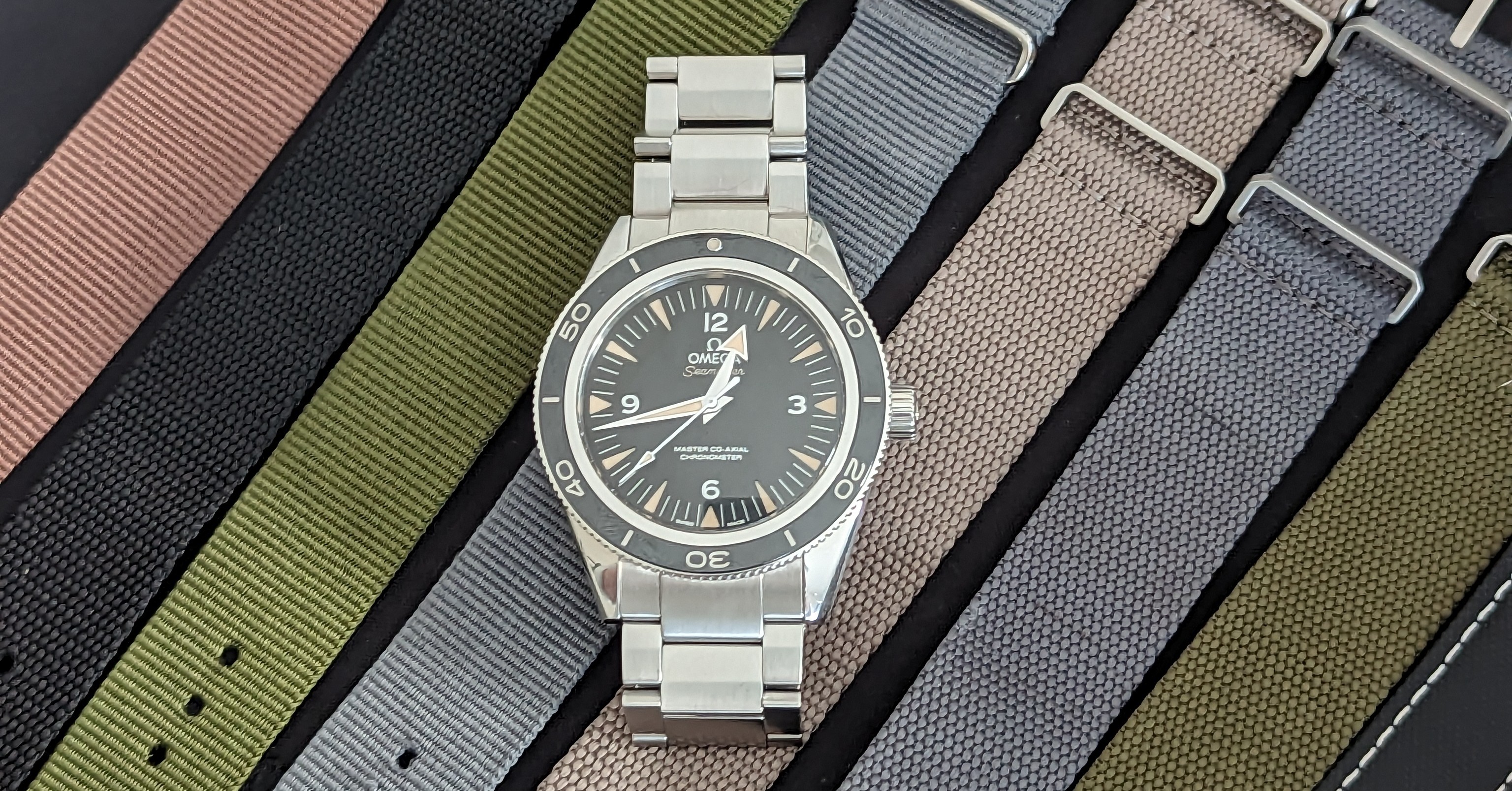 I'm looking for additional, higher-quality strap options that somewhat mimic the feel and quality of the Omega OEM nato strap. I've got a black 22mm nato I tried the watch on and it looks fantastic on just a plain black nato, but it's a strap I picked up for a Citizen on a whim and hance't used because it is ridiculously uncomfortable to wear for more than a day. I prefer single pass, or modifying NATO straps to single pass (and I strongly hesitate to do that to the 007 strap).