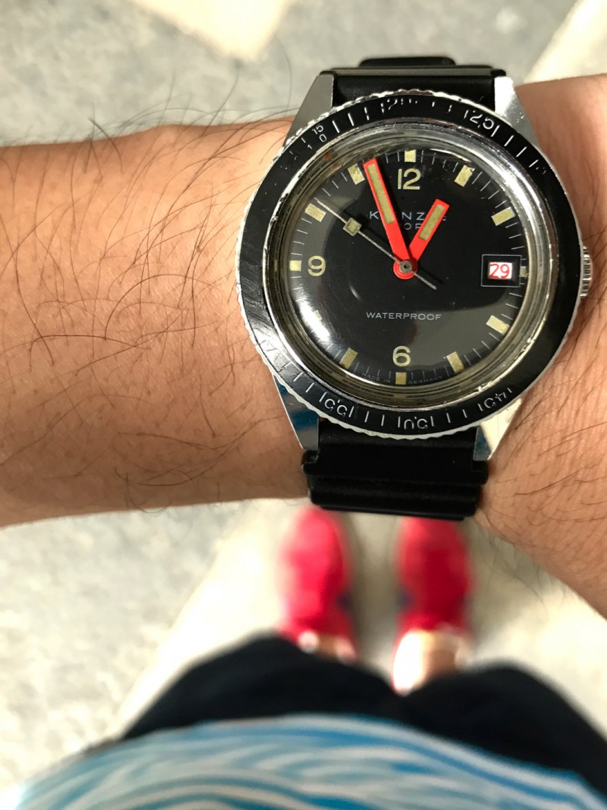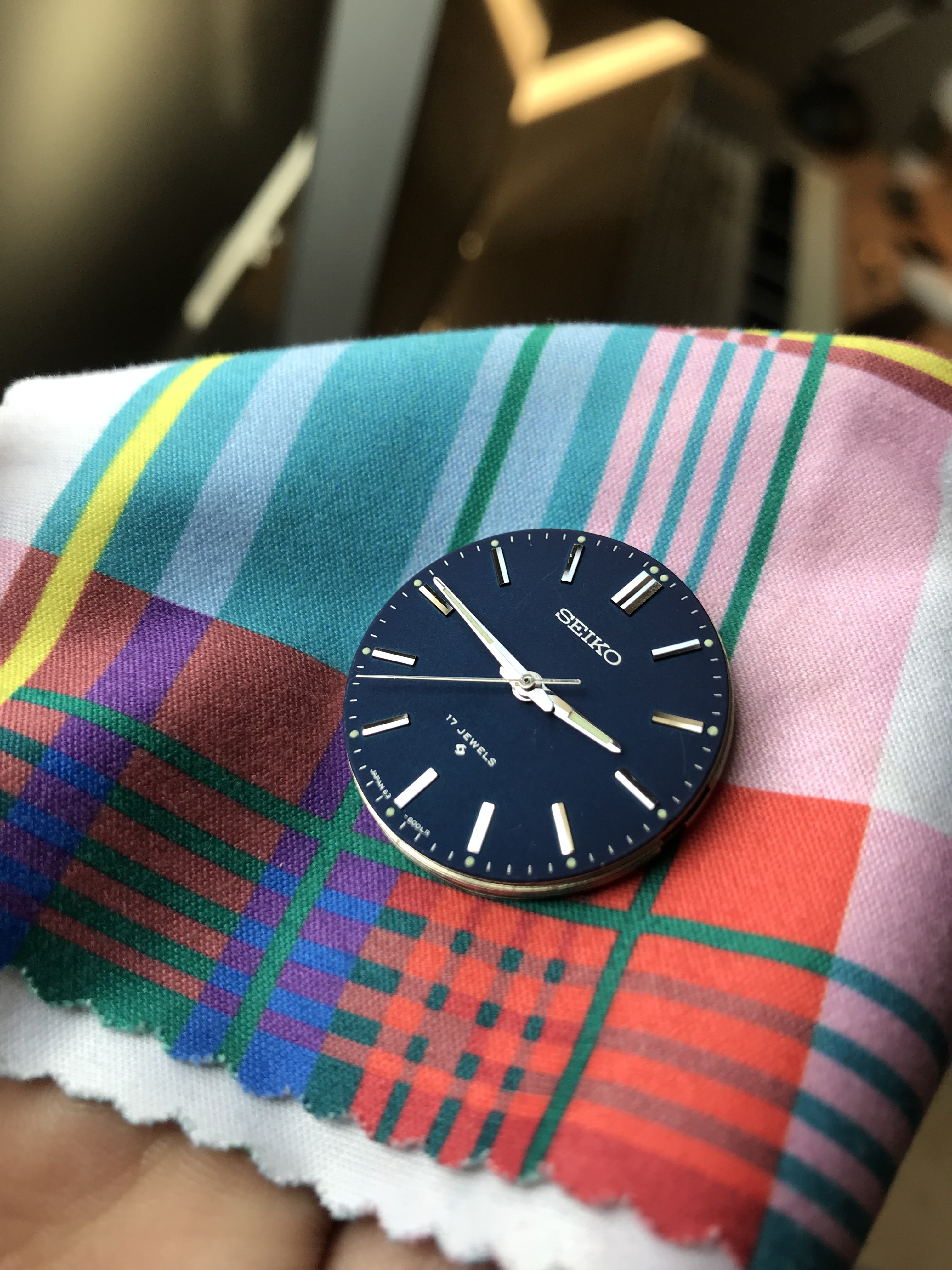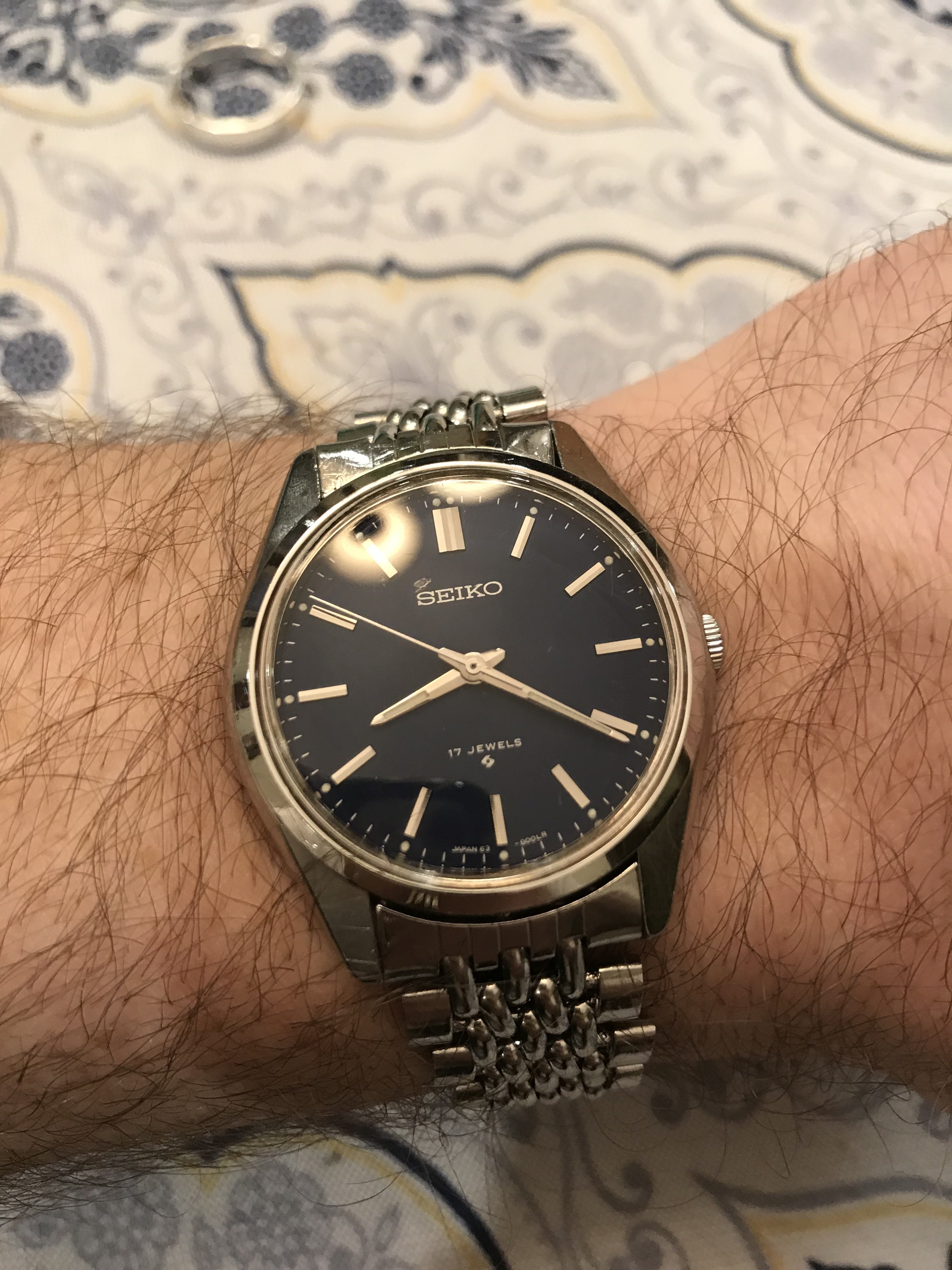 Found it! Seiko 6003-8009 Matte Blue Dial, original unsized Seiko beads of rice in pretty damn good condition! Not perfect, but only cost me $45 locally. Polished the crystal with 600 and 1000 grit sandpaper, then a fine auto polish. Quick run of the case and bracelet through the ultrasonic cleaner and bingo! Perfect beater. 38mm and thin. Hand winder! Looks mint.