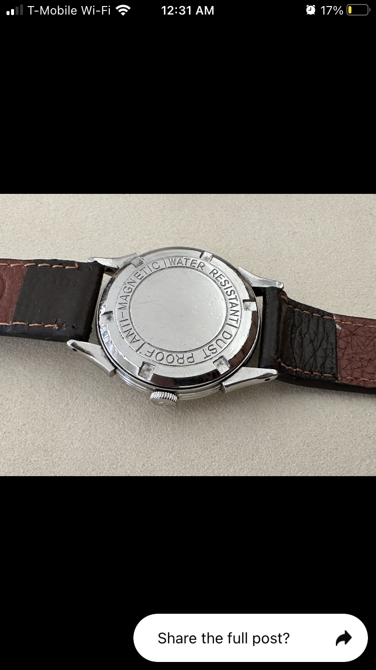 ·Came across this 1952 420 recently, and while I’m intrigued, I’m curious what a more trained eye thinks about this piece. As far as I can tell the movement is solid (https://imgur.com/duSdNhK). Obviously the case back is not original, but I’m wondering about the dial/crown. Seller is asking $400. What do we think? Would love some more insight: