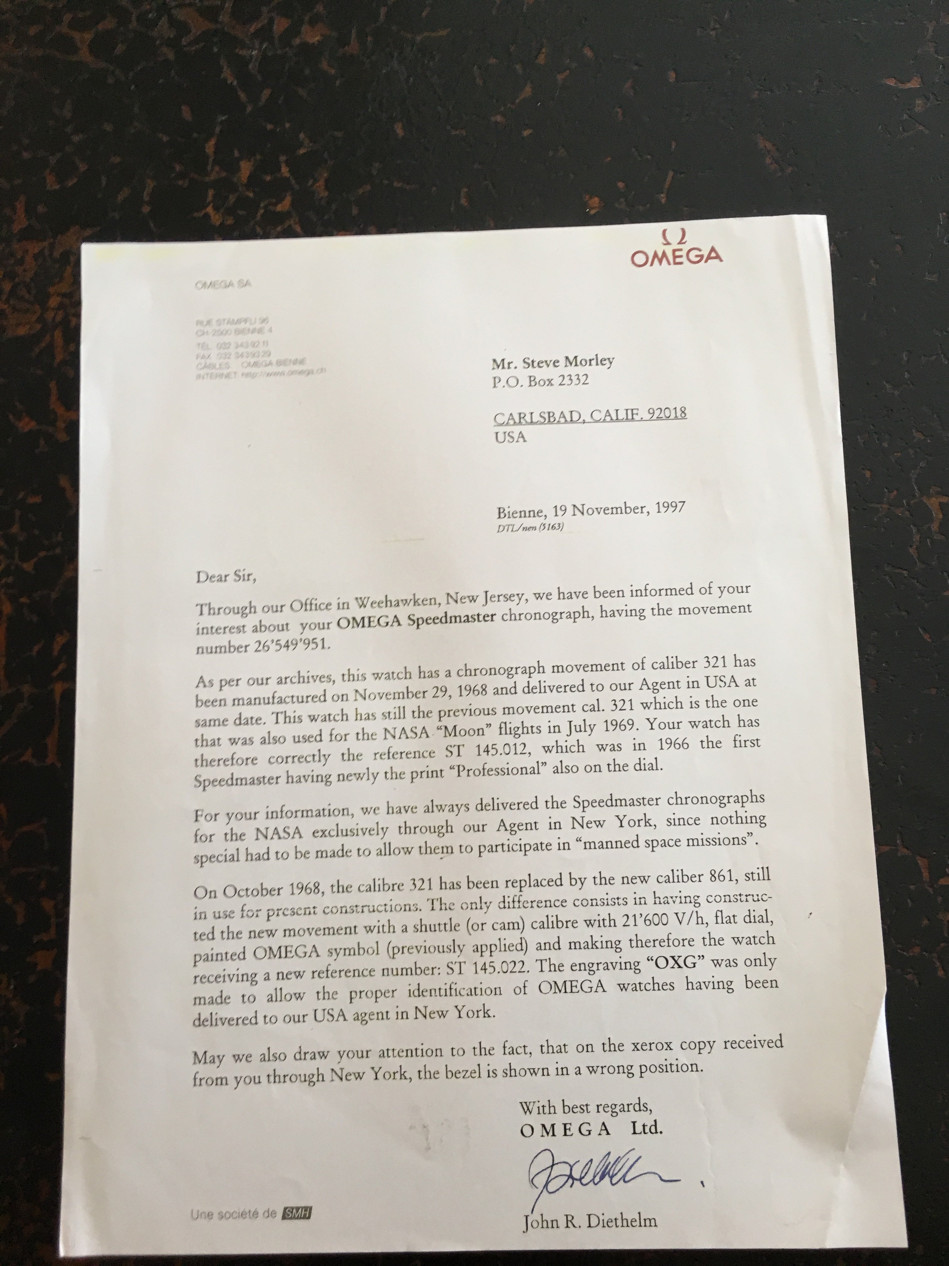 Furthermore that document actually proves your watch is not a NASA watch as it’s delivery date is way past when NASA took delivery of the watches for the Apollo missions. The delivery date of those is well documented.