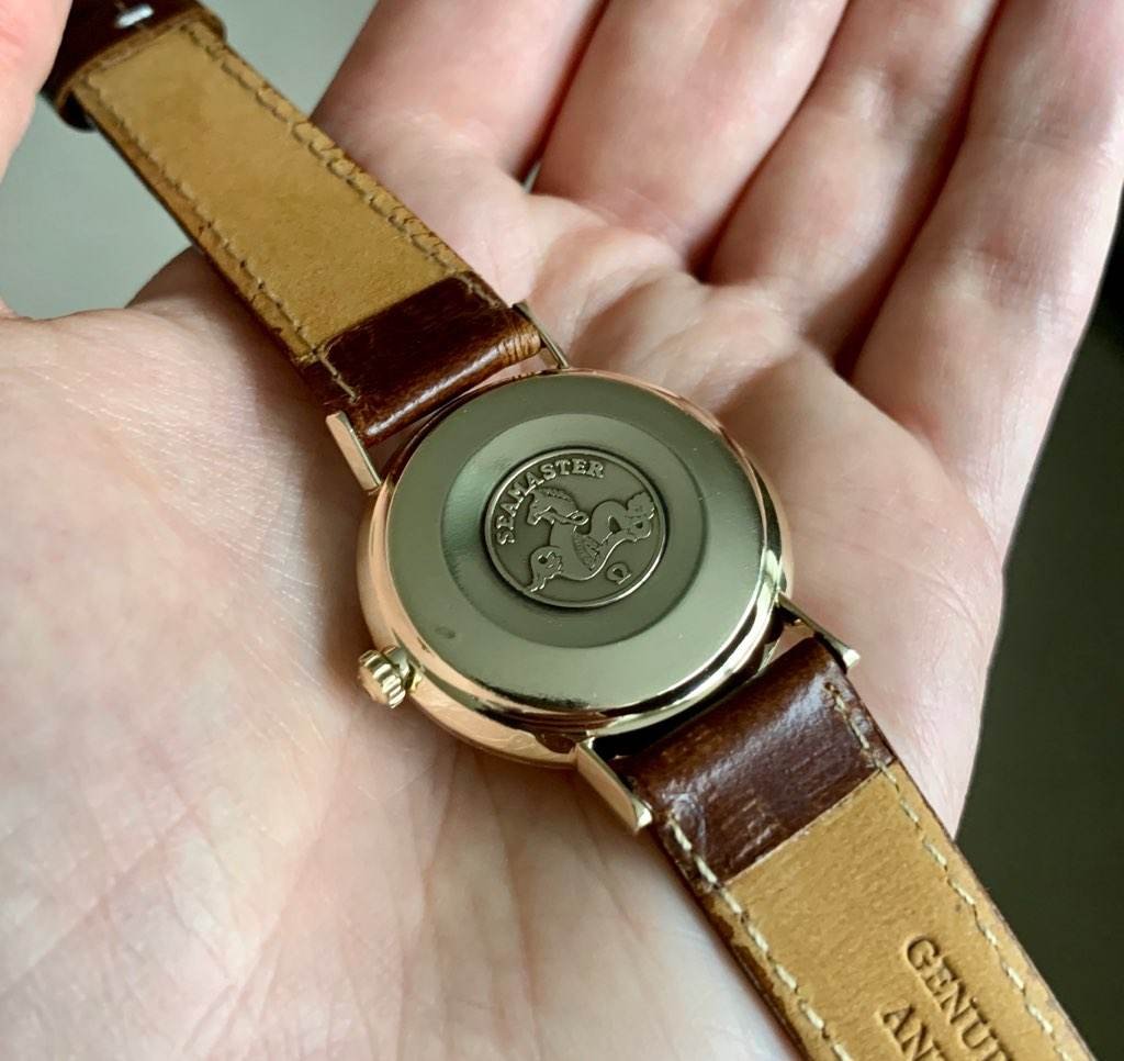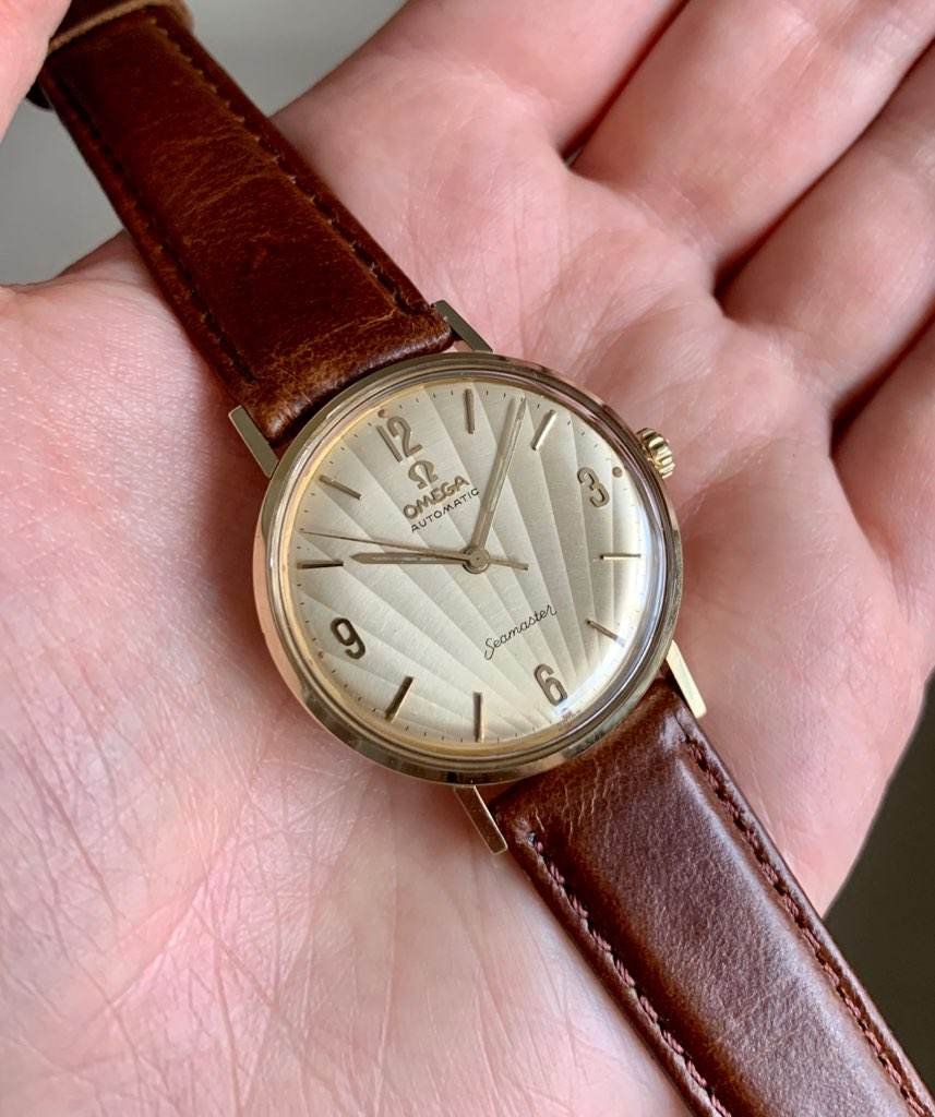 The dial on this watch is what really sets it apart from the standard Seamaster and SMD models of the 60s. The seashell effect gives the watch a very sharp and elegant appearance and really shines in natural daylight. Applied Arabic numeral hour markers at 3, 6, 9 and 12 o’clock. The absence of a date feature gives the watch a bigger appearance on the wrist.
