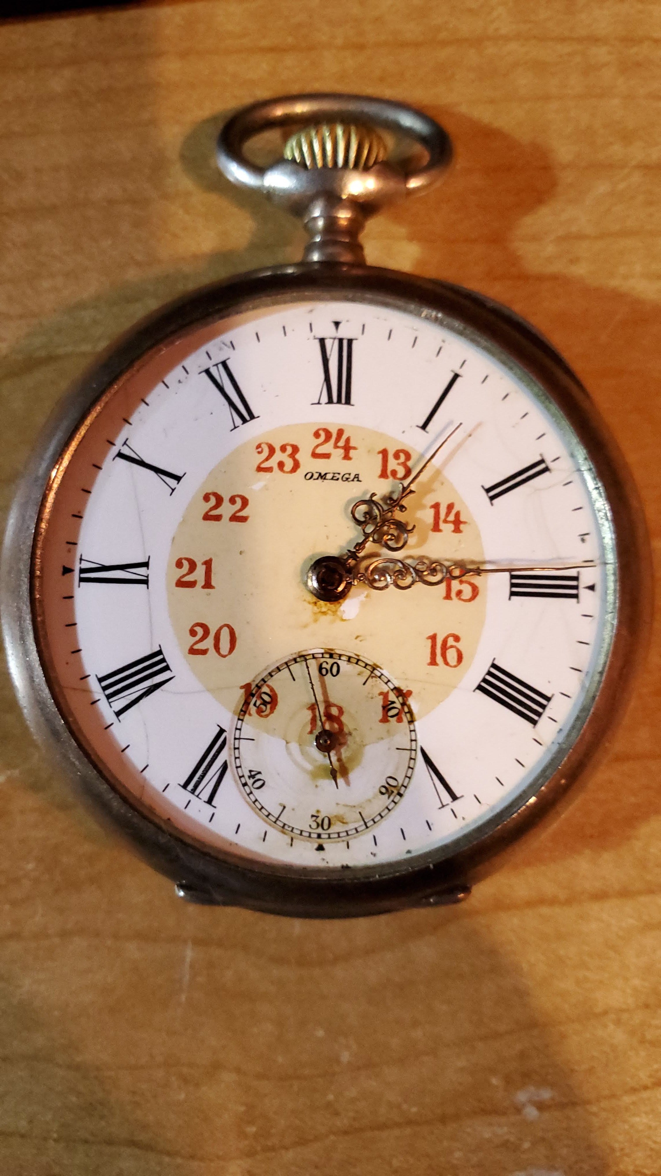 Back in 2007, while going through our Dad's estate we found a pocket watch along with his Canada Post retirement wristwatch. No one knew anything about it, where or when he acquired it. I knew it was old and it had the word Omega on the dial, but no symbol. Honestly, at the time I thought it was a fake because of how plain the movement was. But it belonged my Dad so I popped it into my sock drawer where it mostly stayed.