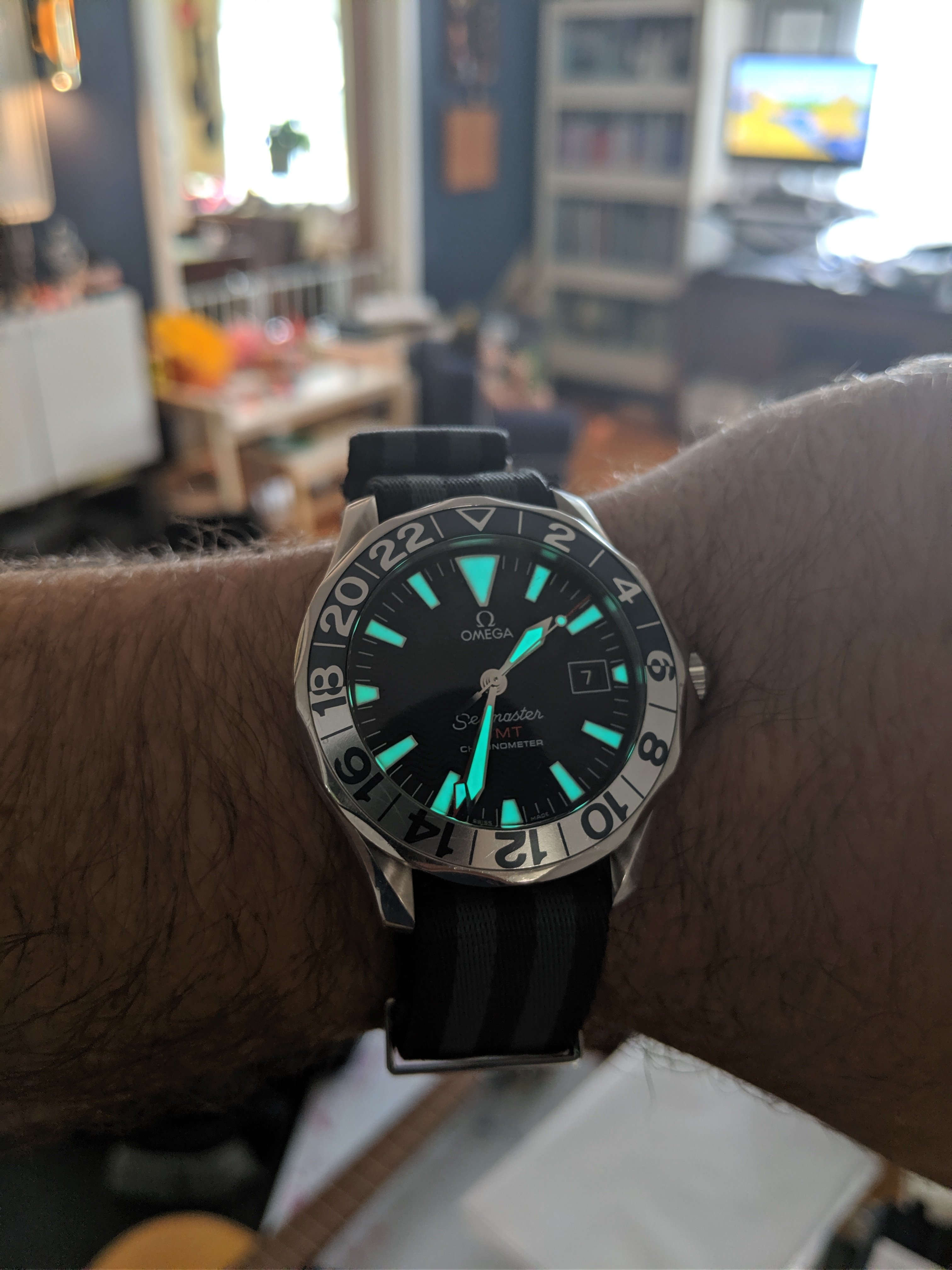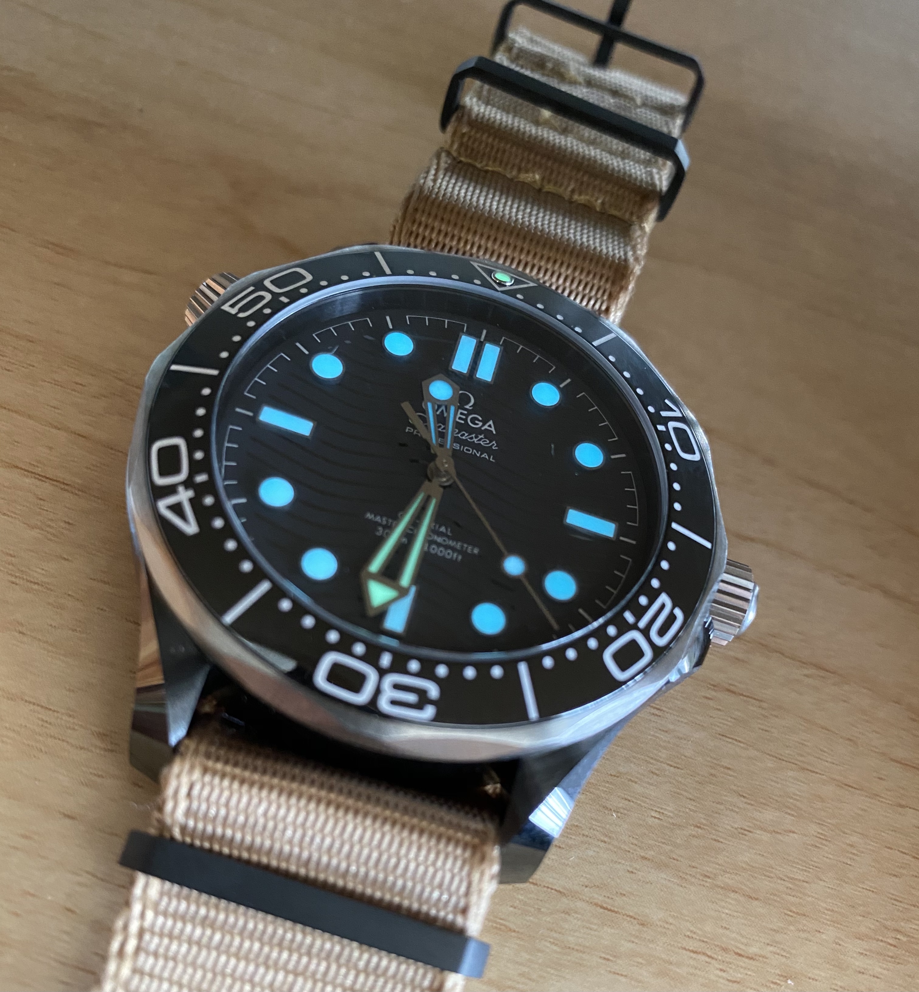 ·I'm the proud new owner of an SMP300 silver dial, but I have to say that I'm bitterly disappointed about the quality of the lume. I'm astonished that with all their attention detail and refinement of the work on such a beautiful watch that Omega would do such a crappy job on the hands and pips. Don't get me wrong - it's beautifully applied, but nearly useless.