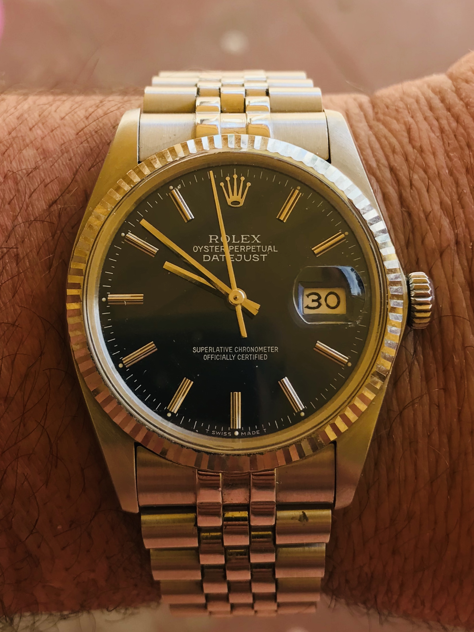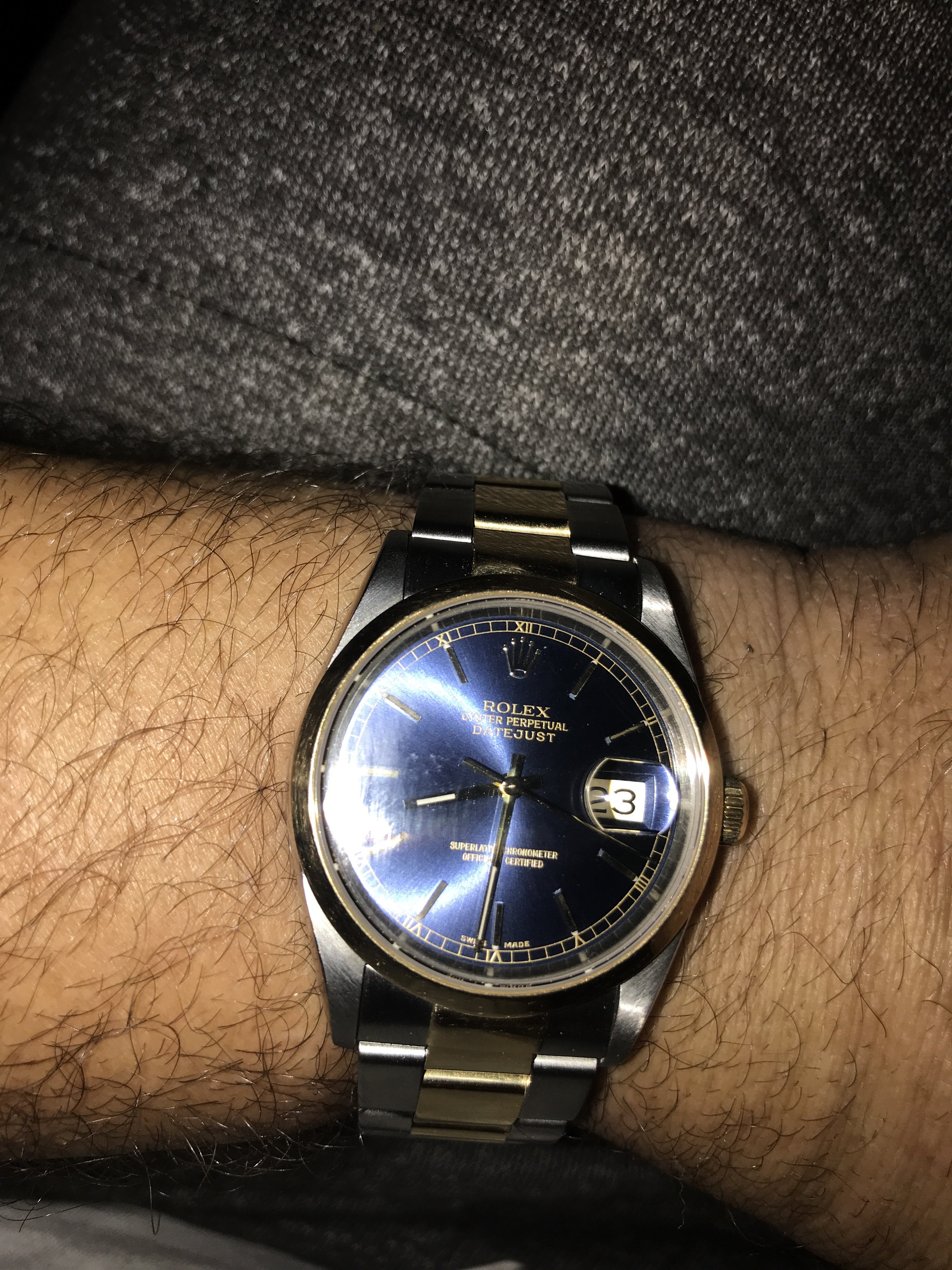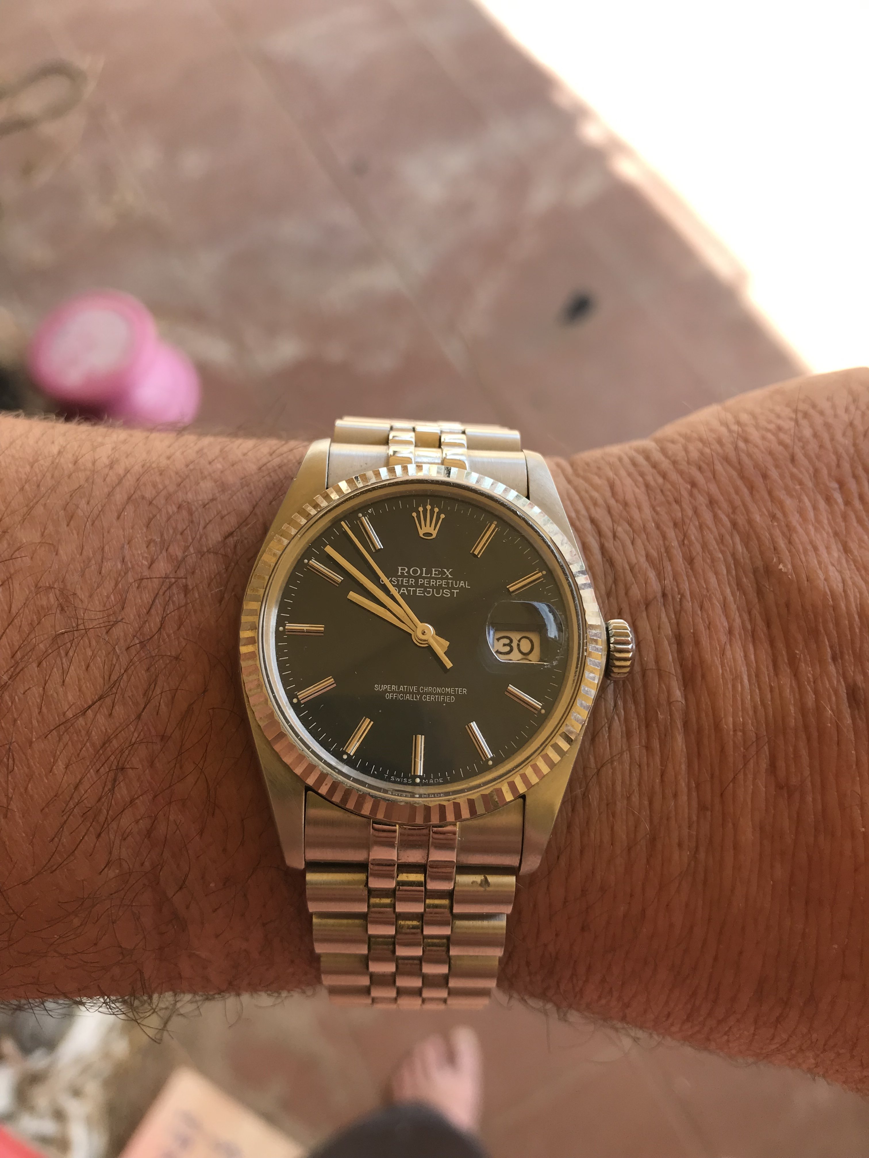 In My business my hands get wet all day so I made the call. I know I will end up getting another older 16104 or 16013 at some point. Going from ss vintage 3035 plexi etc to the 3135 with sapphire and two tone definitely is taking some getting used too. I do love it though and this is the one that spoke to me.
