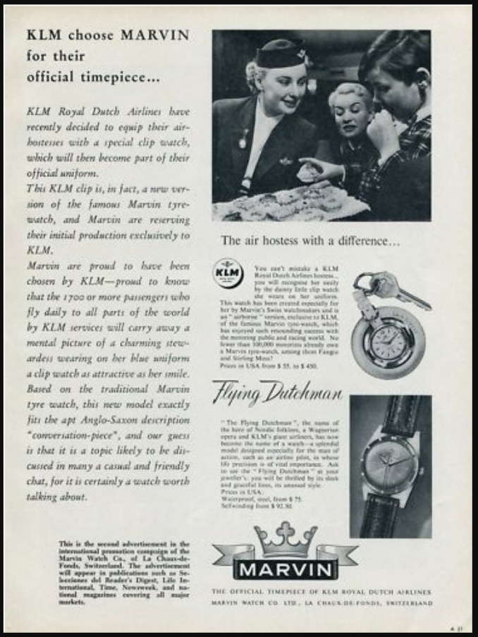 Marvin eventually went on to produce watches for Ferrari, Jaguar and KLM. Anyone who could all appreciate their attention to quality.