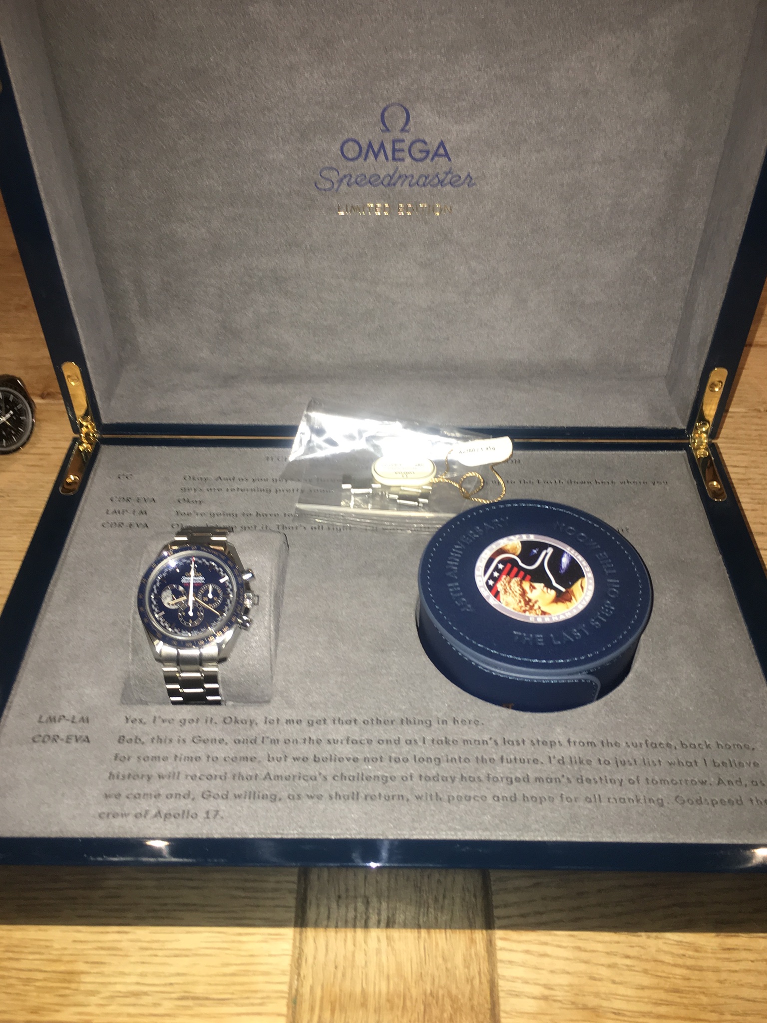 ·A memo went out to the AD's on Friday. It says there is a spelling mistake on the box. It is suppose to say "Man Kind" but says "Man King". I was told I was going to get knew boxes for both my Stainless a Gold Apollo 17 45TH Anniversary Speedmatsers. Does any one else have this mistake on there box?