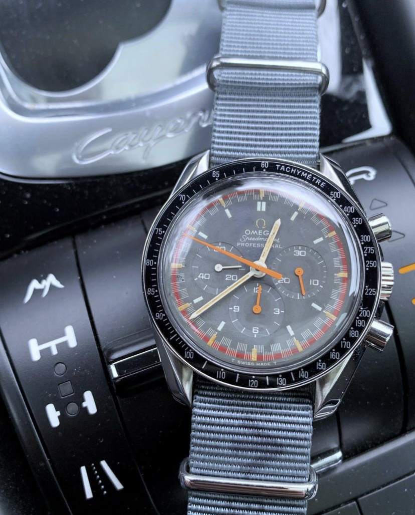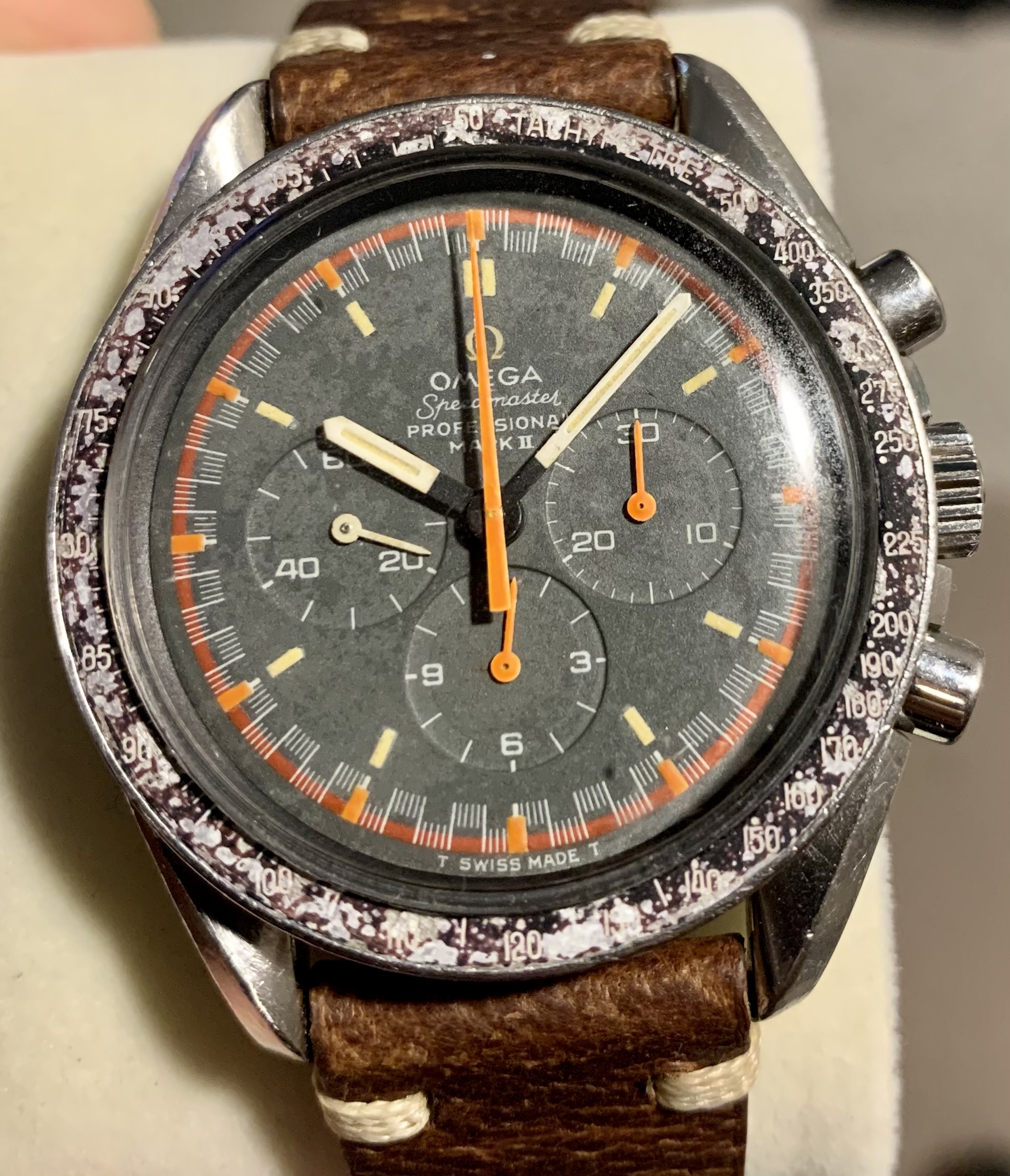 Only just seen this thread….yes that’s mine above. Good spot on the bezel. I was trying for an aged look with one I had - this is what was on originally - see pic…I just had a load of spare parts over the years sitting in drawers and brought them together for my Racing homage (and I can’t justify ever paying what is being asked for the originals )