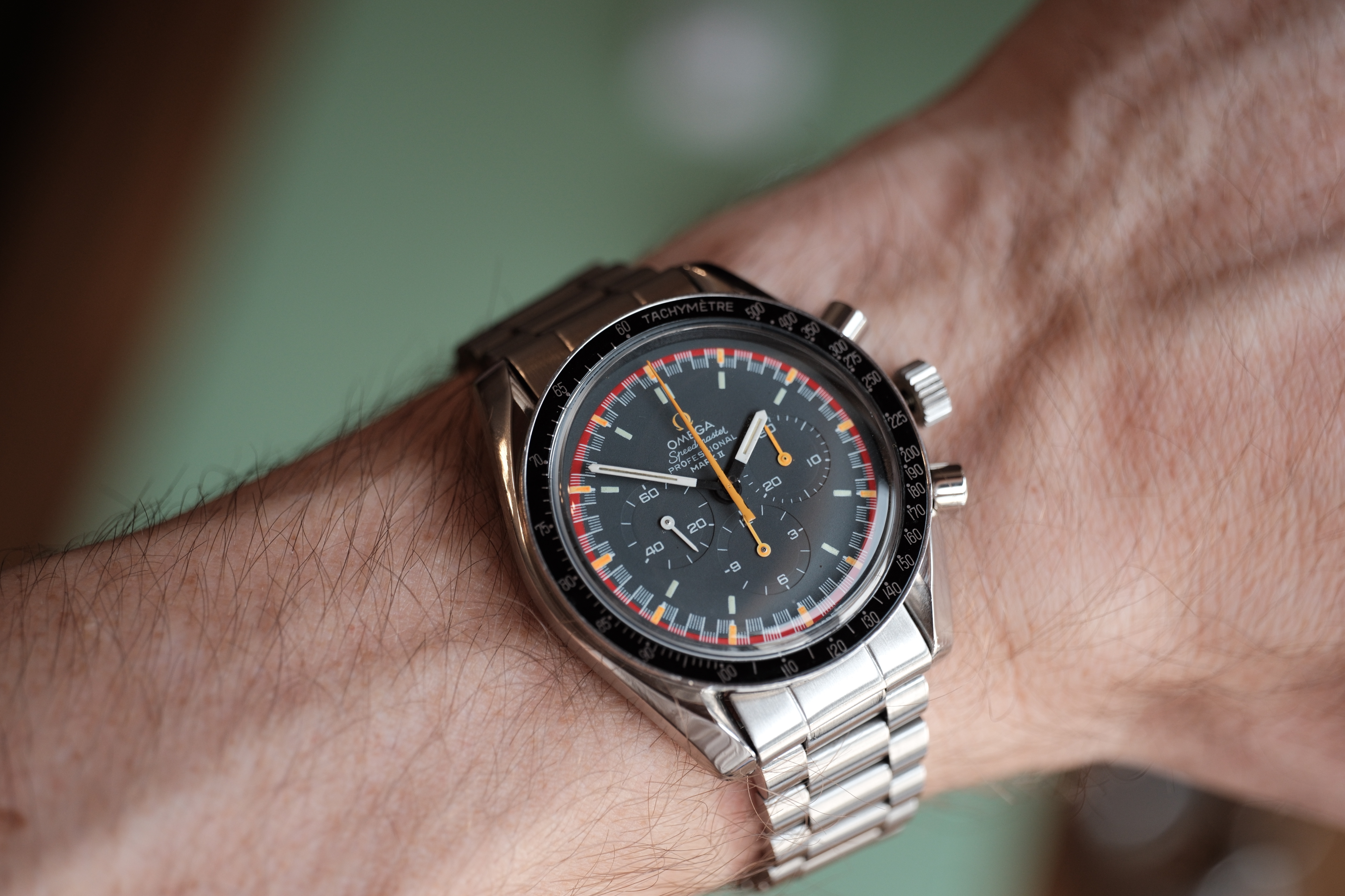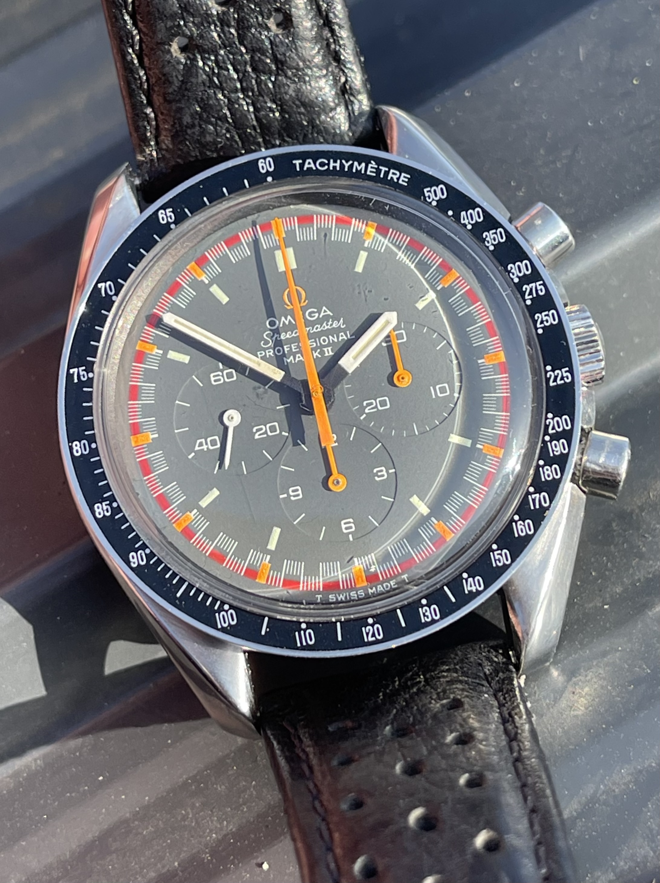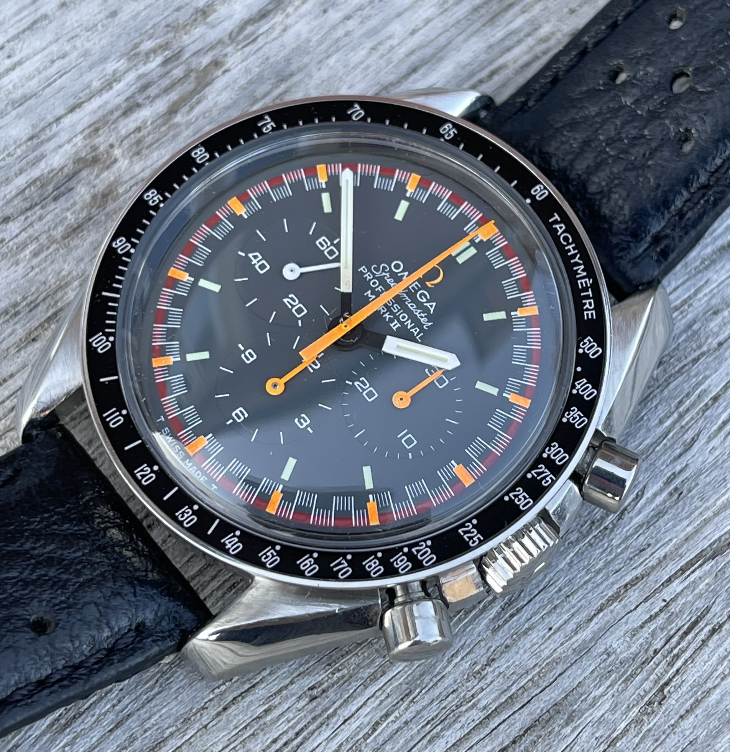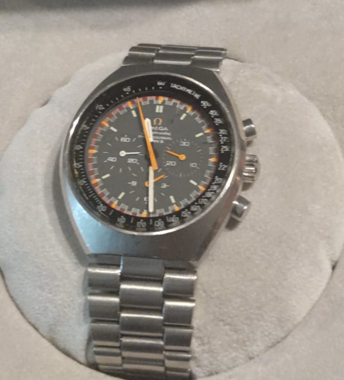 I found a Mk11 in Spain with a beaten up case (bracelet was nice though), however the dial and hands were all original and in absolutely beautiful condition, this piece had certainly had a life, but the dial and hands were just about perfect inside, ever so slight ageing, but all the original mkII’s hands were still displaying their original bright and matching orange colour, I had been looking for quite a while and usually the sweep hand and subdial hands have aged to the point of not looking so good, very rare to find when all orange hands match…. So I bought it.