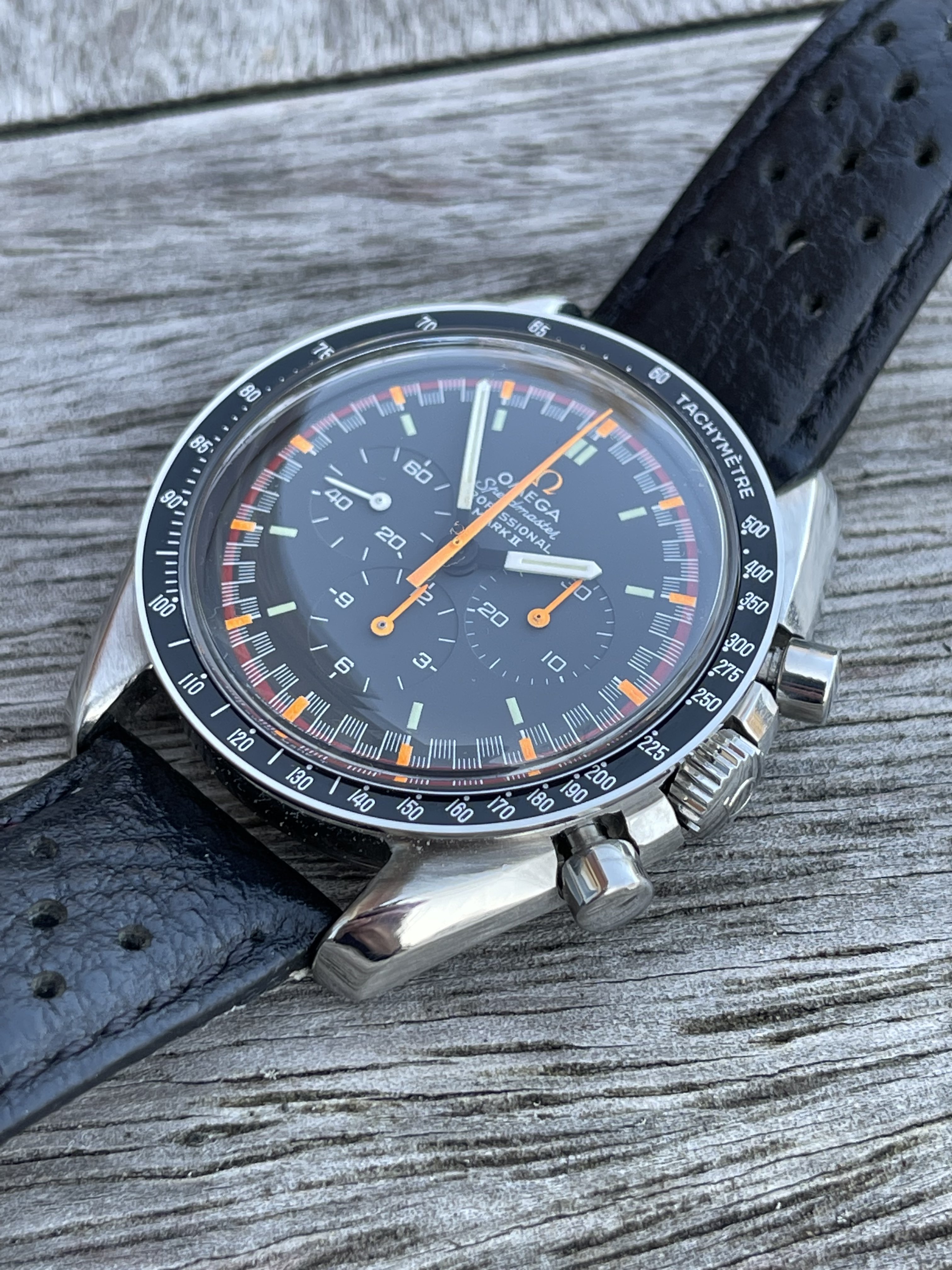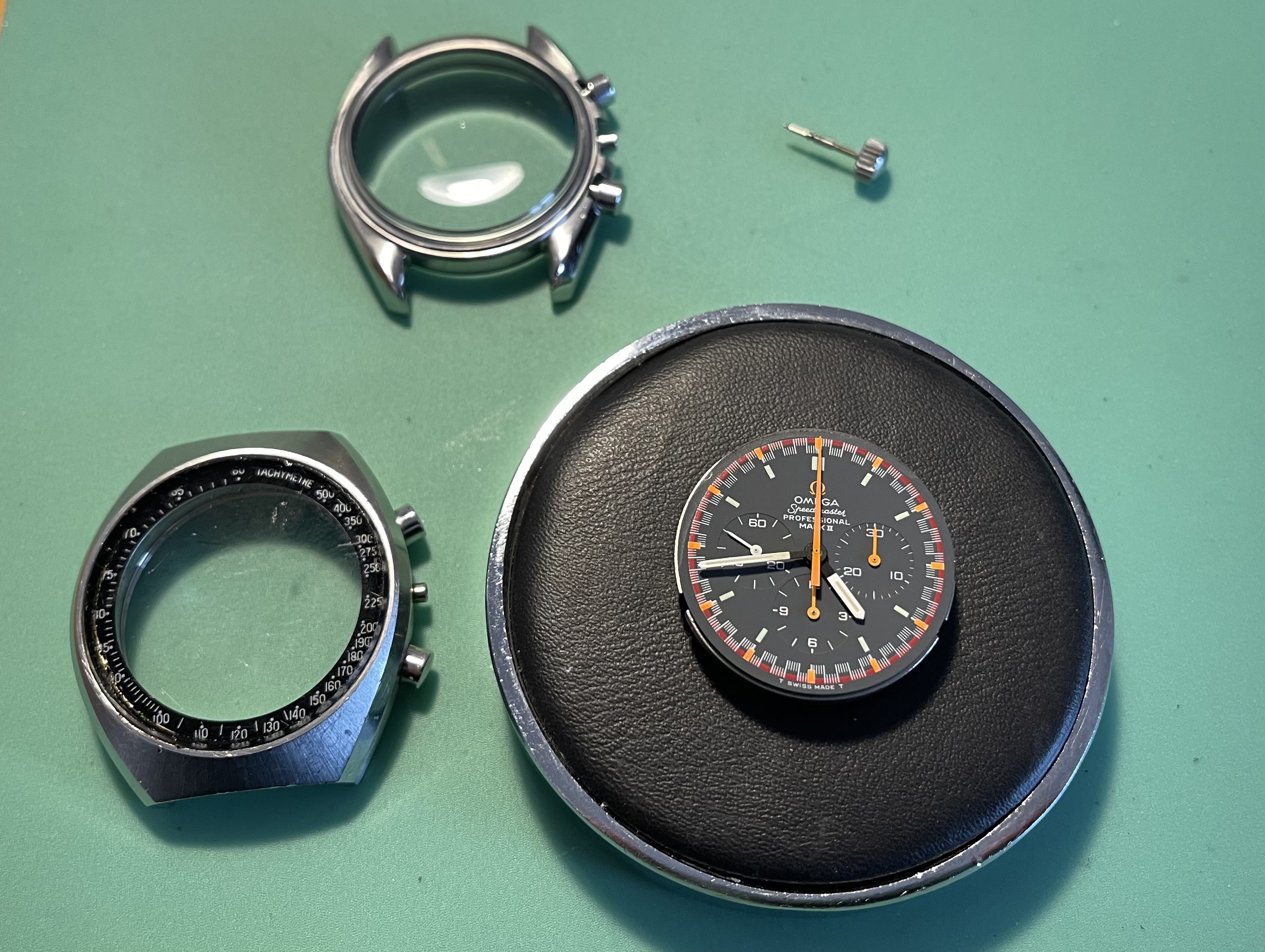 As i also just sailed on realizing the same project, very nice watch @nickuk99 !! - great result, i have learned that the rings are different for both, and not interchangable, as the ring for the Speedy Pro case also has to fit the dust cap so it has a step on the innner vertical ring were that cap is pressed on to fixate the movement. The MKII case does not have a cap but uses 2 screws + keepers to fix the movement on the inner caseband. The crown is also different, the MKII one does not reach the case side, so maybe not as WR as the crown for the Speedy Pro. Same diameter i think but thinner so to speak.