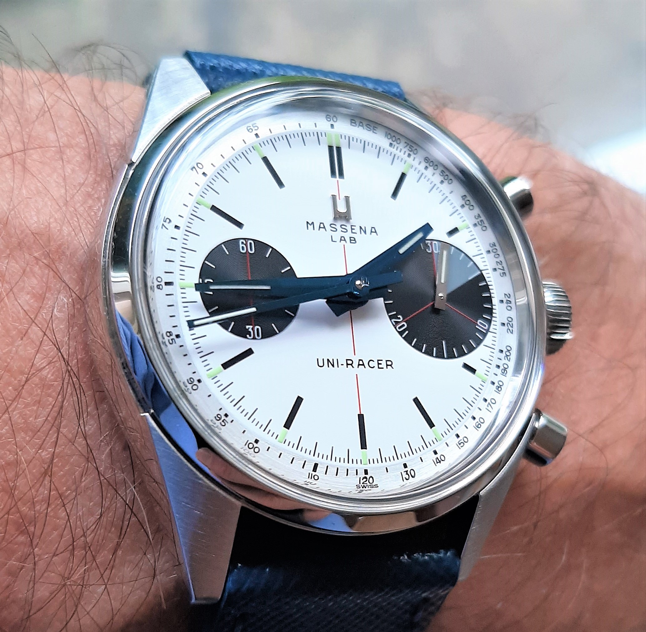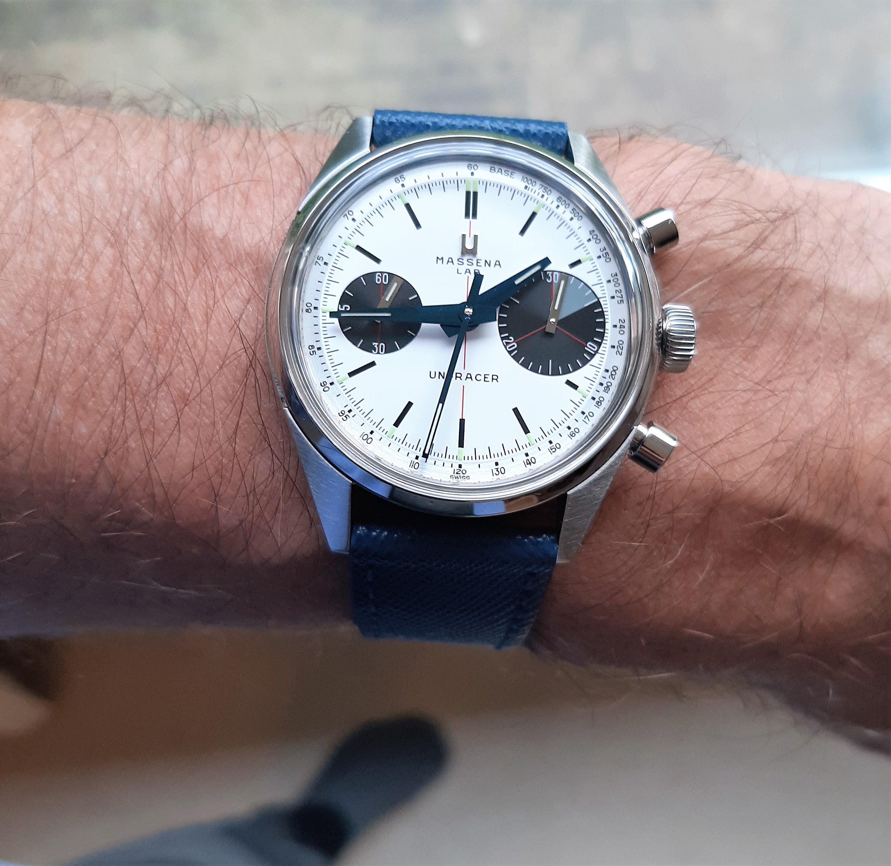I think it is an awesome watch, with very high quality finishing of the dial. and case Subtile cross hair in red on the subdials and a slightly off white luminous hour marker. The blued hands have been praised enough already ! All fits nicely on the wrist as the case is shaped to wear small but with enough heigth to give it presence. And with a solid movement serviceable by any watchmaker, and it runs fine albeit with less tactile feel on the crown than i would have preffered. A very nice addition to my rotation !