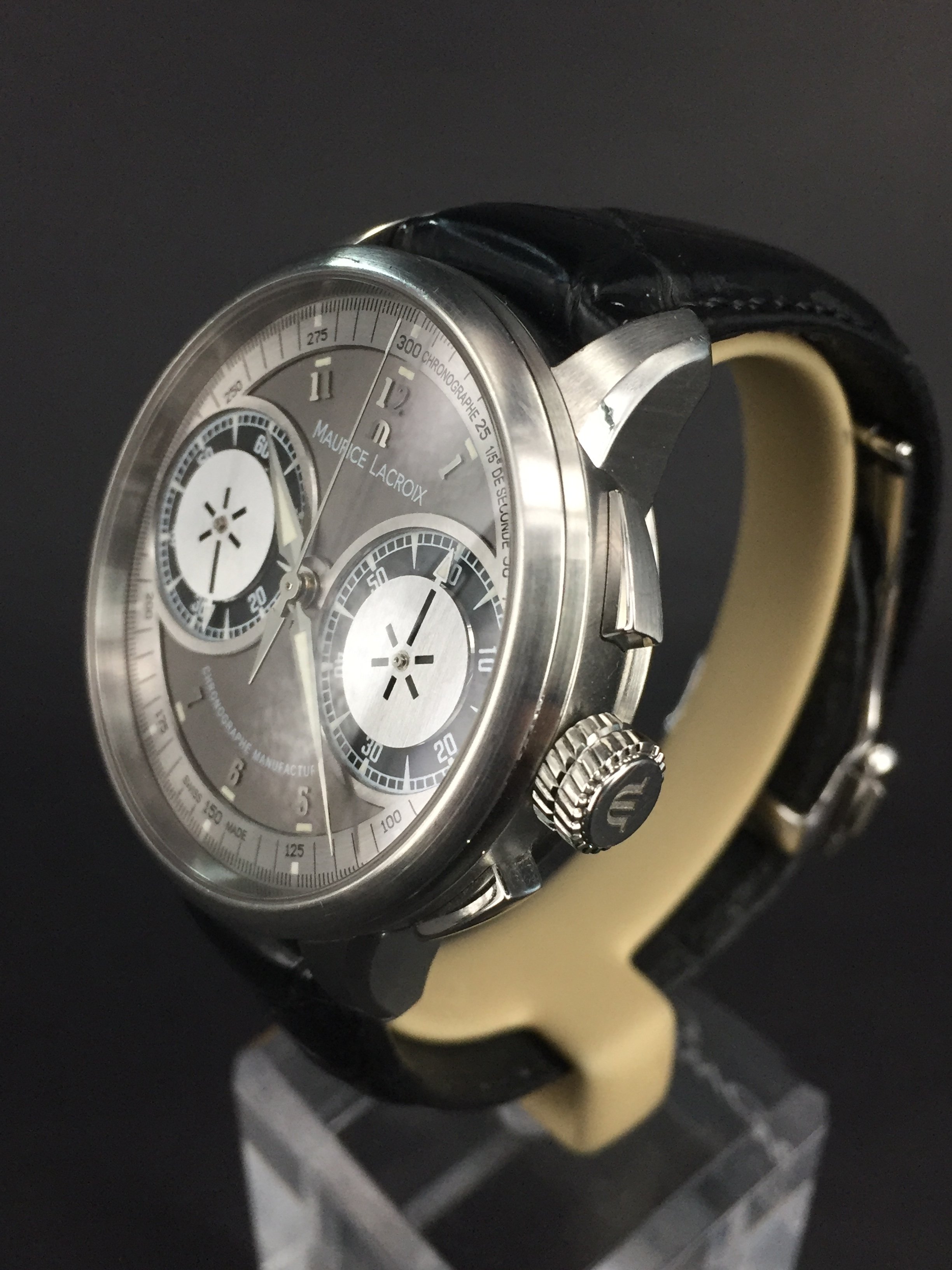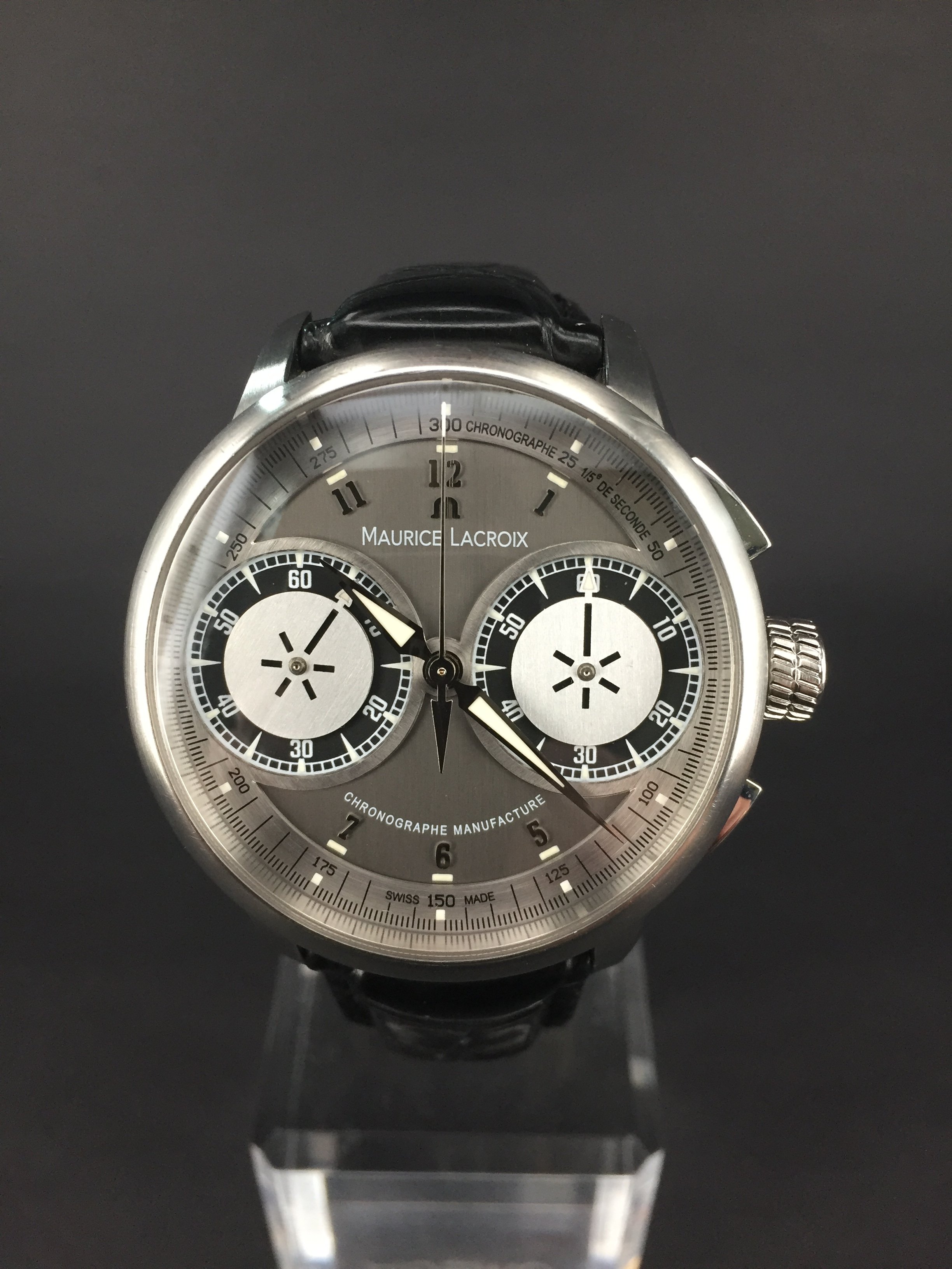 - Subdials: Two, small seconds at the 3 o'clock position, chronograph minutes counter at the 3 o'clock position