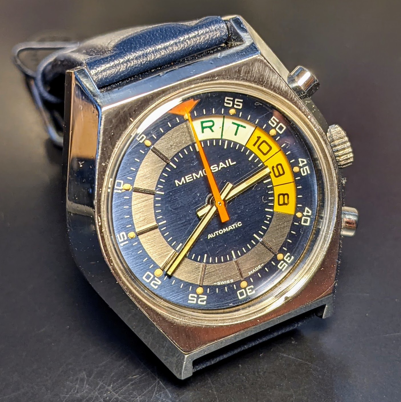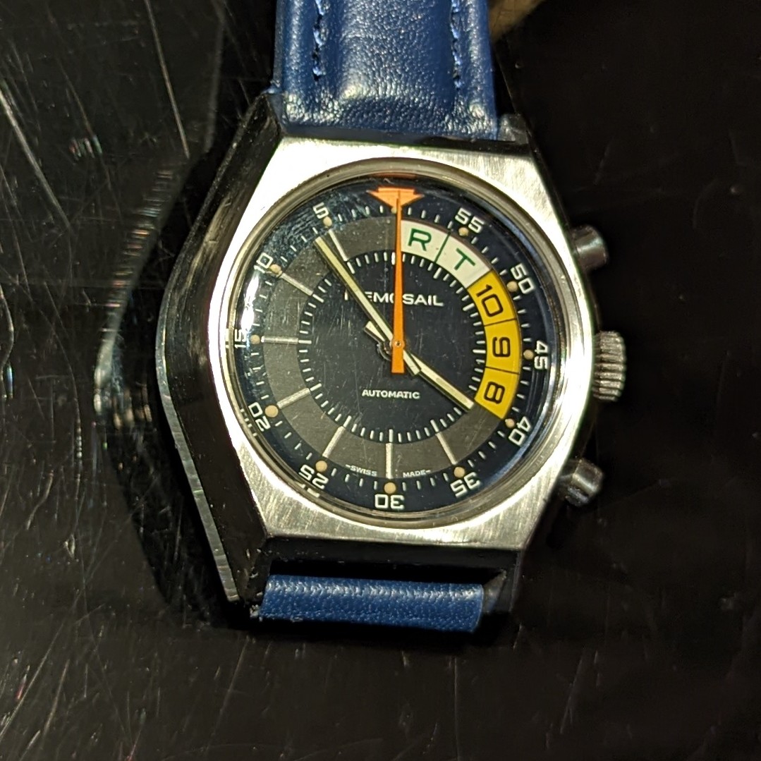 For sale is a Memosail Automatic with Valjoux 7750 It's a prototype and never was produced this way. It's hard to find information, fortunately I was able to chat with Hendrik from Heuerchrono.com (thanks 馃憤 ) and check the watch. Everything seems to be fine. One thing to mention is, the yacht timer is not resetting to Start which seems to be a know topic with these prototypes. Maybe that's - besides the Quartz crisis at this time - one reason why it did not reach mass production. My watchmaker said it should be possible to adjust, but I never handed over the watch to him.