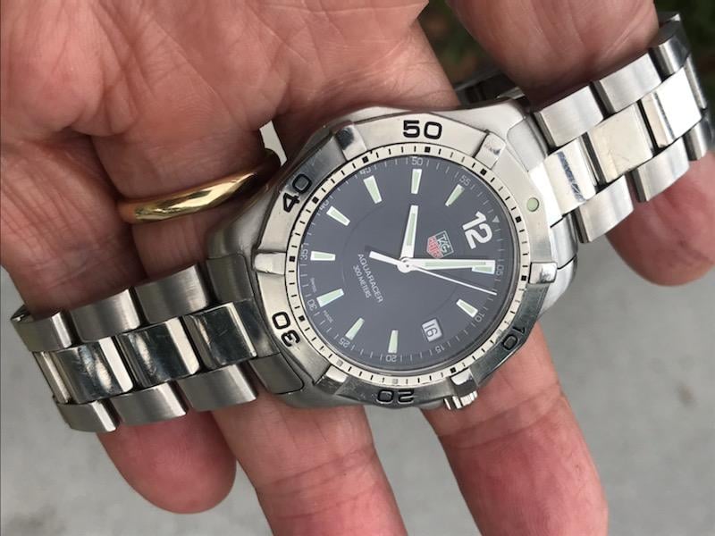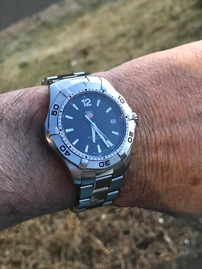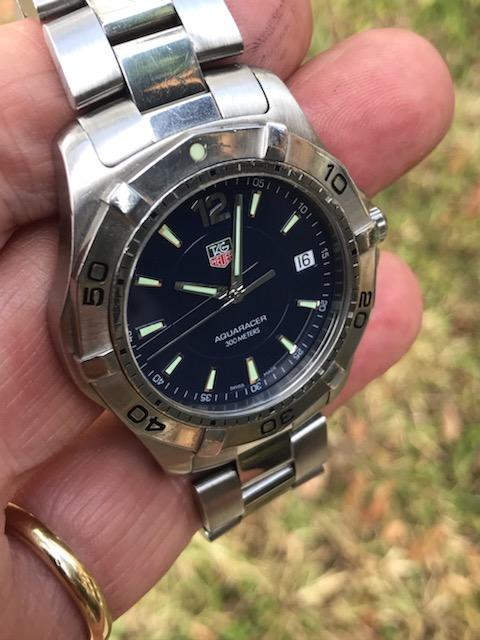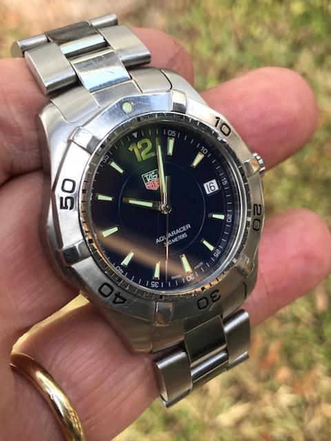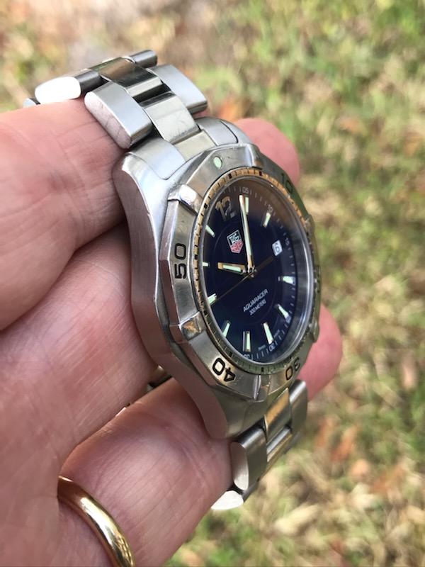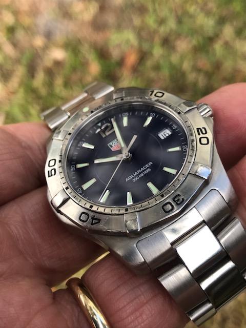 This hot rod has a gorgeous deep blue dial, quartz movement with new seals and battery, and is ready for action! Another super nice condition sports watch we got in a package deal for small money and are passing these savings on to our forum pals. We are still trying to move along watches we will never get the time to wear, and this is one of the better Tag divers we have come across. Nice solid one-way rotating bezel, screw down crown and dive extension on the original bracelet. The bracelet is sized for a small wrist but we are including original extra links to fit larger wrists.
