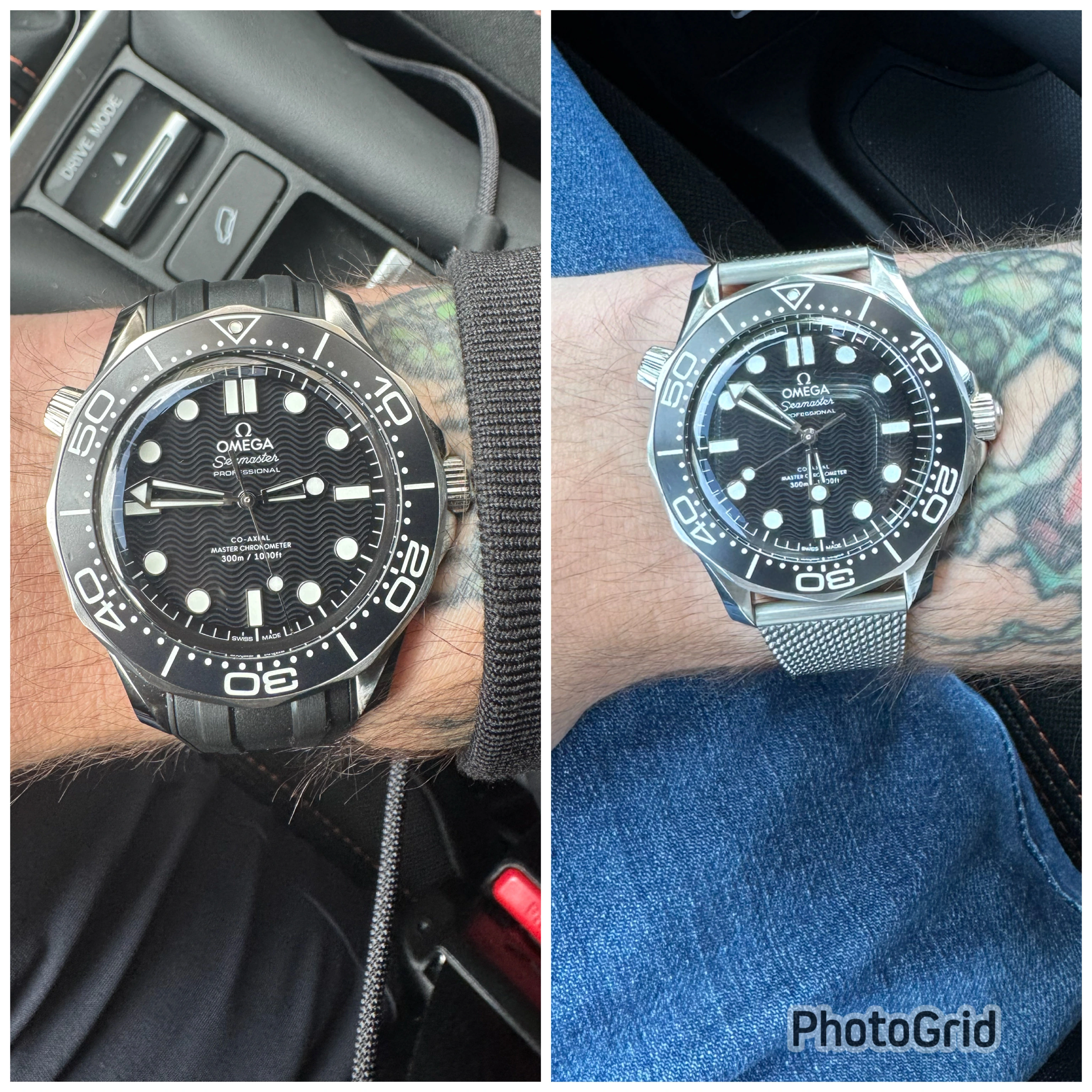 I prefer the original Seamaster metal bracelet. Call me old fashioned but the Omega Seamaster 300m diver is the Bond watch and the 7 link metal bracelet just makes it more a Bond watch