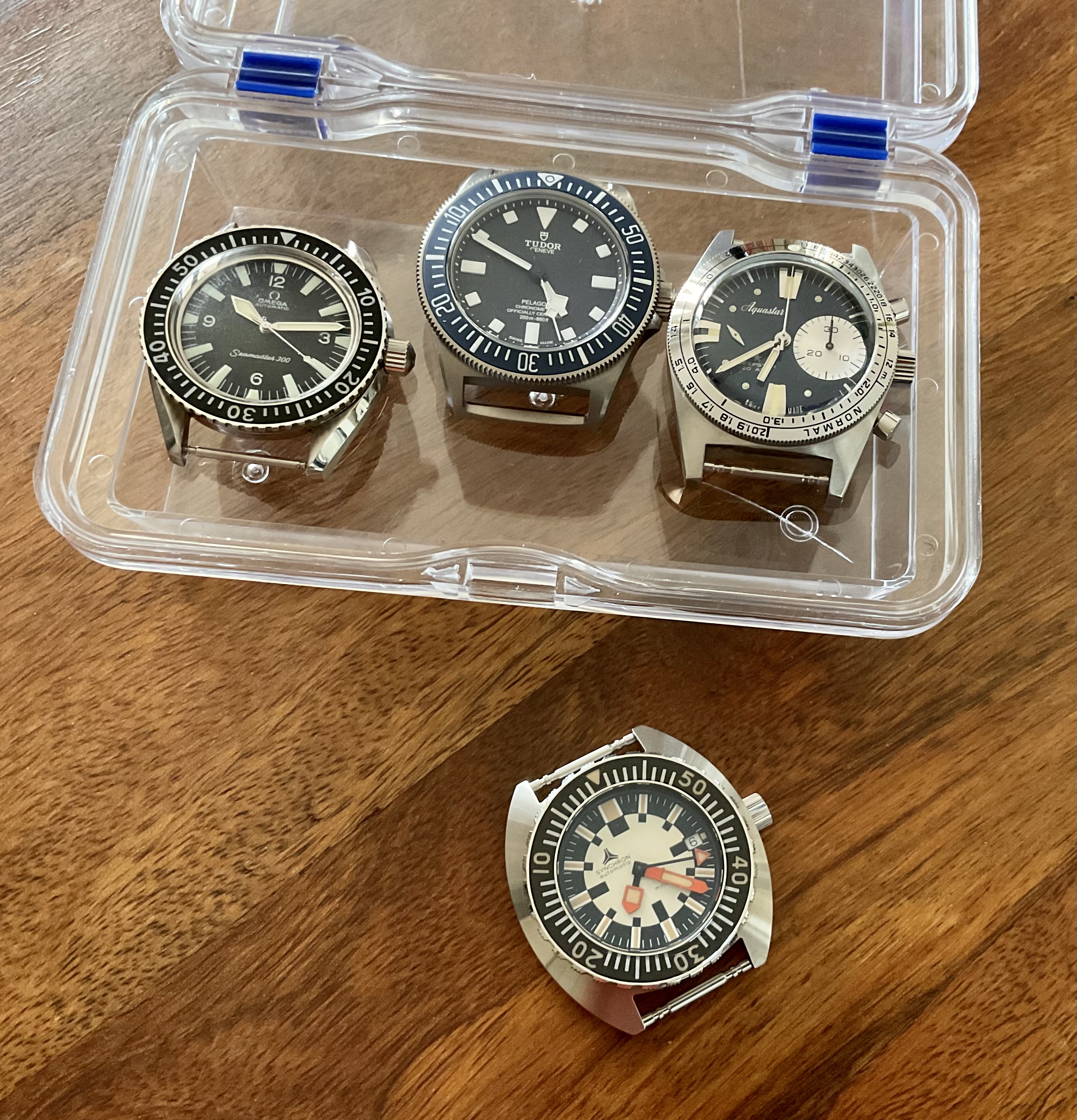 Revelot, NH35s (white is full lume, green is CuSn8 bronze and meteorite)