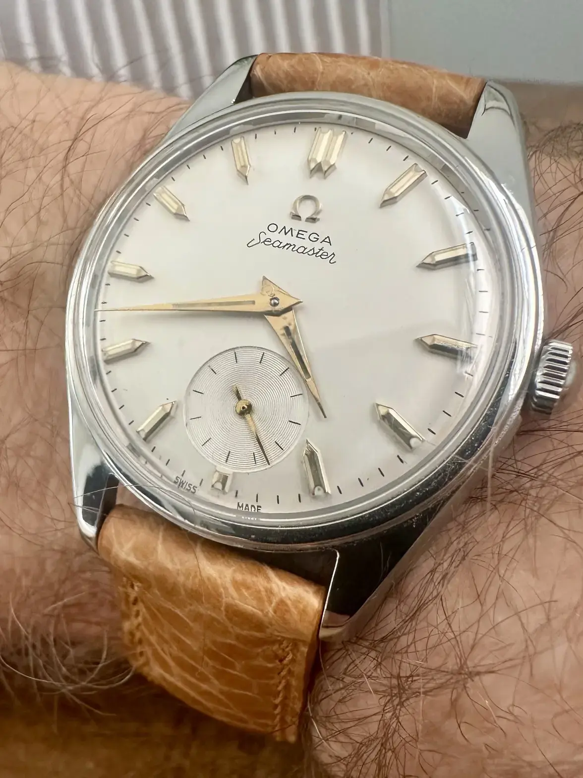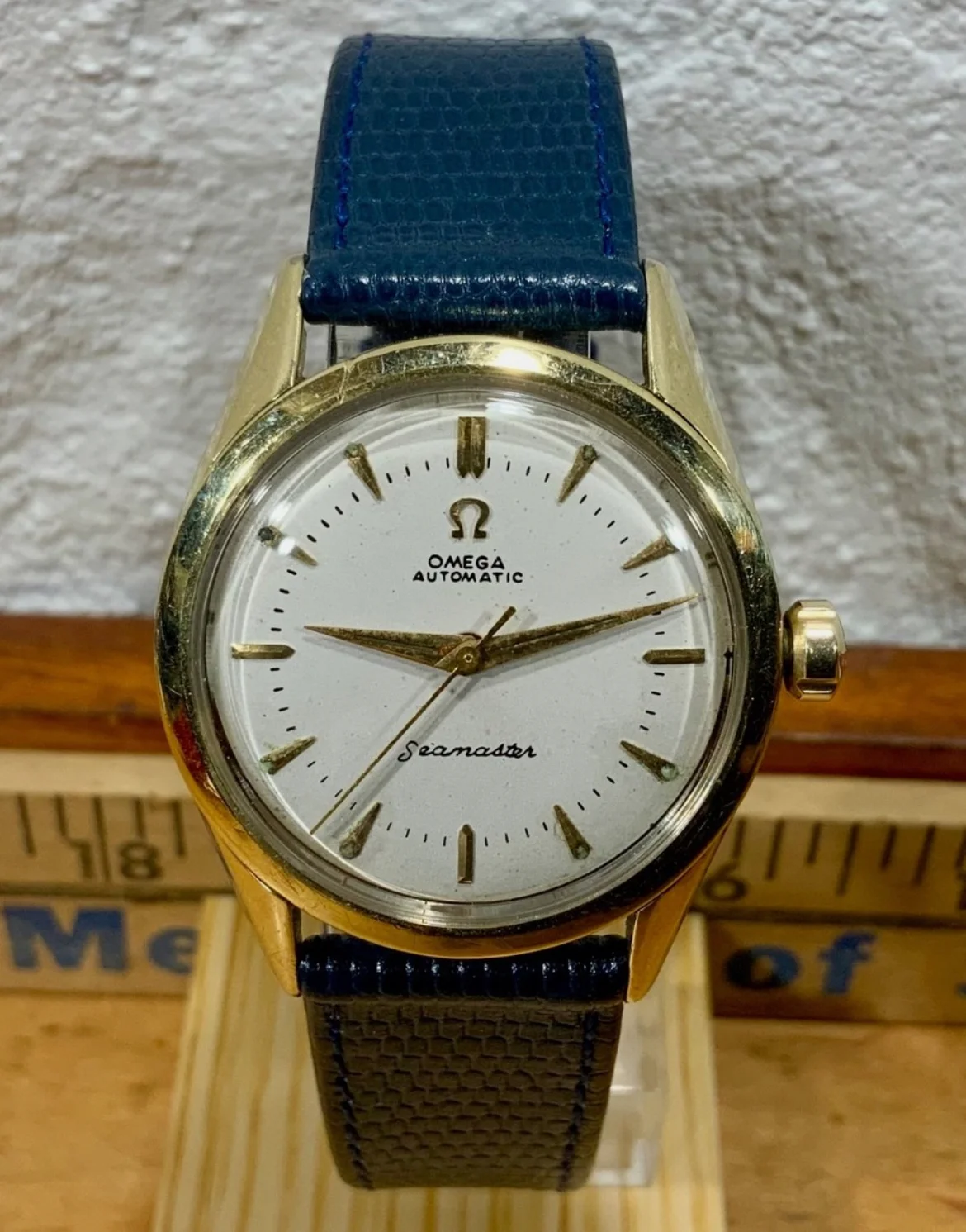 Here’s a 1950’s Omega Seamaster from my collection (not a 2802’s). Look at it carefully, especially the dial, and then look at your dial. You should be able to distinguish why your watch is a redial.