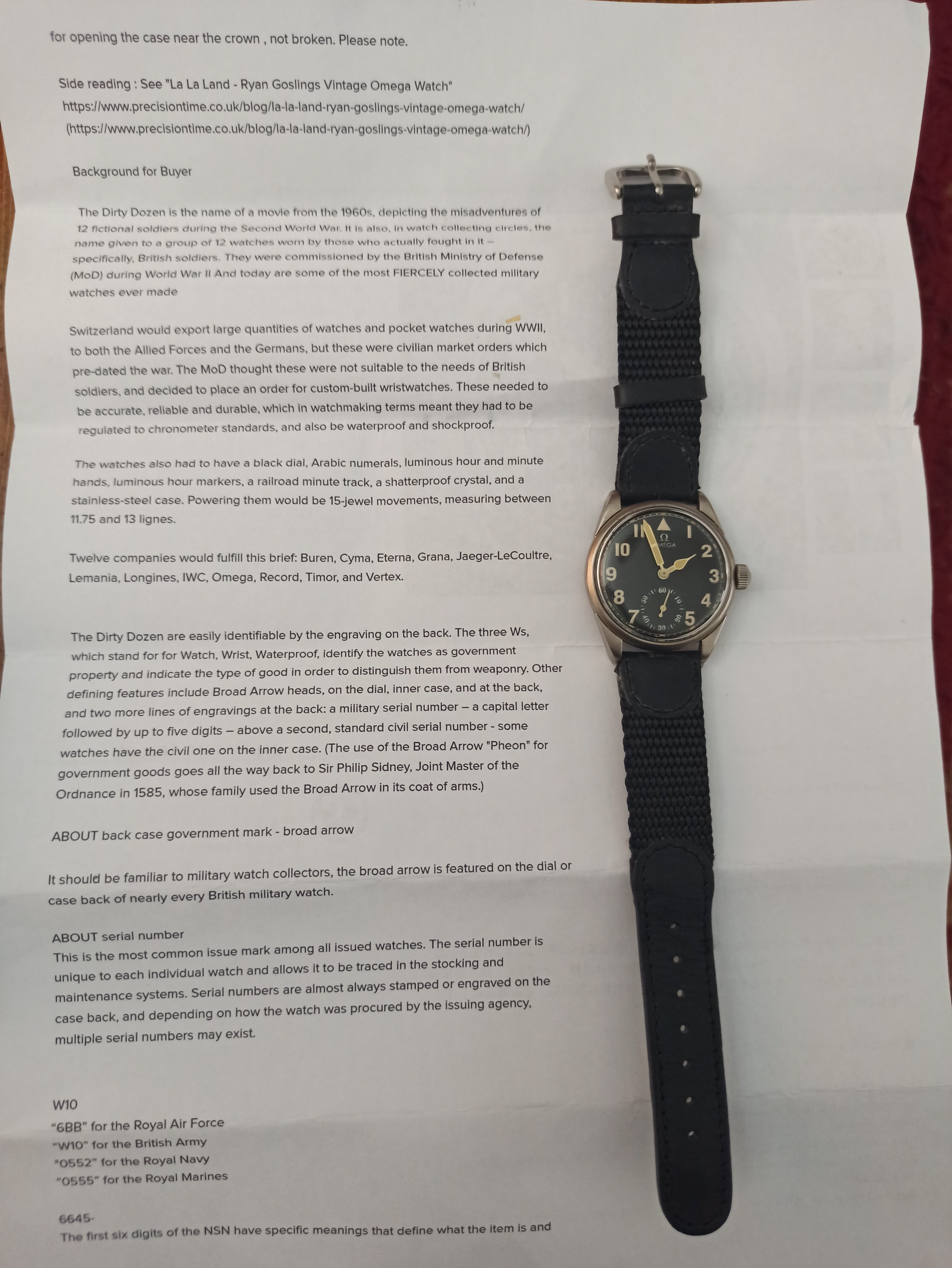 I have 2 WW1 omega trench watches and a WW2 Omega. Dirty Dozen maybe? I bought it in Hong Kong about 5 years ago and the last 2 pics have all the info that came with the watch, but I've seen other watches that have a case on the back with lugs? So not sure....